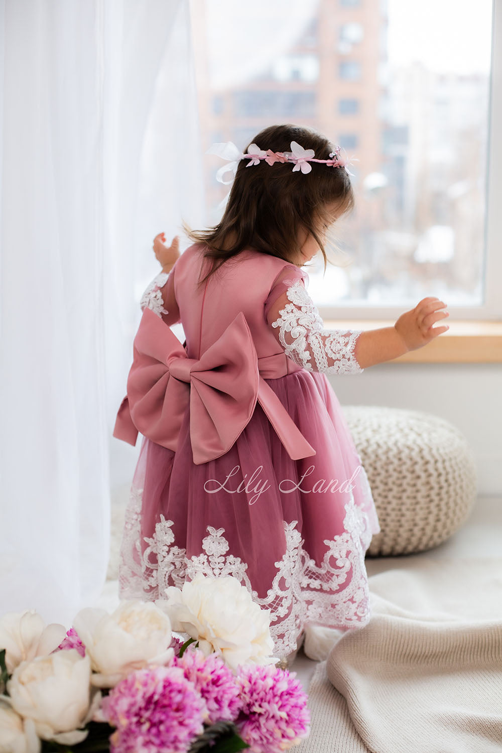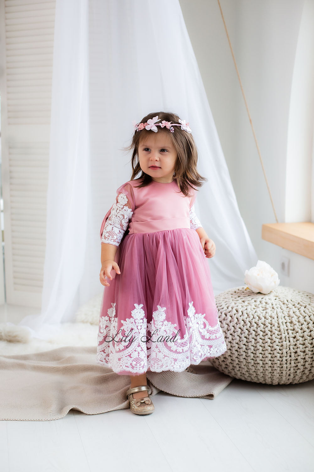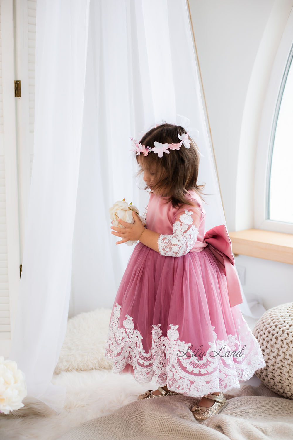 Amelie Girl Dress In Dusty Rose with Long Lace Sleeves