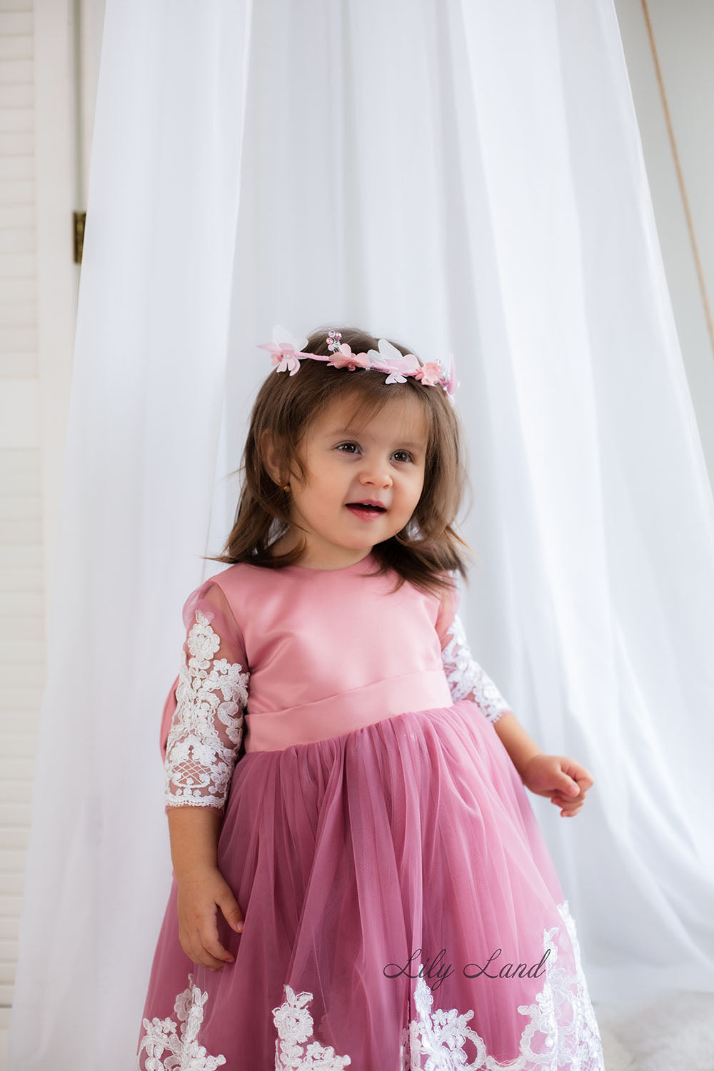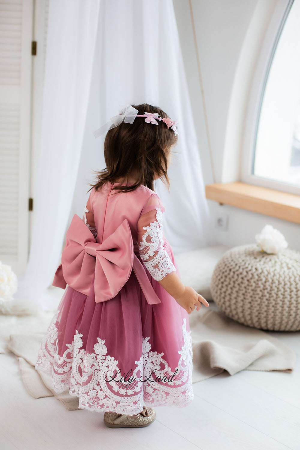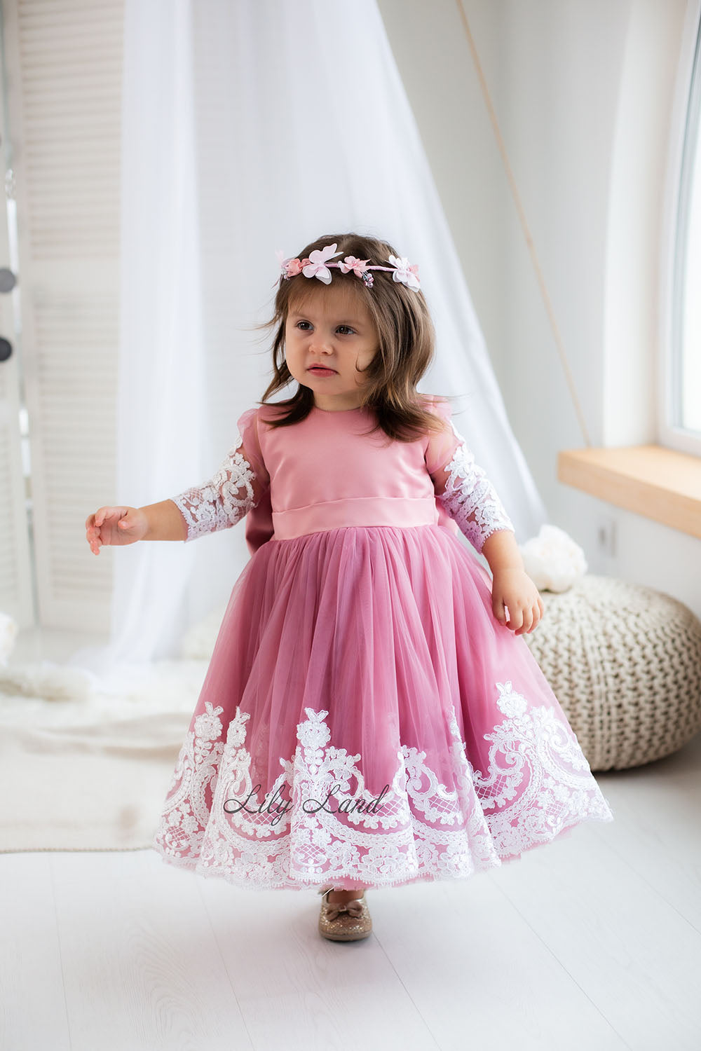 Amelie Girl Dress In Dusty Rose with Long Lace Sleeves