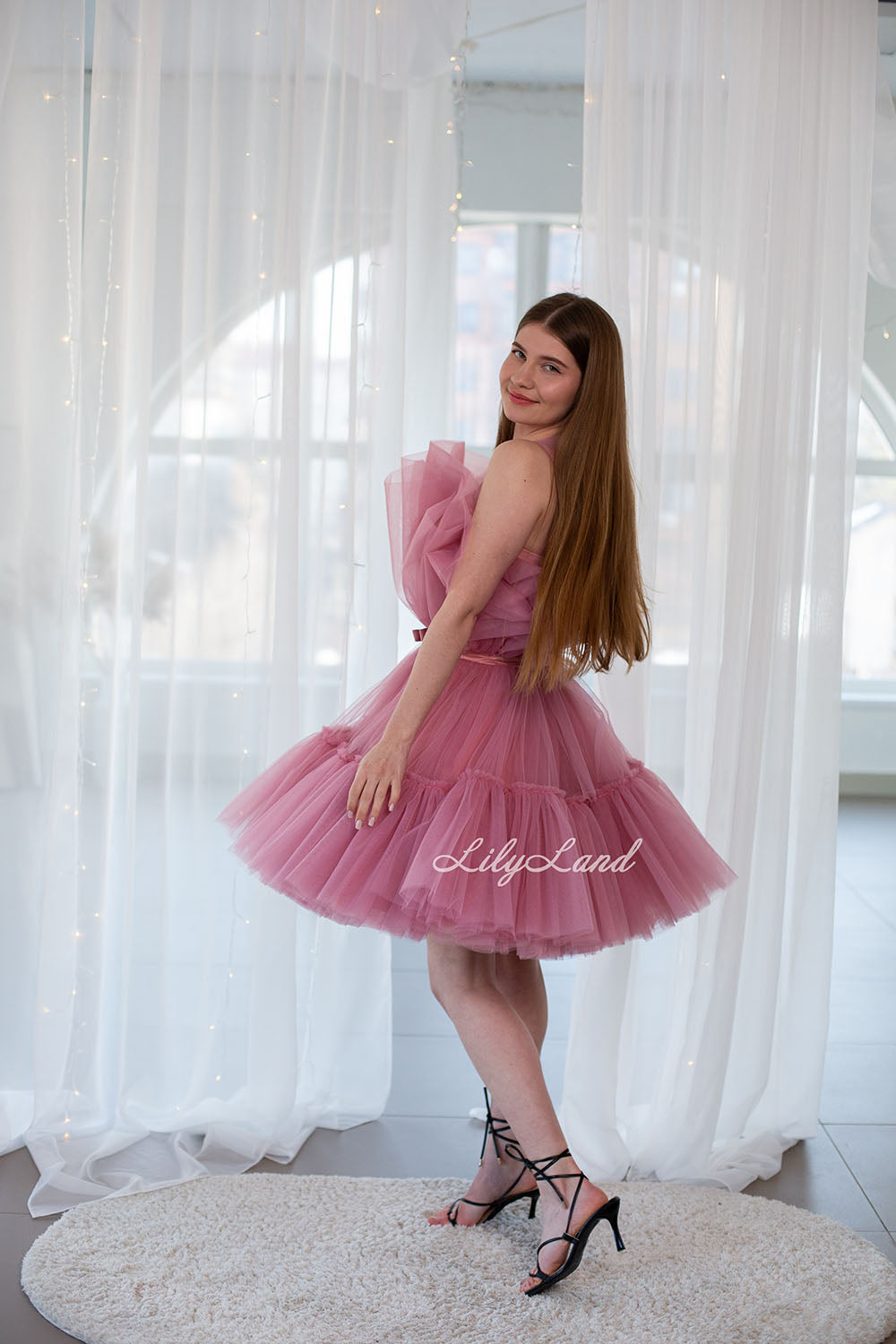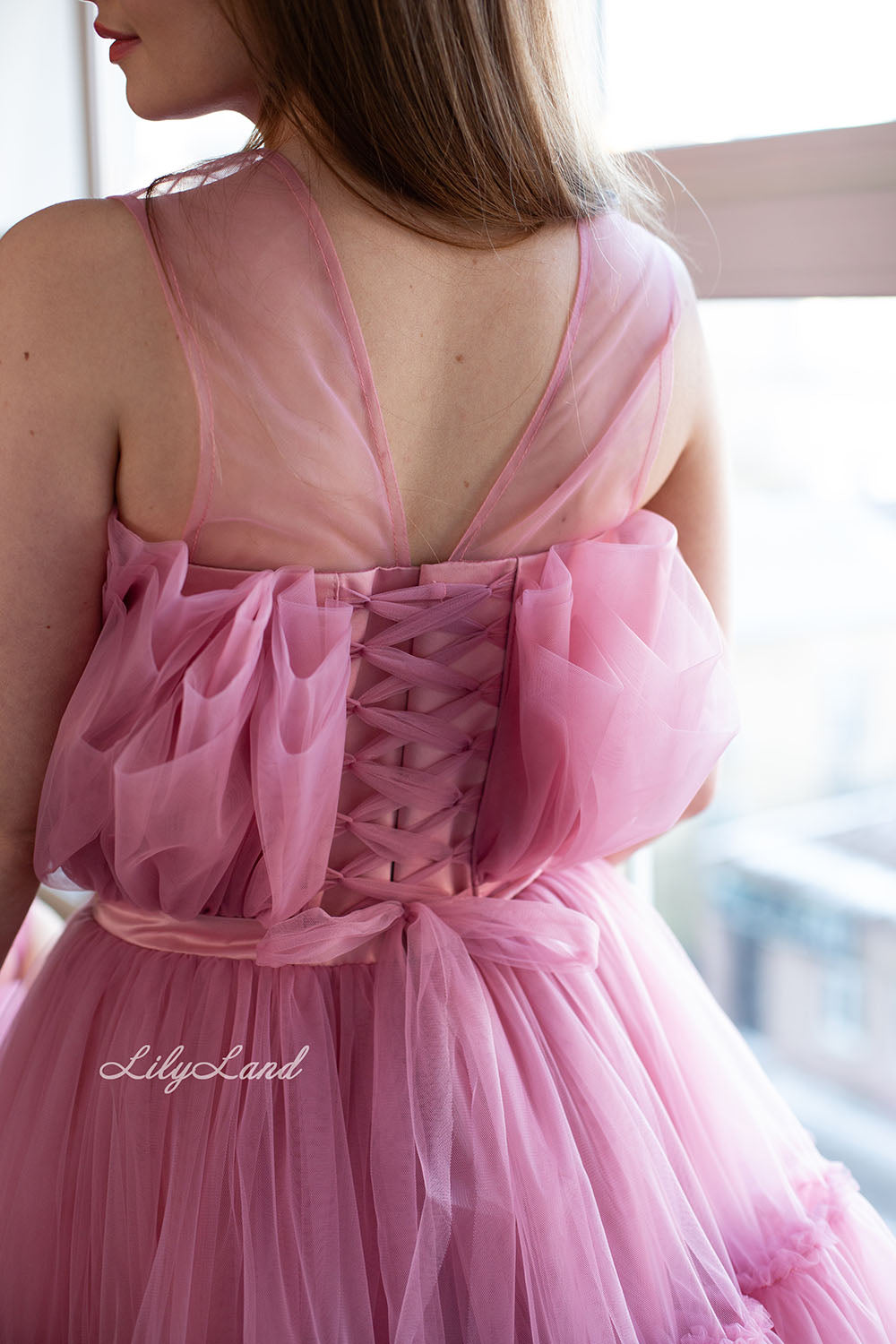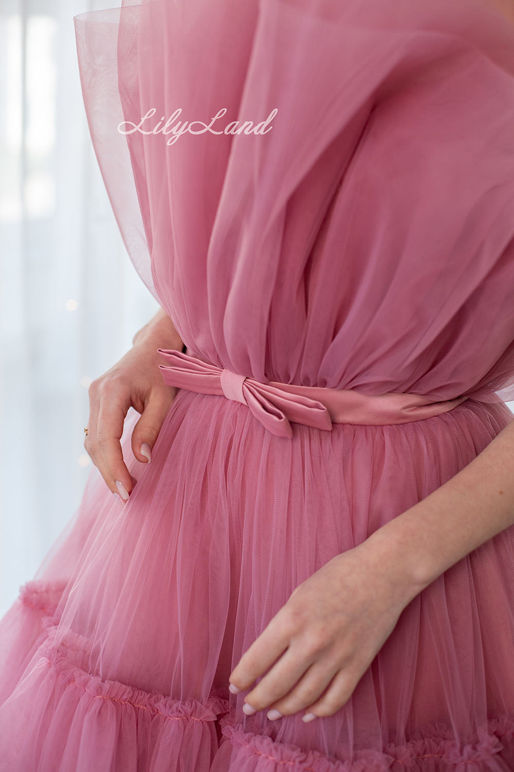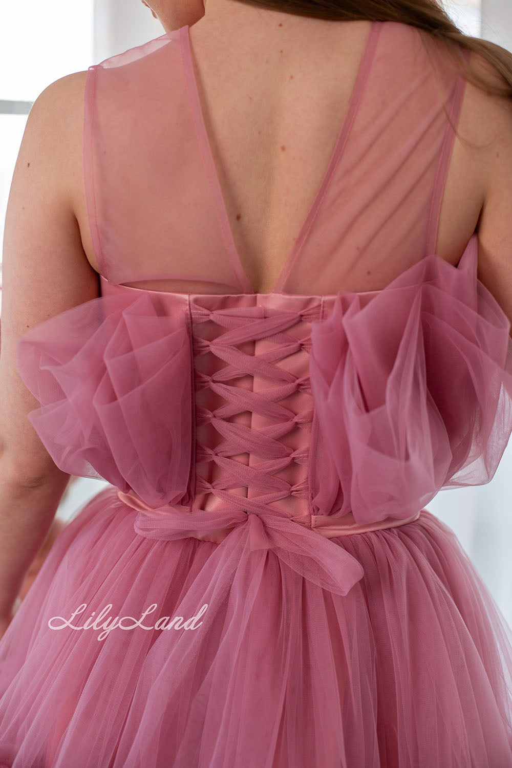 Materiales: purpurina, tul, peplum satinado, algodón.