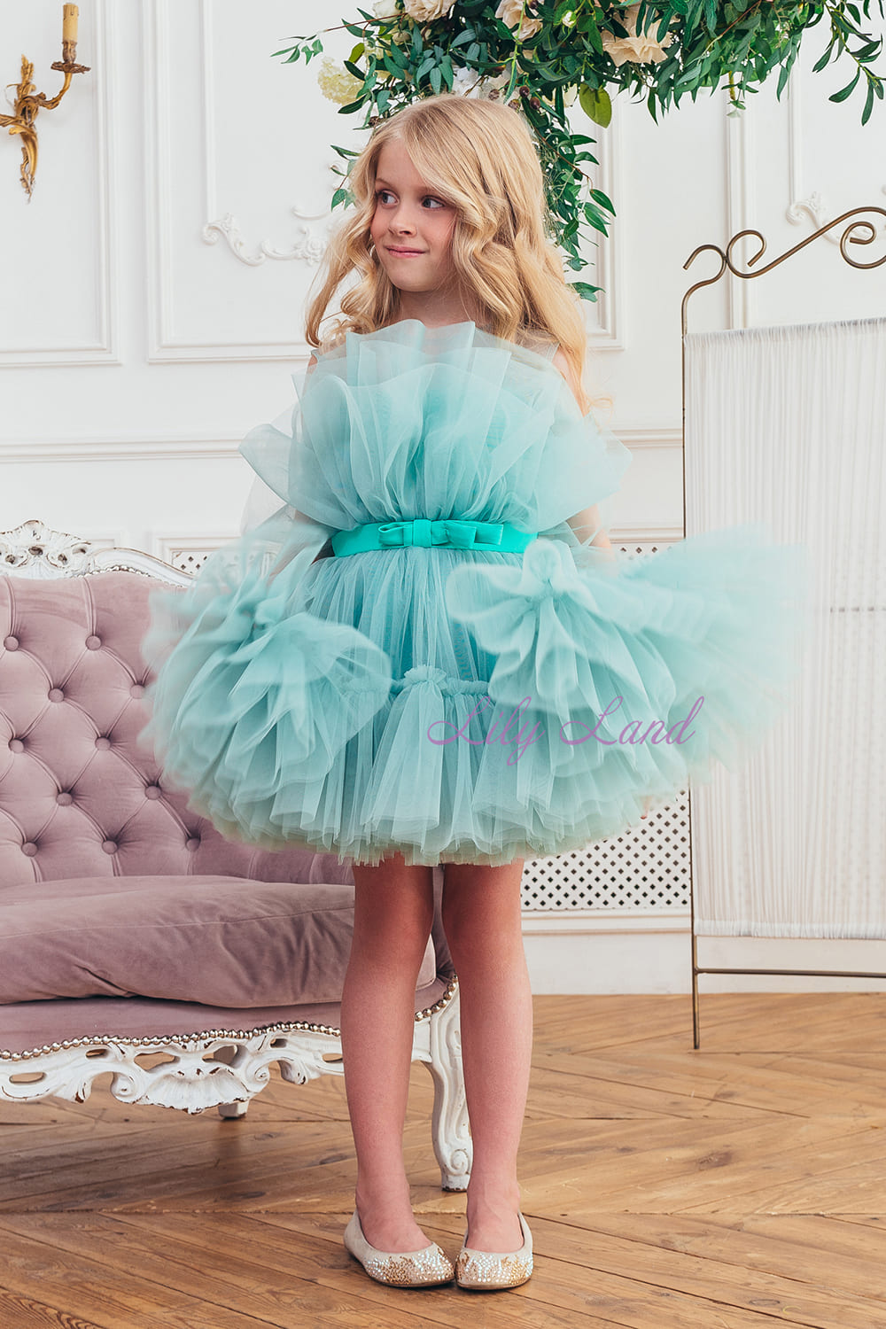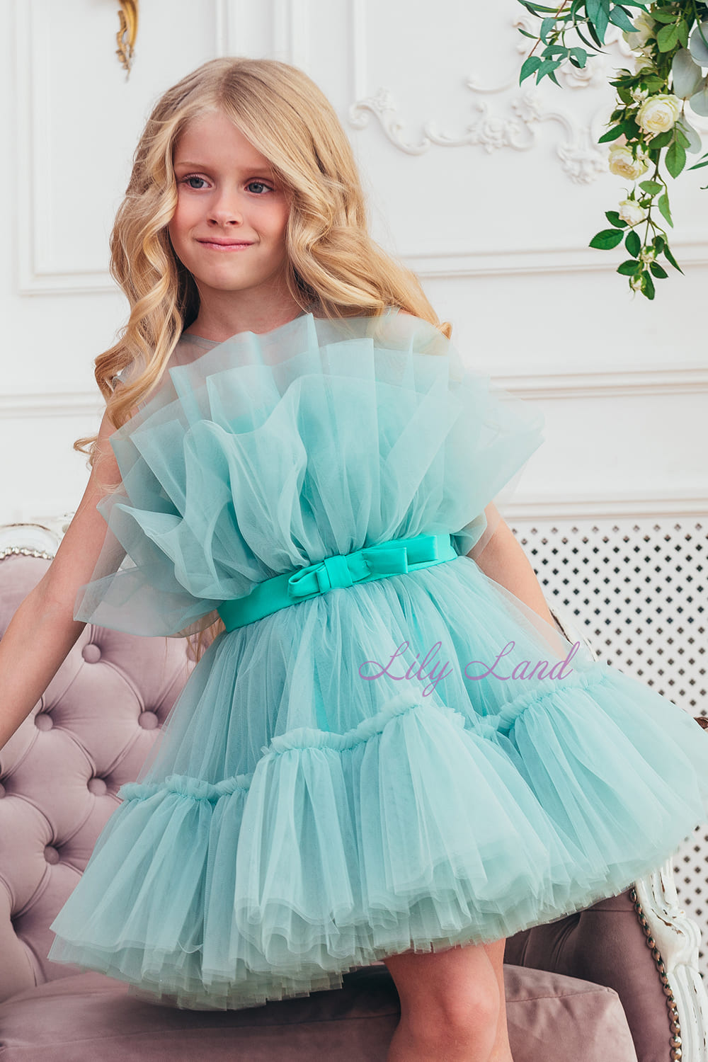 El elegante vestido de Barbie en el moderno color menta se convertirá en el favorito del guardarropa de las pequeñas amantes de la moda y las convertirá en princesas en cualquier evento. Es perfecto para eventos festivos, fiestas de cumpleaños, como vestido de niña de las flores, enfatizando el brillo y la brillantez de su joven propietaria.