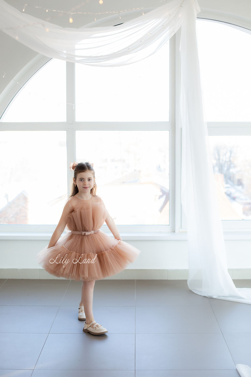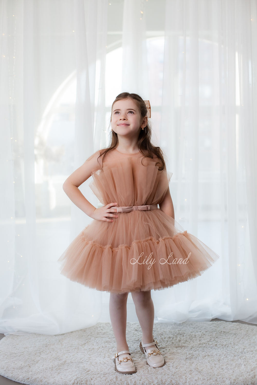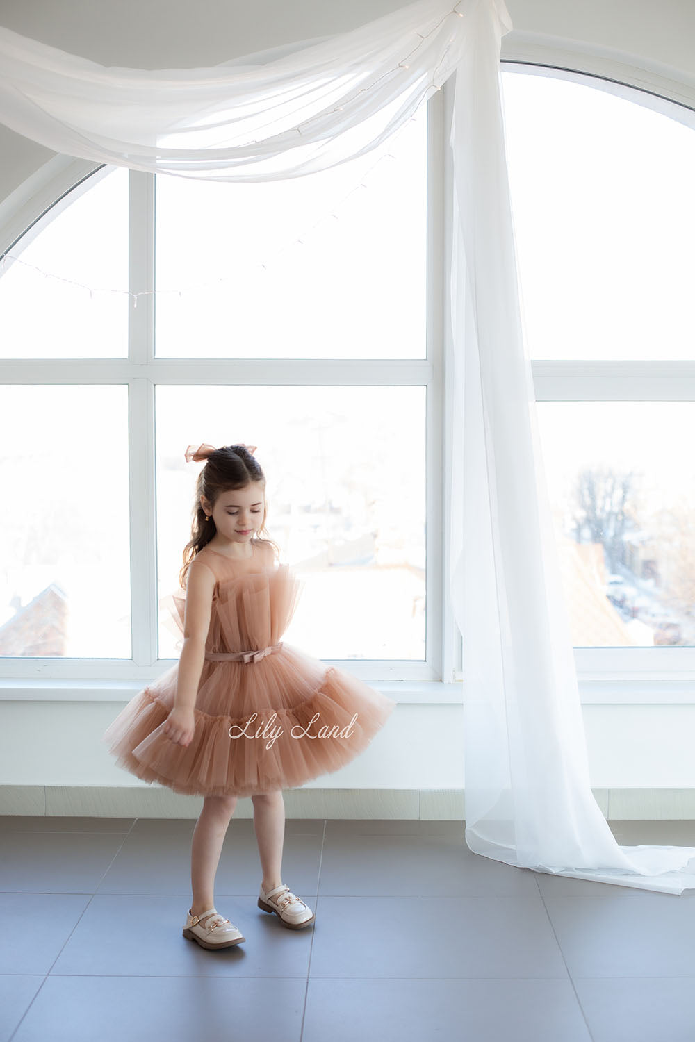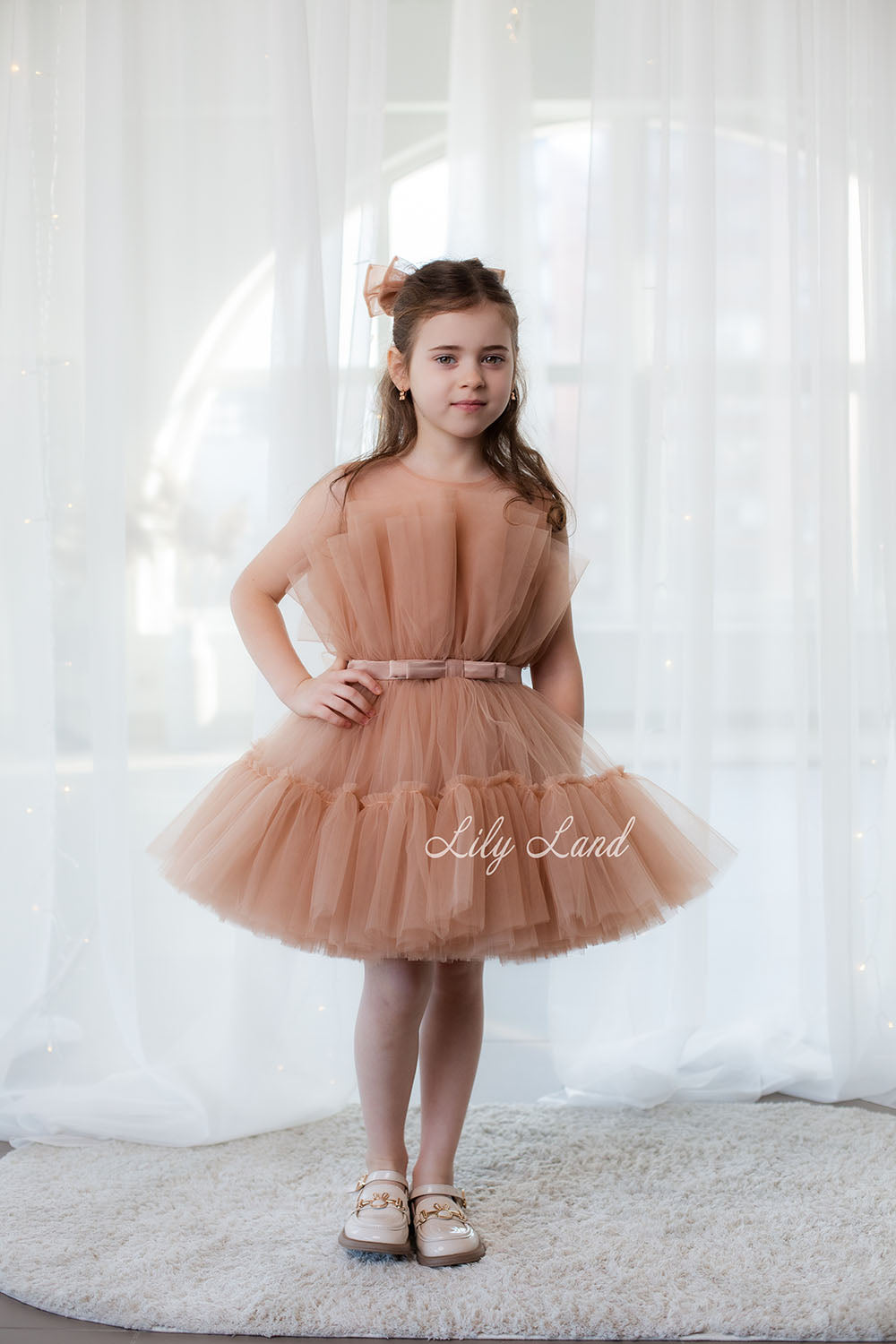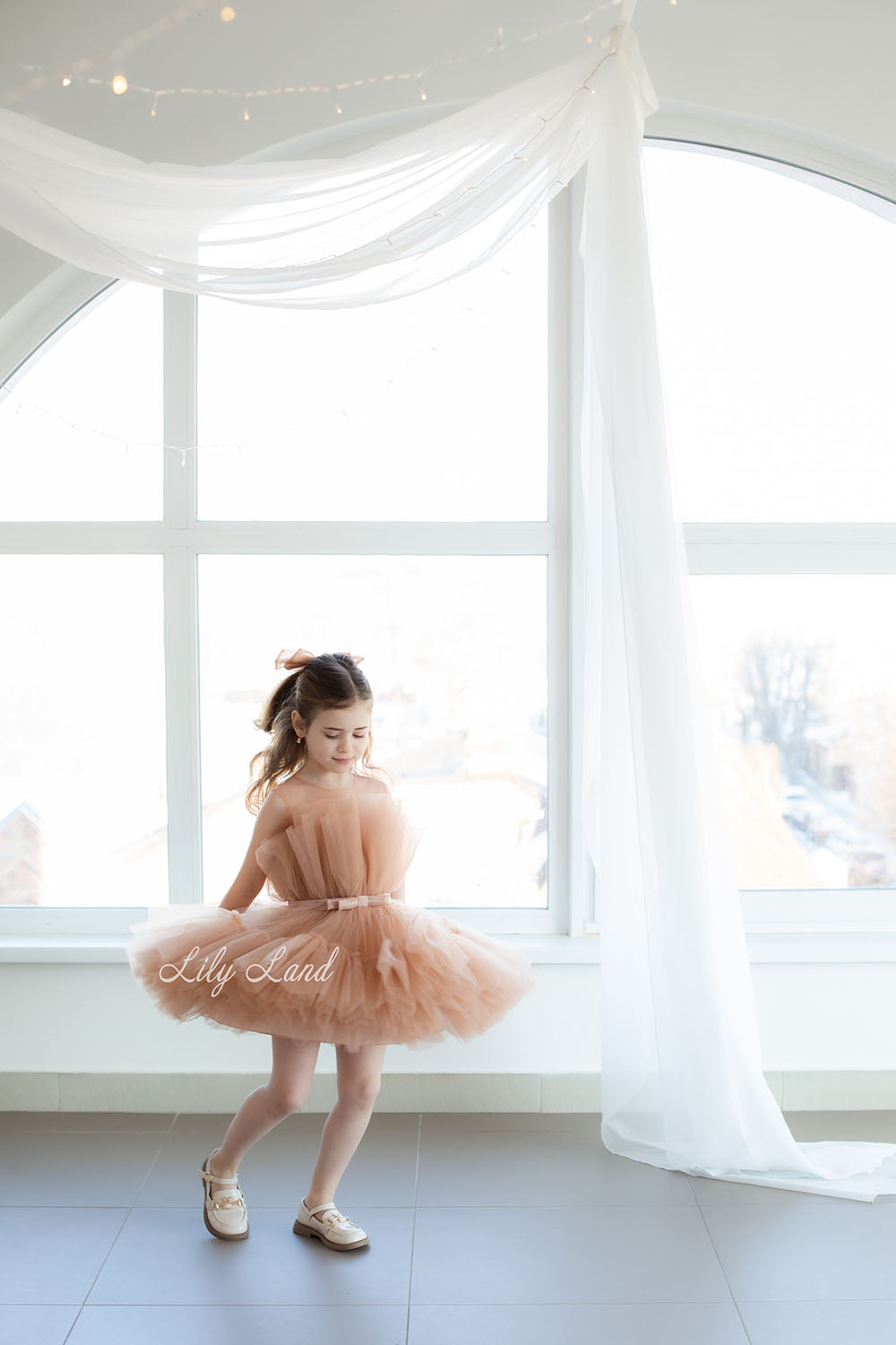 Stylish Barbie dress in beige color will become a favorite in the wardrobe of little fashionistas and make them princesses at any event. Whether it's a birthday celebration, a festive party, a memorable prom night, a dreamy wedding, a captivating photoshoot, a flower girl's moment, a magical Christmas gathering filled with twinkle lights and holiday cheer, or a romantic Valentine's Day, this dress is the perfect choice to make girl feel like a true princess. Can be made in various colors and sizes, taking into account all the wishes of the buyer.