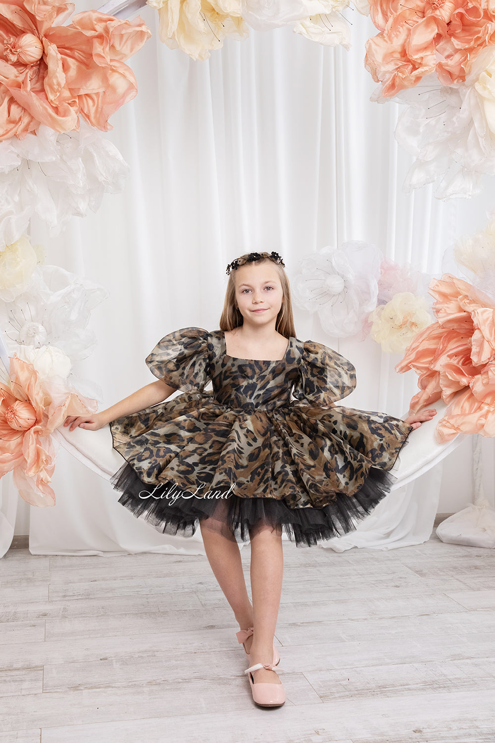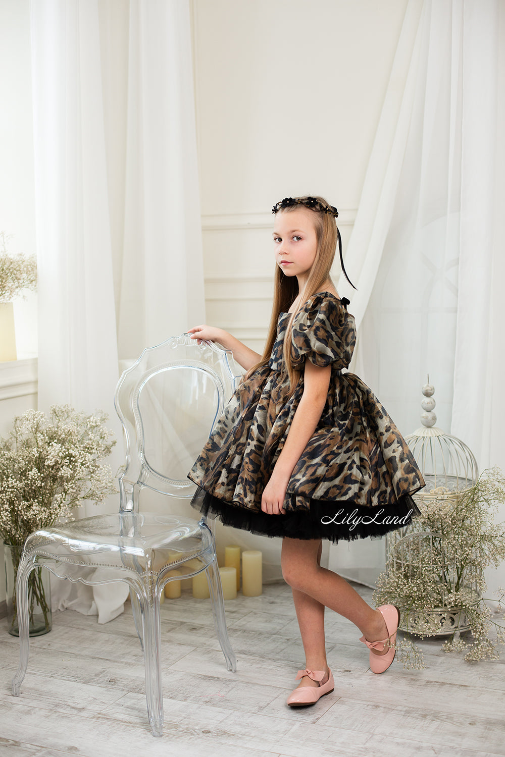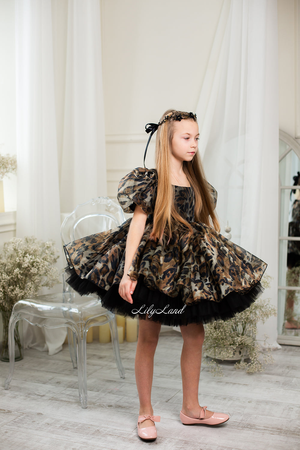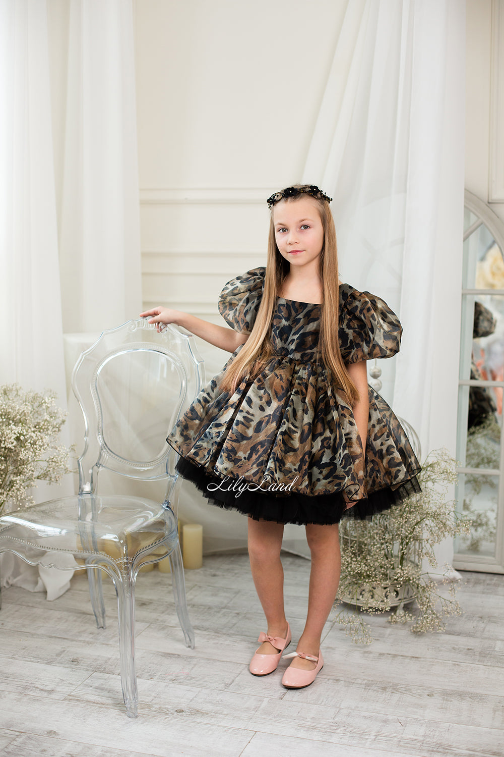 Our organza baby girl dress comes in a beautiful brown color with leopard print, and it's got a really cool design. It's made with great care from really good fabric. You can wear it for birthdays, weddings, parties, Christmas, taking photos, Valentine's Day, dancing, going out at night, being a flower girl, going to balls, festivals, playing dress-up, pretending to be fairies or princesses, or any other special time.