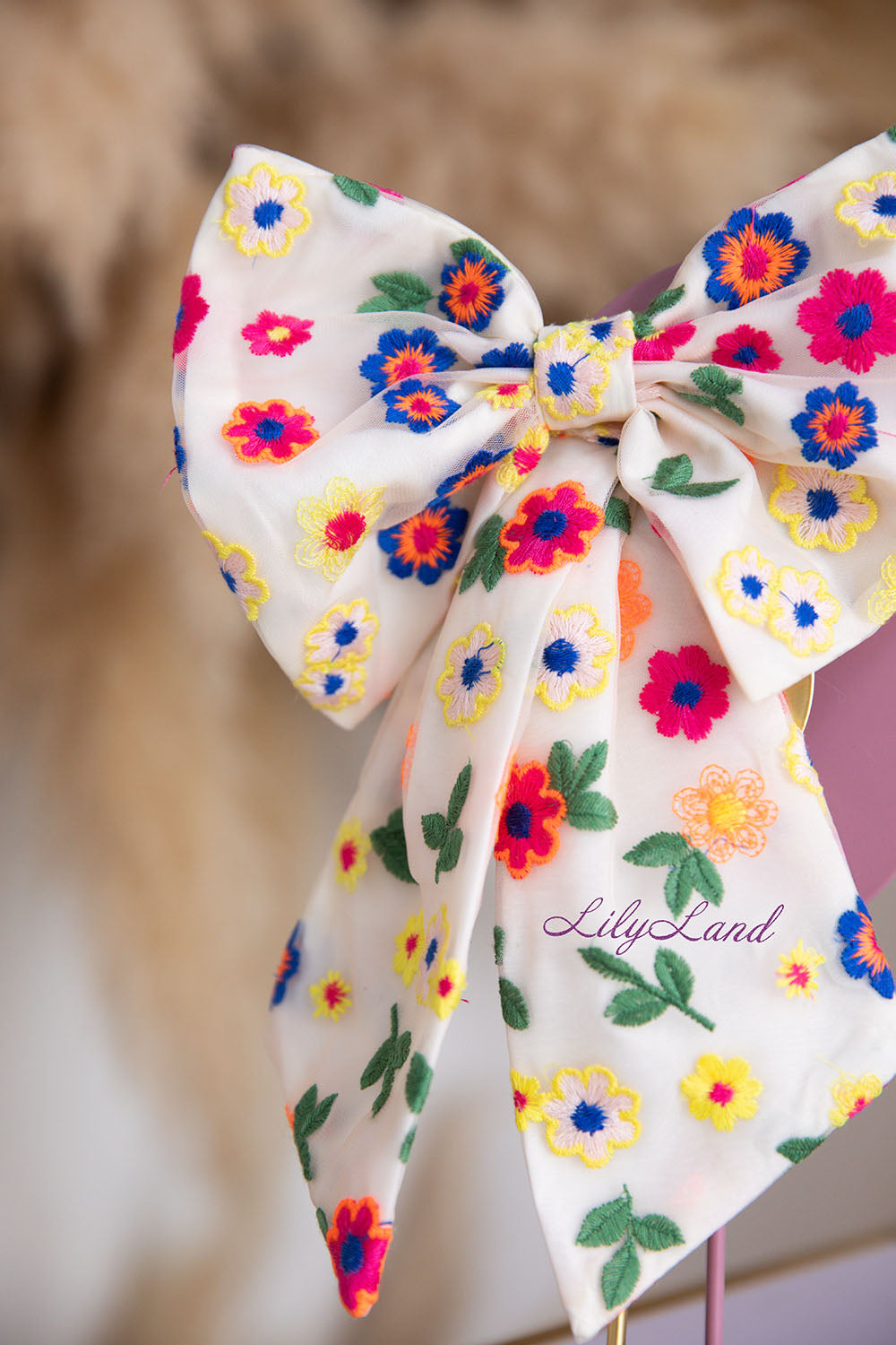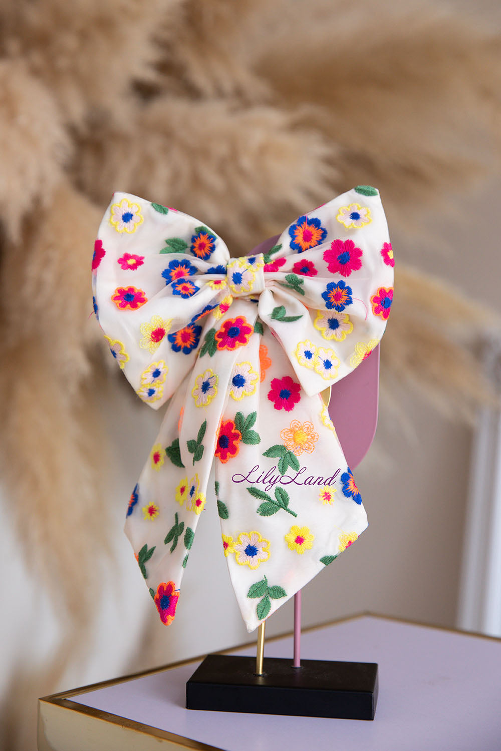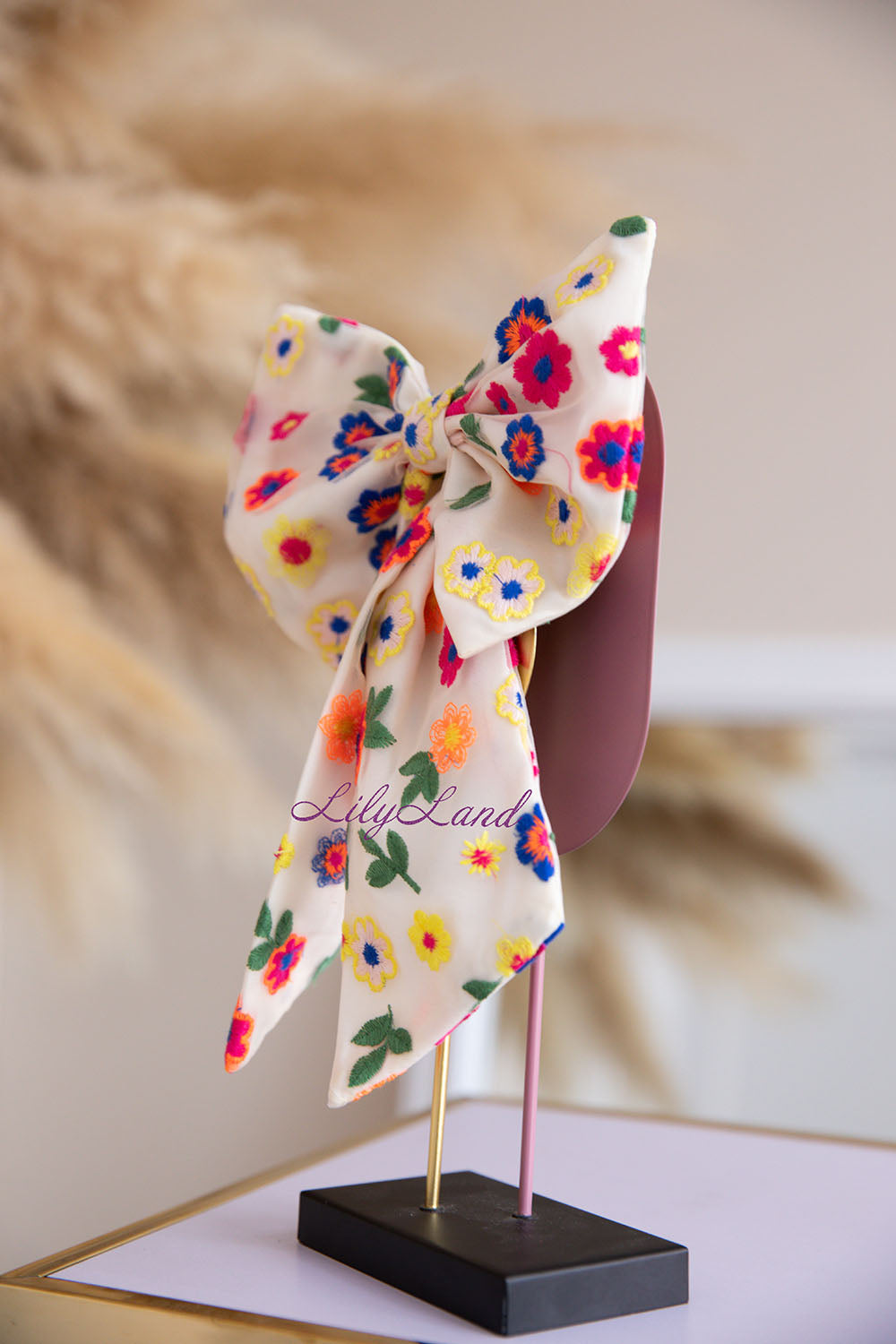 Beige Floral Hairpin Bow Girl Accessories with Multicolored Flowers