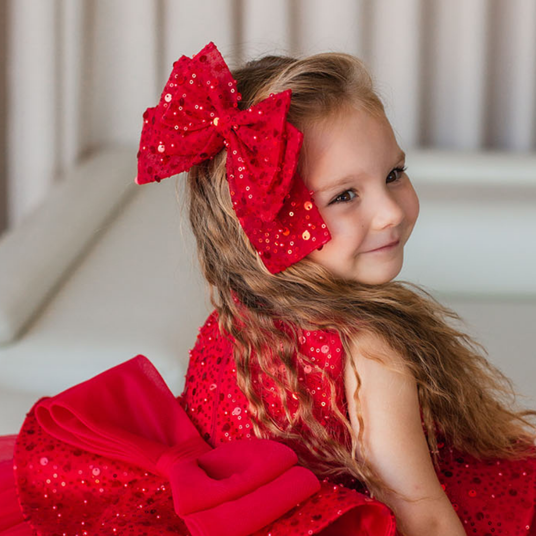 Enhance any hairstyle with a playful touch by adding a bow headband. This headband features a charming emerald green sequin bow decoration, making it perfect for a variety of occasions, from birthday parties and family photoshoots to weddings, Christmas, prom, Valentine's Day, dances, elegant evenings, and more. These delightful hair accessories for girls are not only incredibly cute but also a versatile addition to baby girl dresses. We offer customization in different colors to suit your preferences and outfits perfectly.