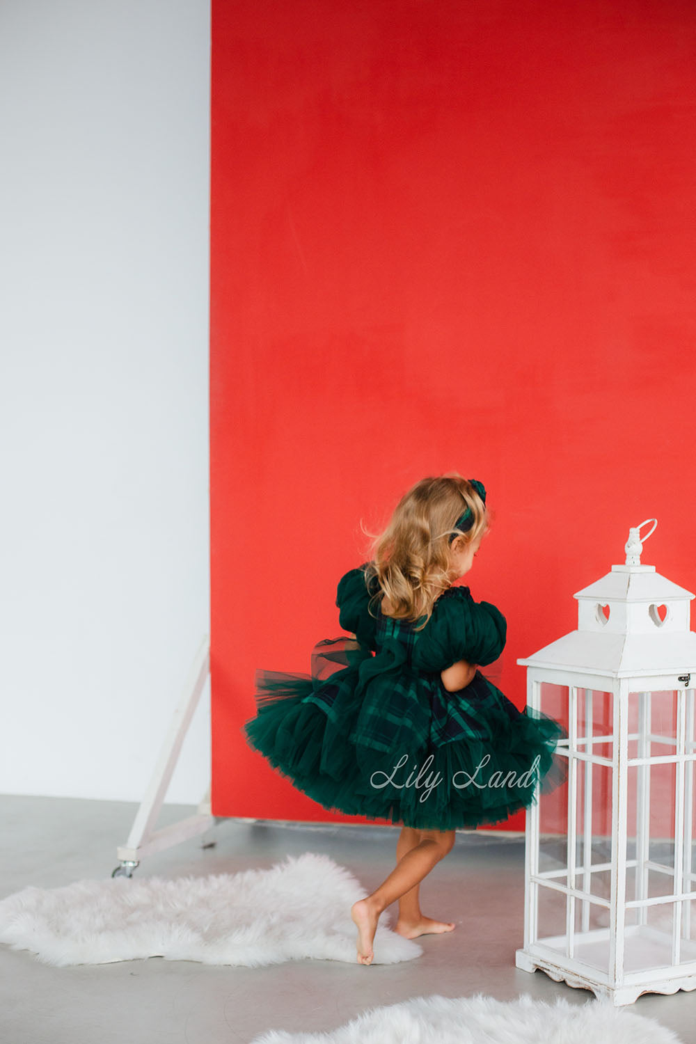 Vestido Niña Navidad Año Nuevo Con Mangas Abullonadas De Tul En Color Verde Esmeralda
