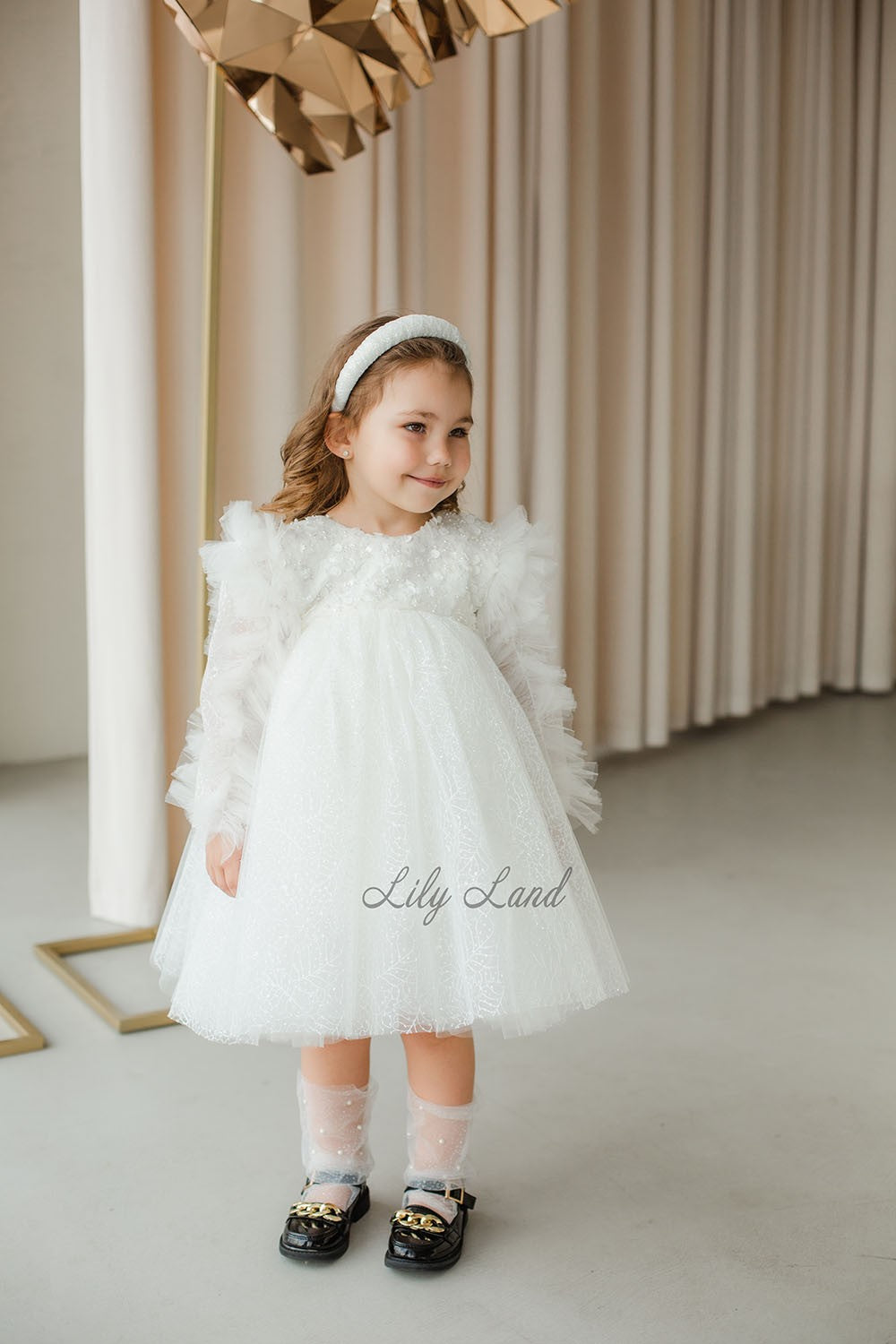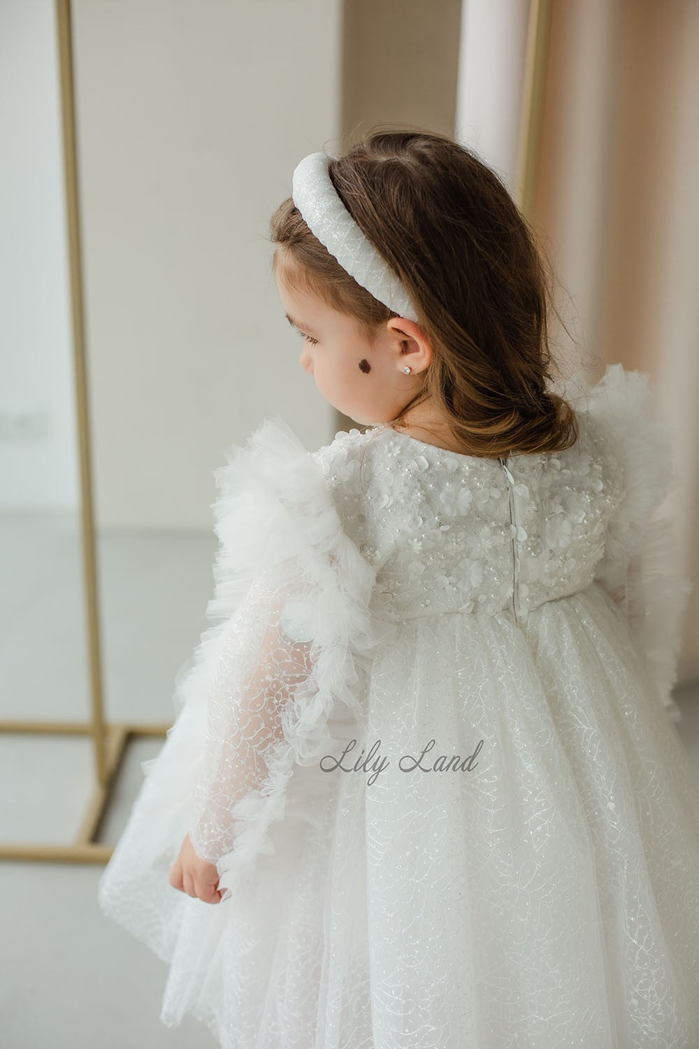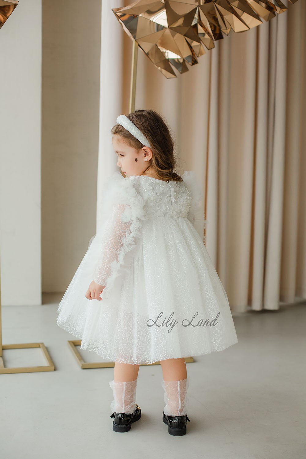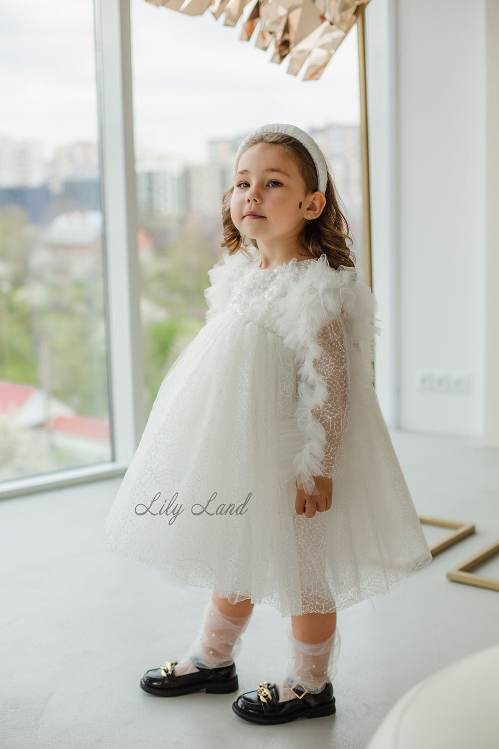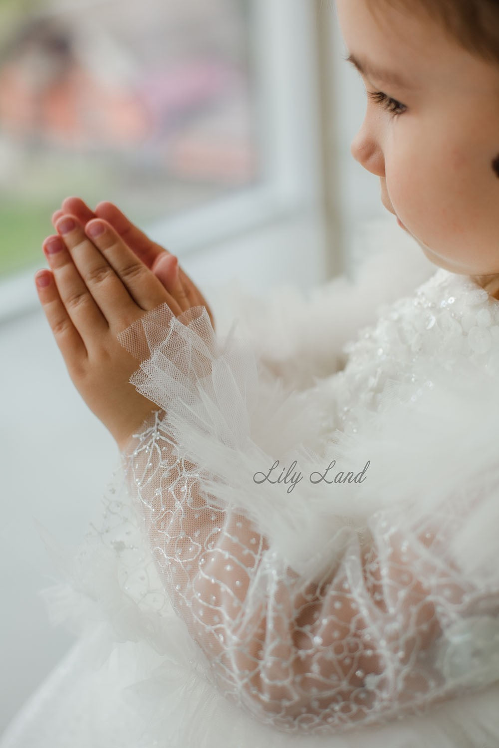 We take pride in presenting a special offer – the exquisite 'Elizabeth' dress in a delicate ivory hue. This dress epitomises tenderness and sophistication, lending a distinctive and elegant touch to your attire. Whether it's the charm of Christmas celebrations, the joy of birthdays, or the elegance of weddings where it's perfect for a flower girl or junior bridesmaid, this dress is versatile enough for vibrant parties, professional photoshoots, the romance of Valentine's Day, or first communion etc. Its captivating design extends even to whimsical dress-up play, adding a touch of magic to fairy and princess adventures. Order 'Elizabeth' now and experience its sophistication firsthand. Because you deserve nothing but the best!
