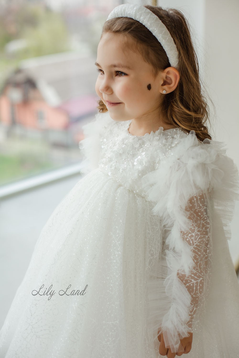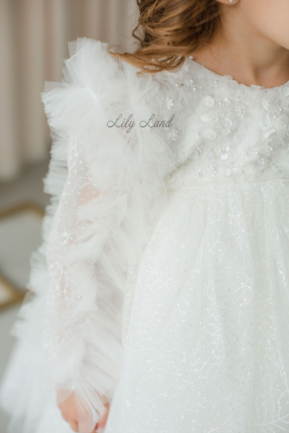 Elizabeth Girl's Dress in Ivory with Lace, Sequins and Small Flowers