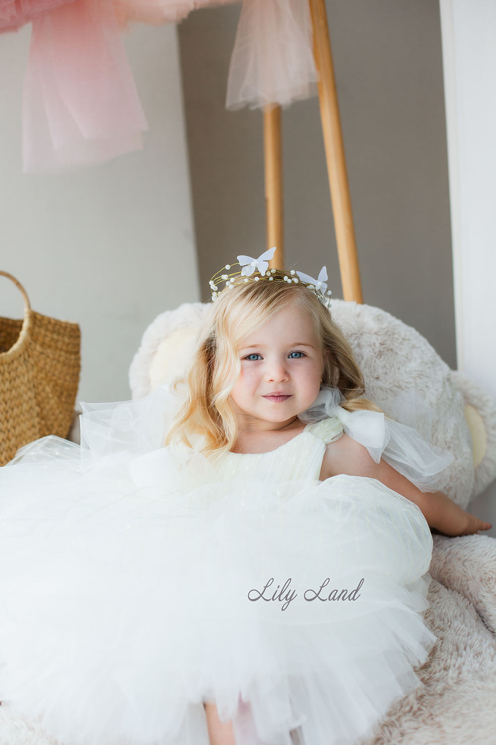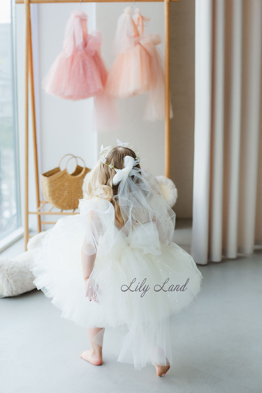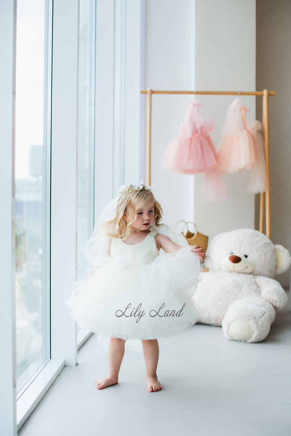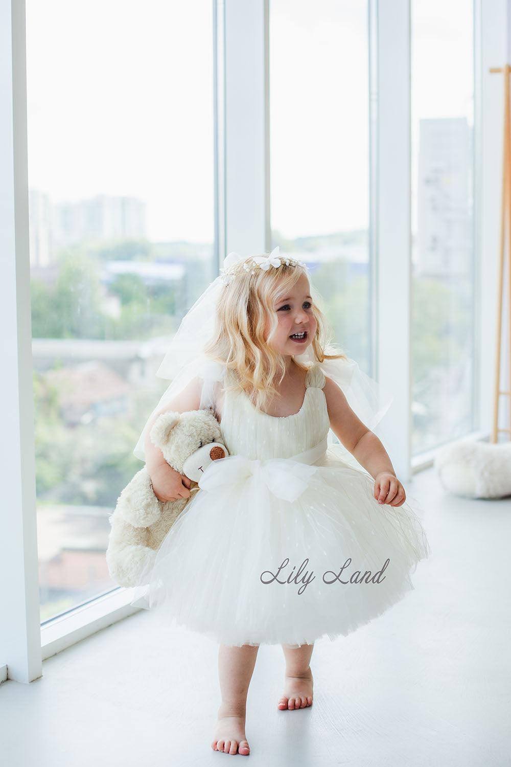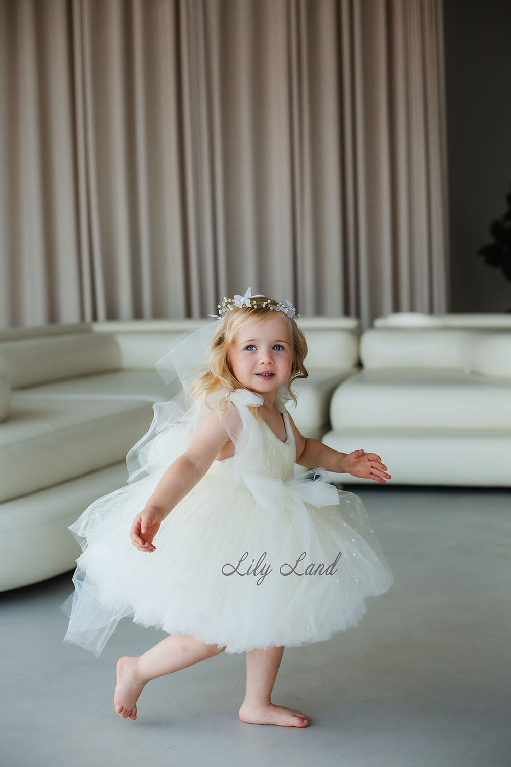 Elevate your little princess's special moments with our exquisite Frida dress in enchanting ivory! This captivating ensemble, featuring a satin top and gracefully draped tulle adorned with delicate bows, exudes sophistication and charm. Whether it's a birthday, a holiday, or any significant event, this versatile dress is perfect for various celebrations, including Christmas, birthdays, weddings, flower girl or junior bridesmaid roles, proms, photoshoots, Valentine's Day, dances, elegant evenings, and more. Customize it in different colors and sizes to match your preferences and ensure your little one shines in this exquisite attire.