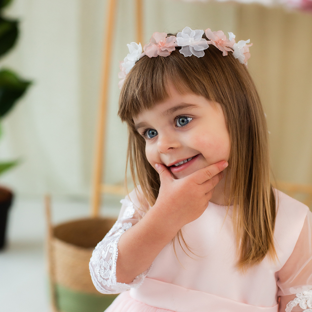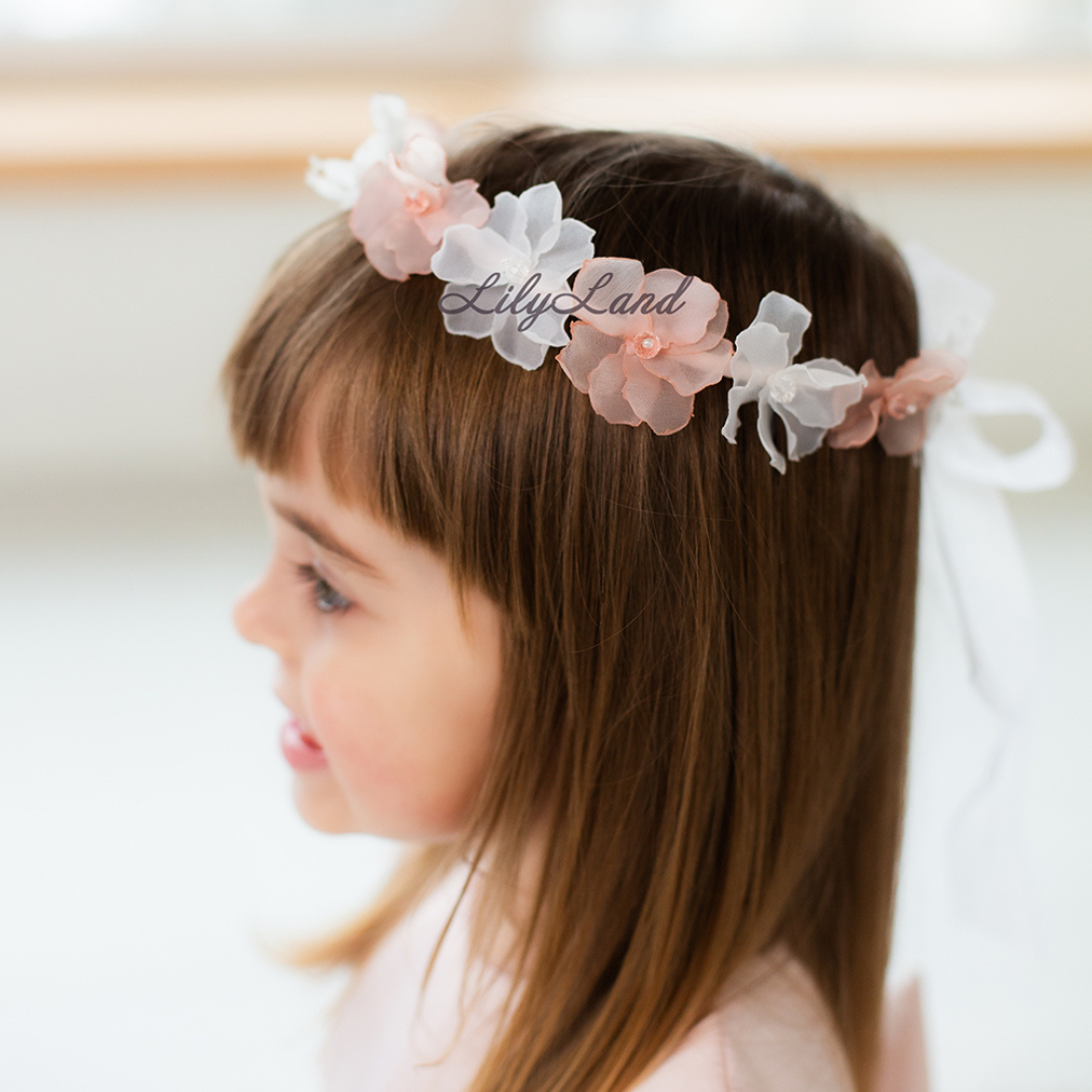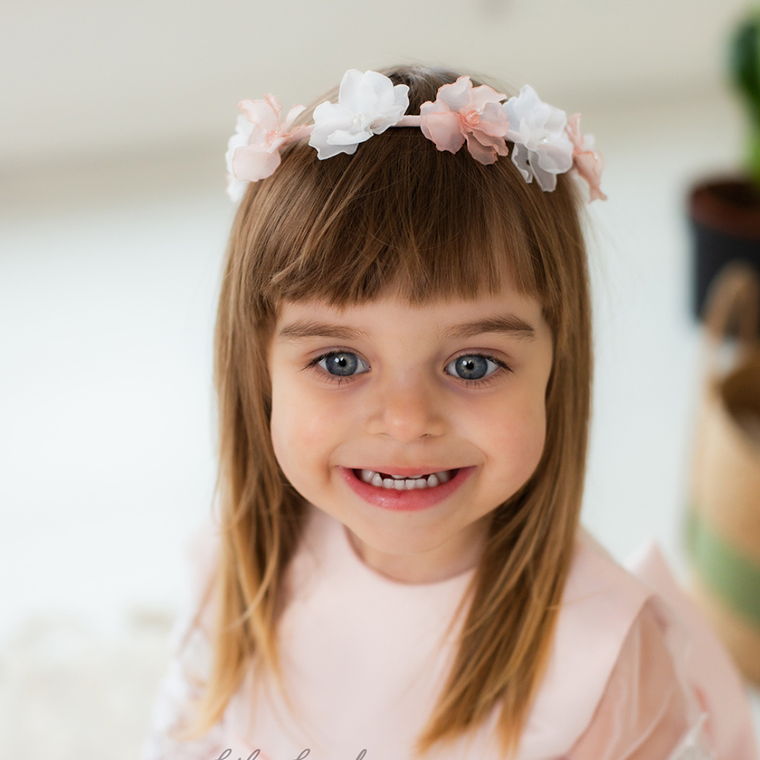 Girl Floral Headband in White and Peach