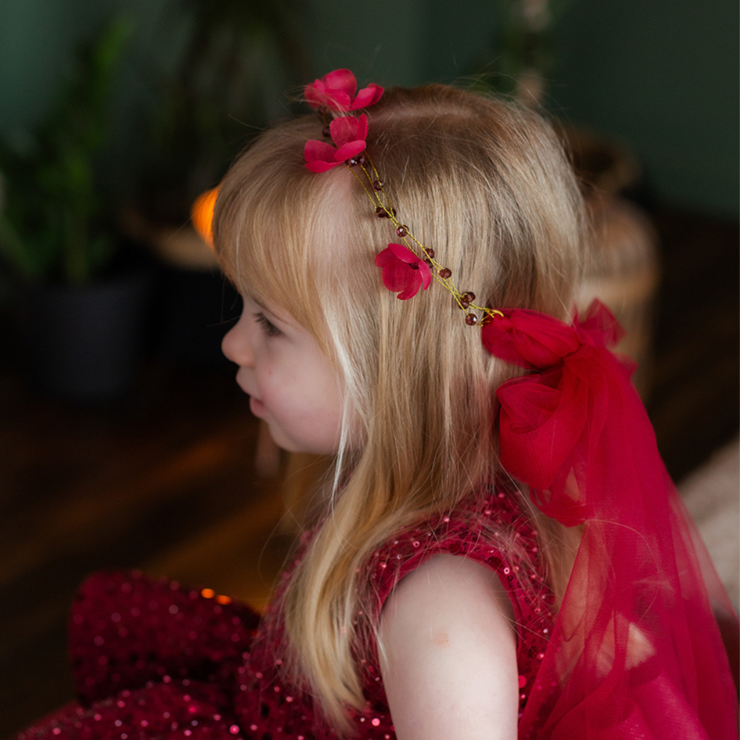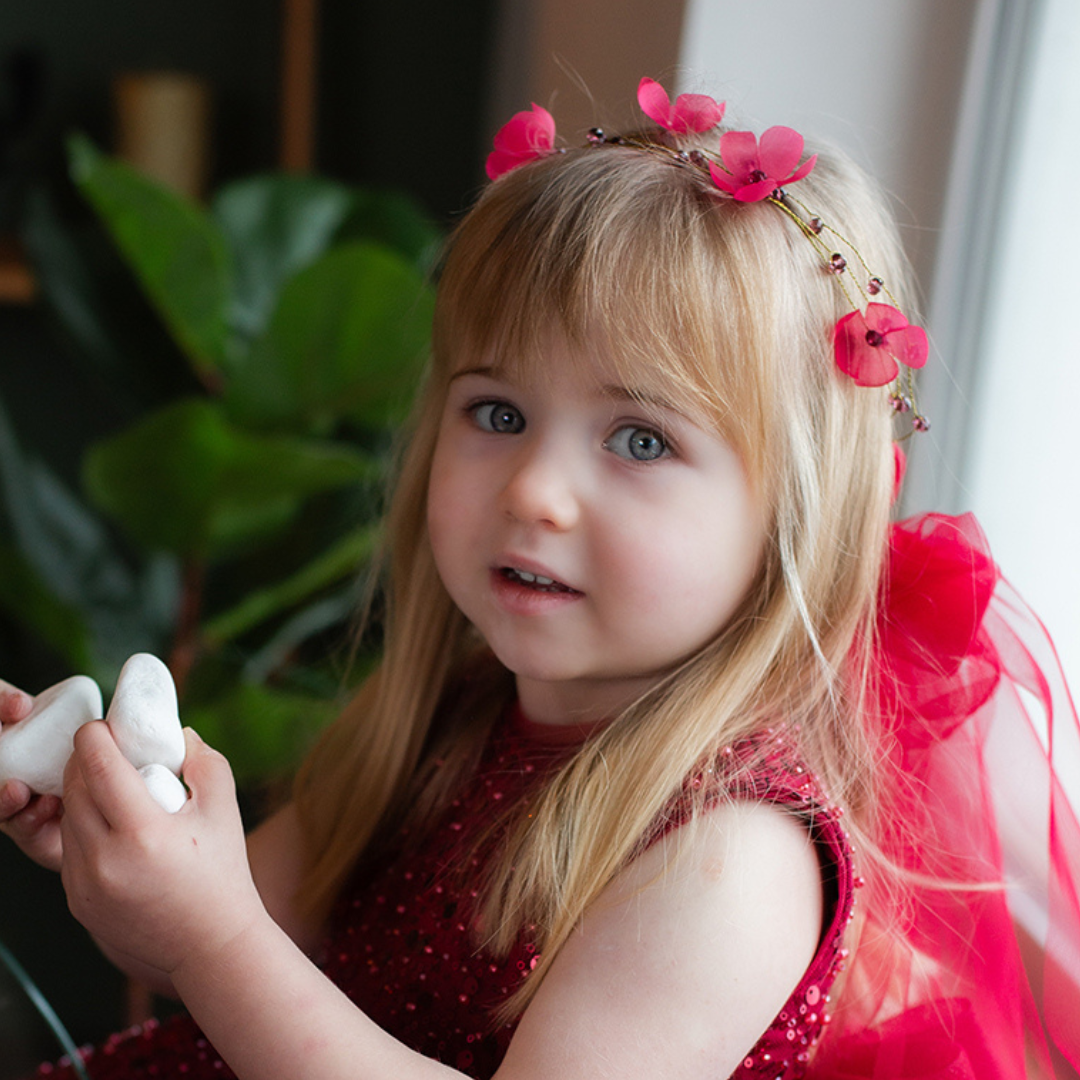 Enhance any ensemble with our delightful flowers headbands. Perfect for girls, babies, and women, these charming accessories suit birthdays, baby showers, weddings, Christmas, and proms. Crafted with care and affection from soft, durable organza and adorned with beads, our headbands ensure your girls look adorable and chic. Custom colors available.