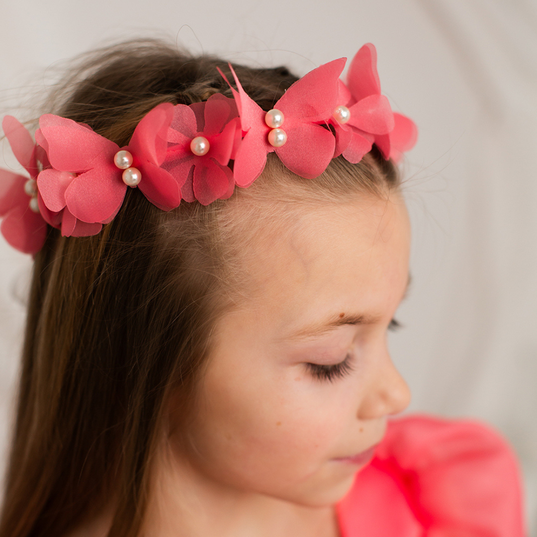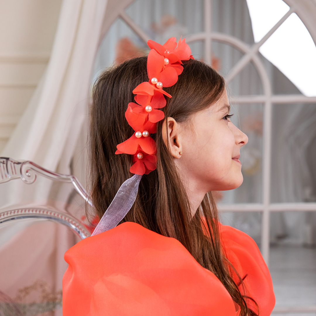 Girl Headband with Butterflies and Flowers in Hot Orange