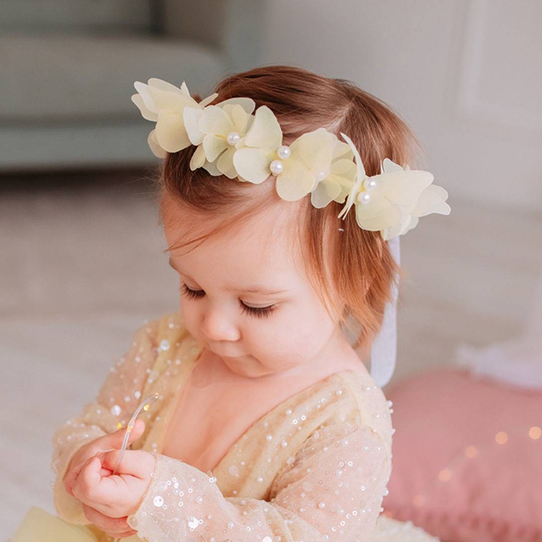 Girl Headband with Butterflies and Flowers in Yellow
