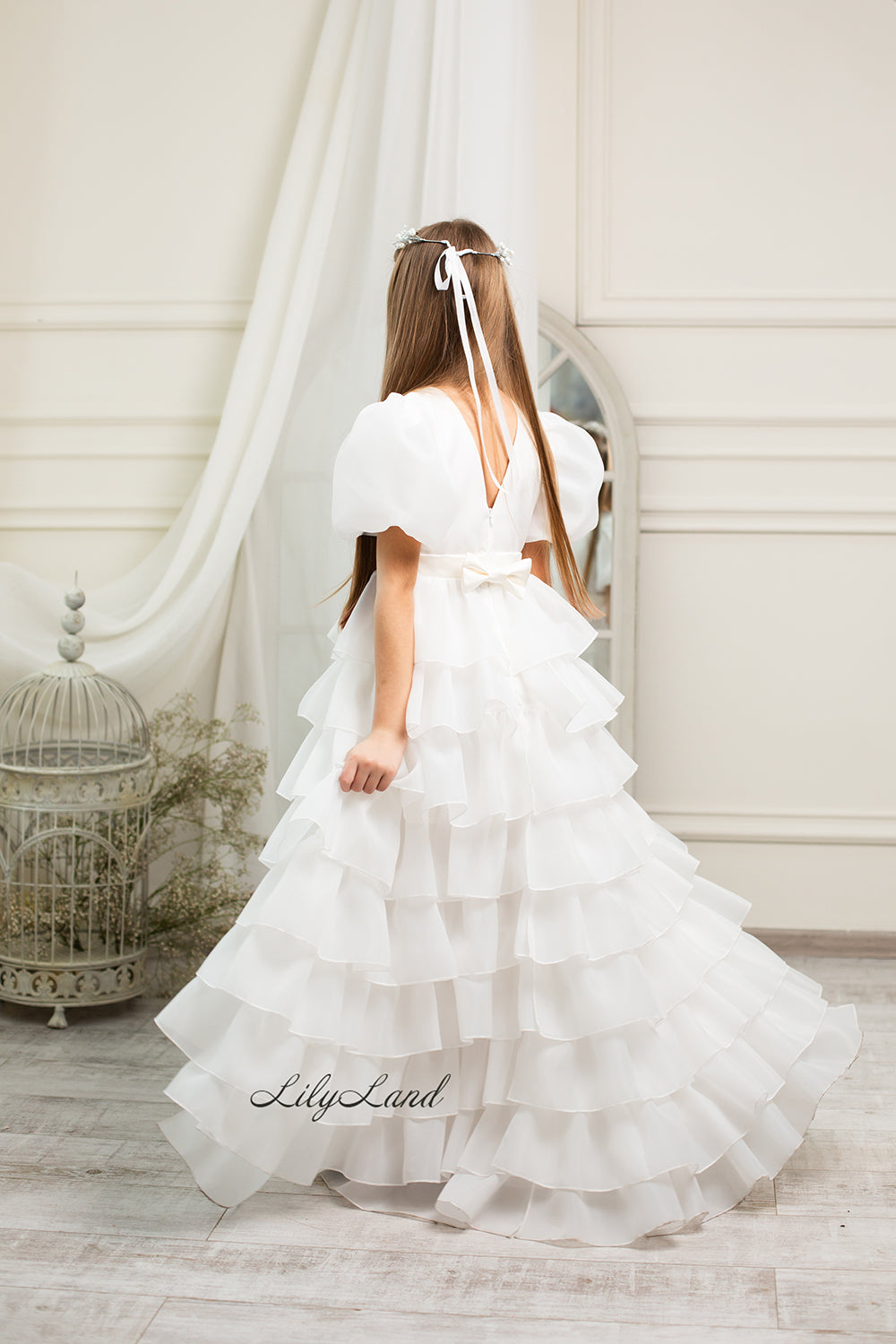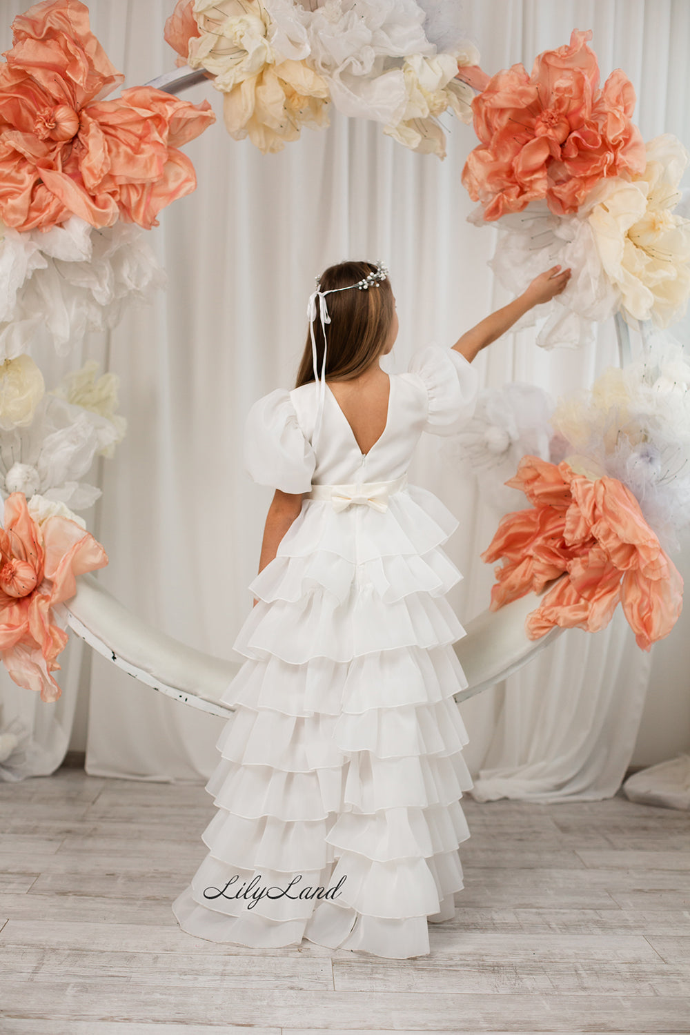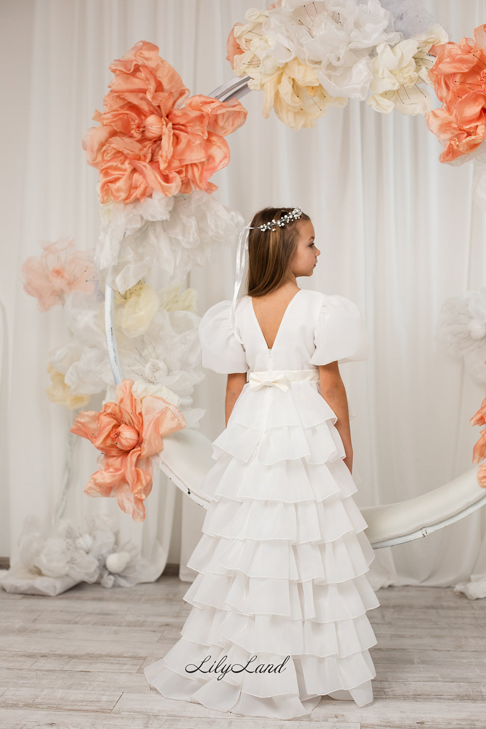 Our dress 'Julia' - an exquisite multilayered dress in Ivory, tailored for the most enchanting moments! Picture her entrance, glowing like a princess in this stunning gown. Ideal for weddings, bridesmaids, flower girls, and every special occasion. 'Julia' shines at birthdays, proms, parties, Christmas, photoshoots, Valentine's Day, and dances. Versatile and elegant, it fits any event seamlessly. Available in various colors and sizes, ensuring a perfect fit.