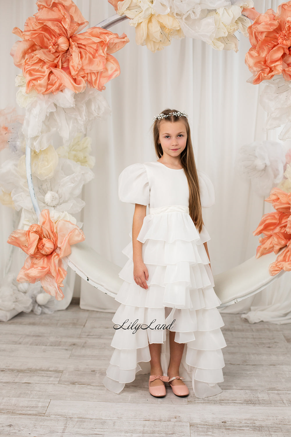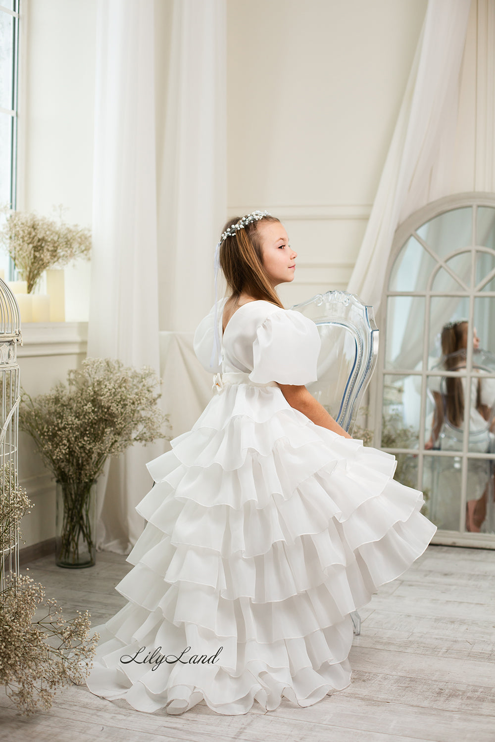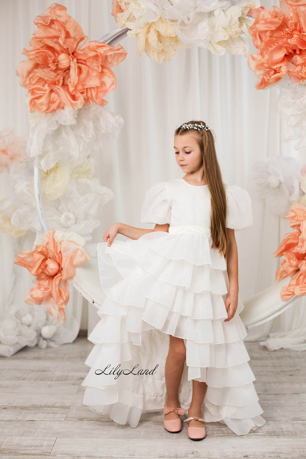 Our dress 'Julia' - an exquisite multilayered dress in Ivory, tailored for the most enchanting moments! Picture her entrance, glowing like a princess in this stunning gown. Ideal for weddings, bridesmaids, flower girls, and every special occasion. 'Julia' shines at birthdays, proms, parties, Christmas, photoshoots, Valentine's Day, and dances. Versatile and elegant, it fits any event seamlessly. Available in various colors and sizes, ensuring a perfect fit.