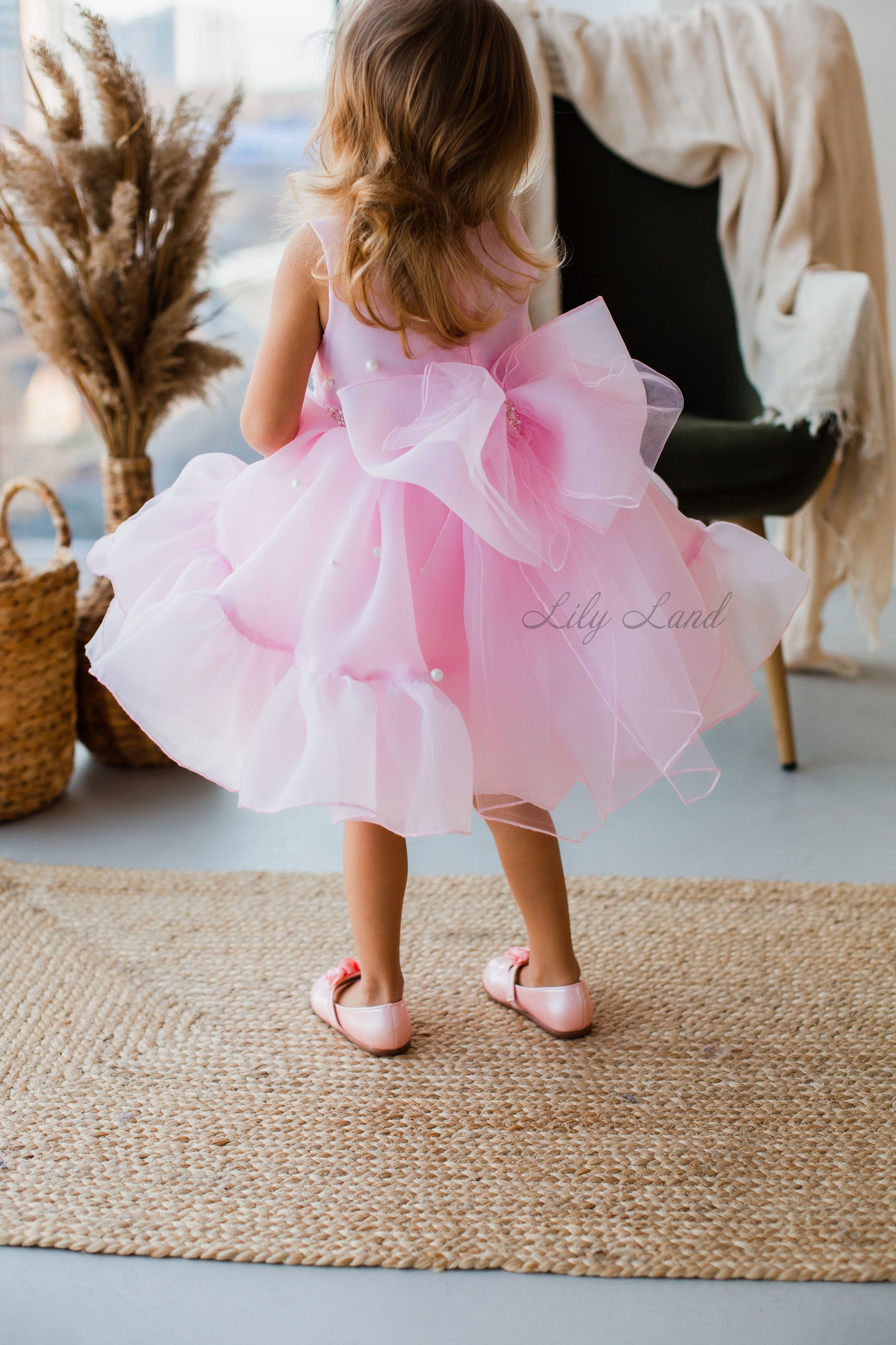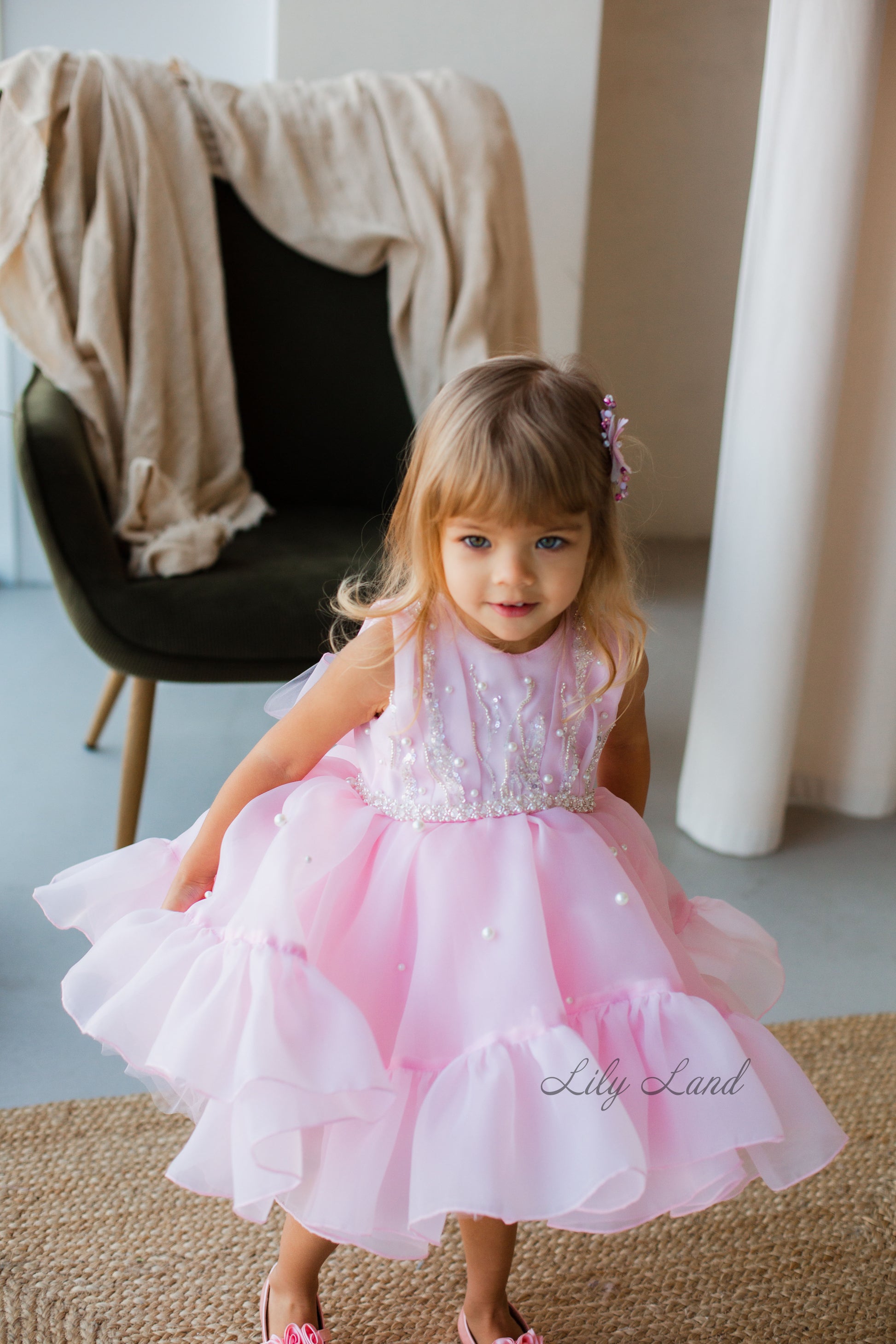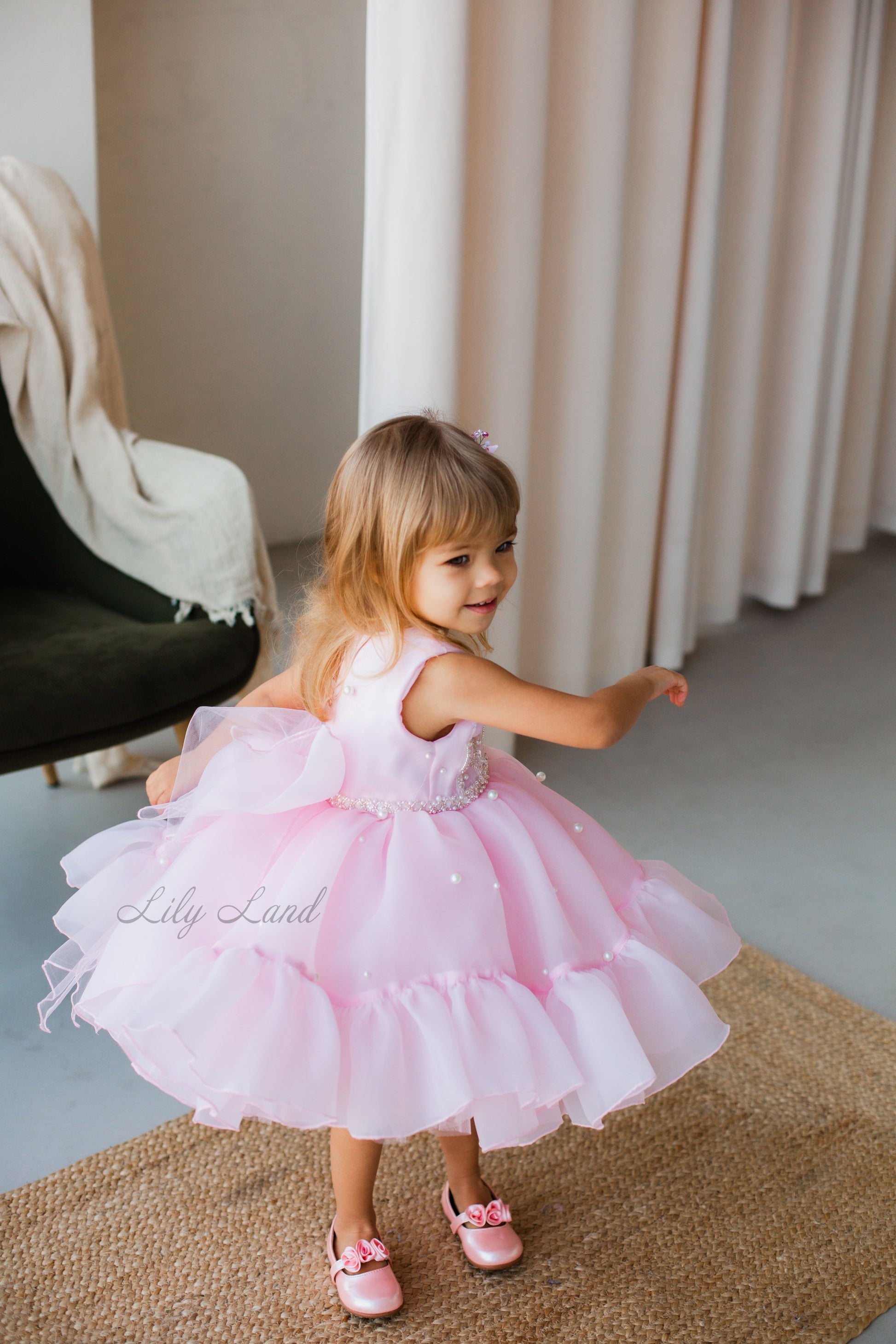 Lilu Puffy Girl Dress With Beads and Sequins in Pink