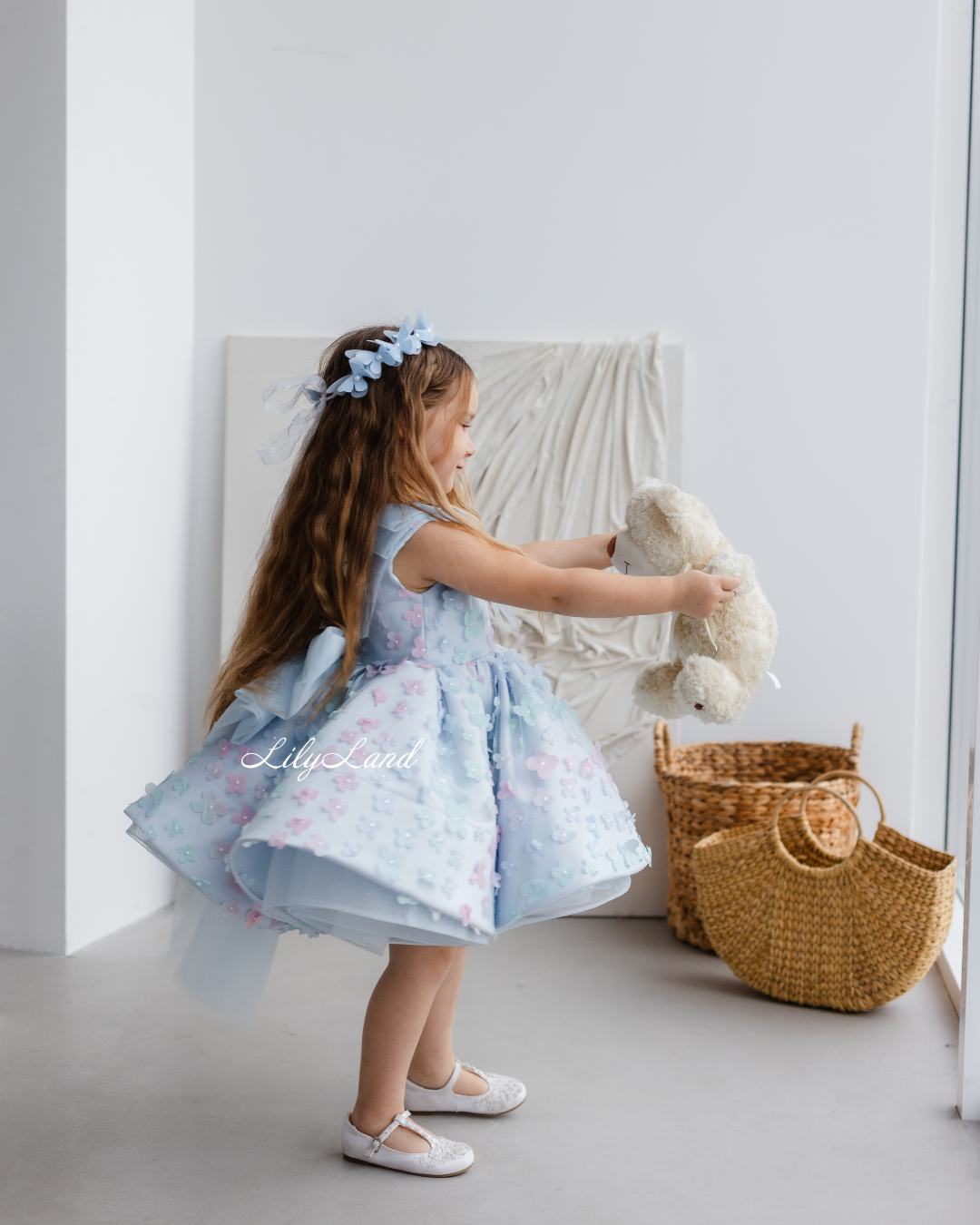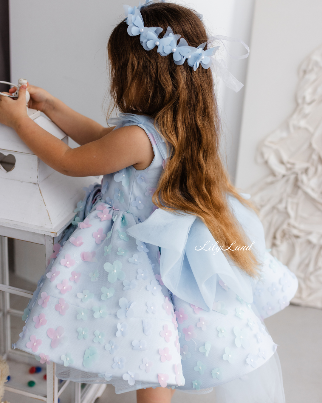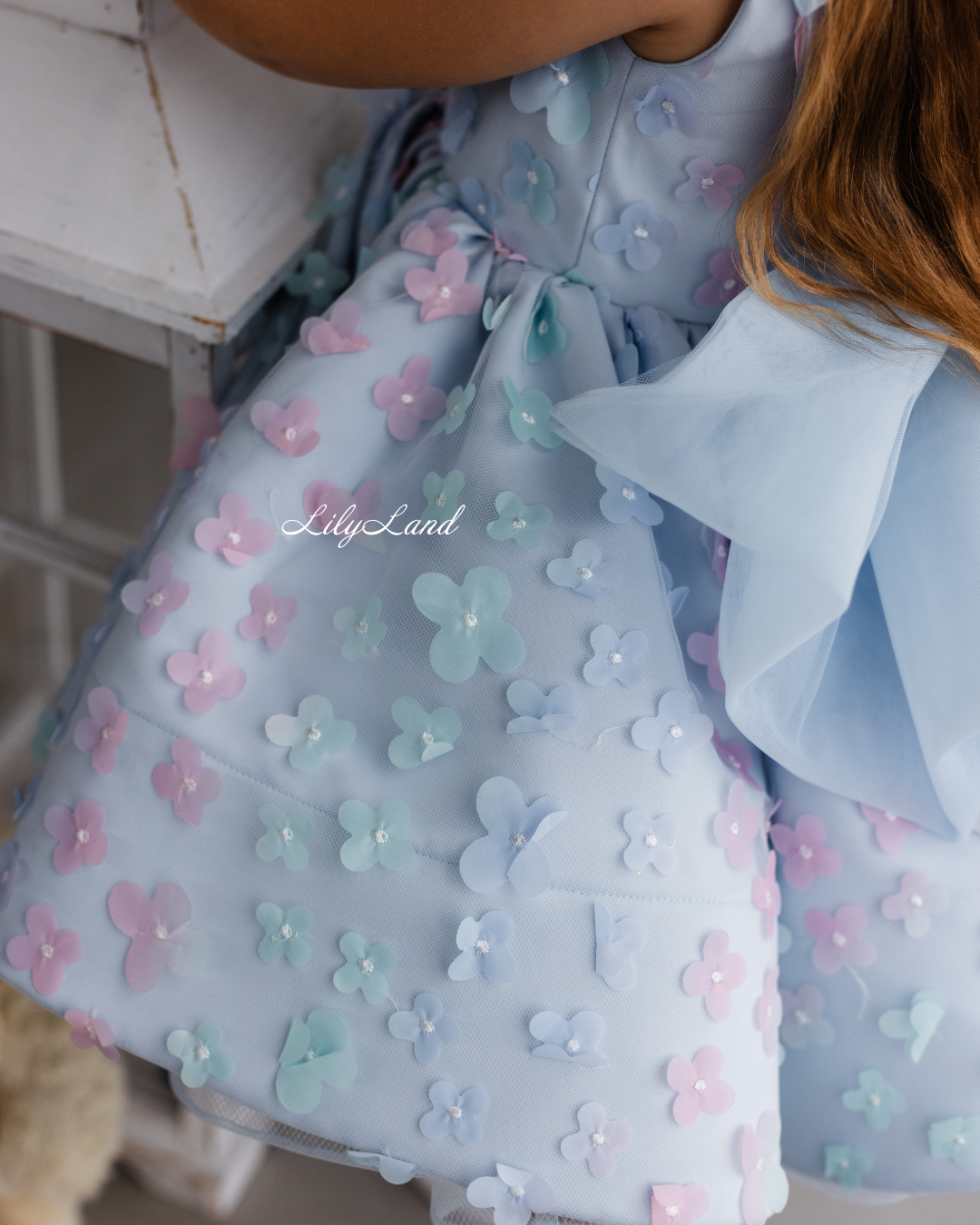 Introducing our enchanting Malva blue dress – a stunning blend of elegance and charm, now adorned with delicate lace featuring 3D flowers for an extra touch of magic. Designed with the young fashionista in mind, this dress radiates versatility, effortlessly enhancing a variety of special occasions. Whether it's a birthday celebration, a joyful gathering, a prom night to remember, a fairytale wedding, a dreamy photoshoot, a starring role as a flower girl, a festive Christmas soirée, a romantic Valentine's Day, or important milestones like first communion, junior bridesmaid duties, baptism, or christening, the Malva dress is the perfect choice to make her feel like royalty.
