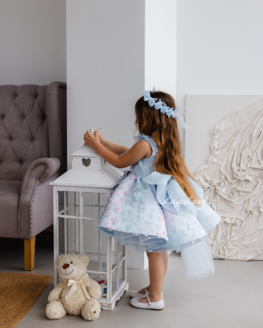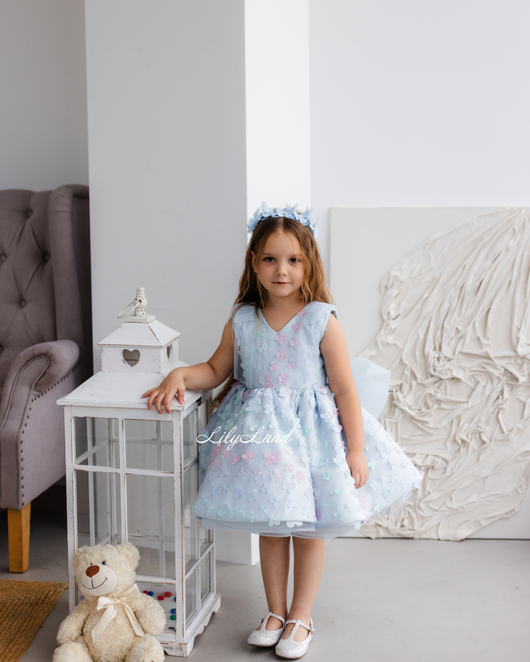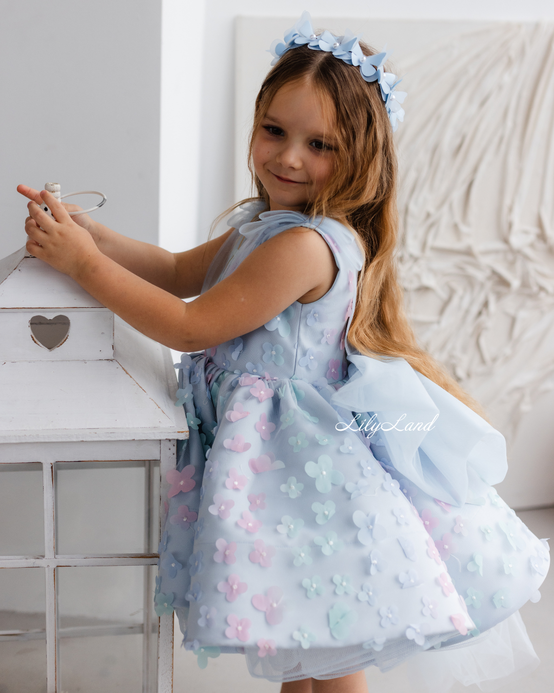 Introducing our enchanting Malva blue dress – a stunning blend of elegance and charm, now adorned with delicate lace featuring 3D flowers for an extra touch of magic. Designed with the young fashionista in mind, this dress radiates versatility, effortlessly enhancing a variety of special occasions. Whether it's a birthday celebration, a joyful gathering, a prom night to remember, a fairytale wedding, a dreamy photoshoot, a starring role as a flower girl, a festive Christmas soirée, a romantic Valentine's Day, or important milestones like first communion, junior bridesmaid duties, baptism, or christening, the Malva dress is the perfect choice to make her feel like royalty.