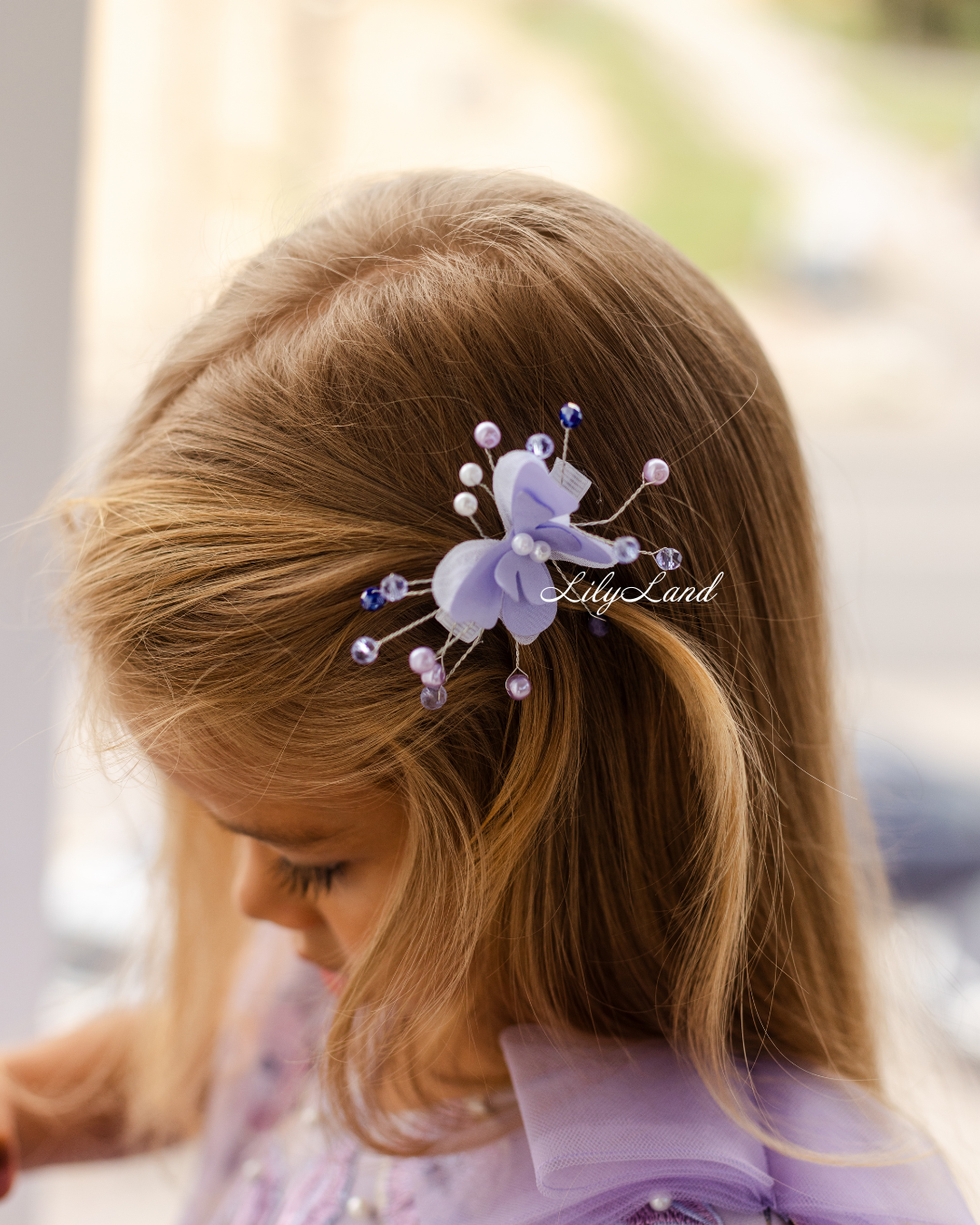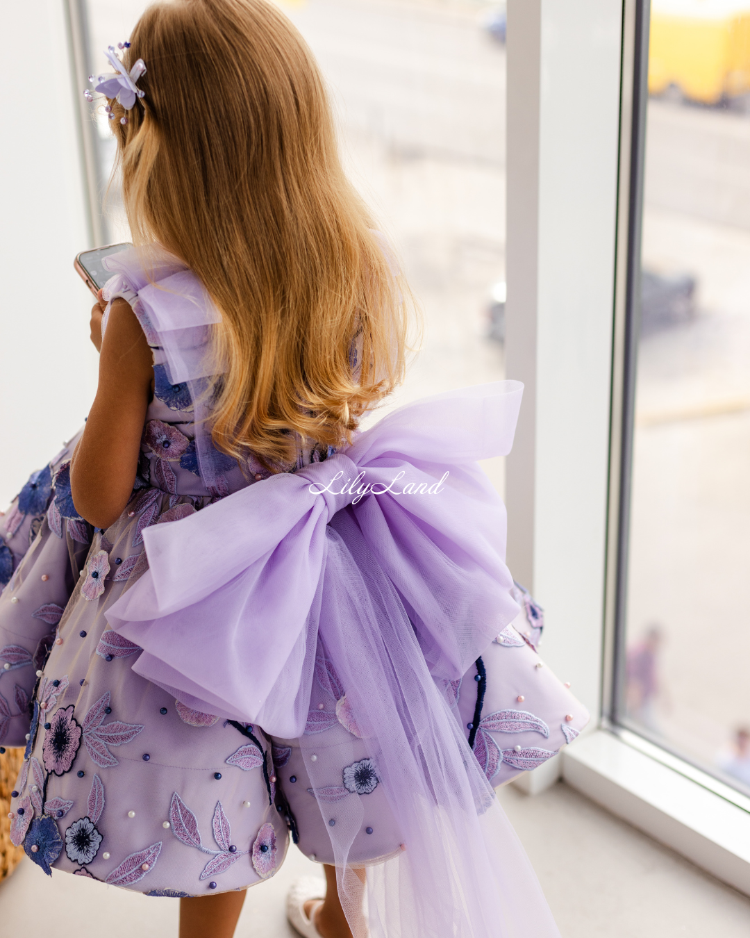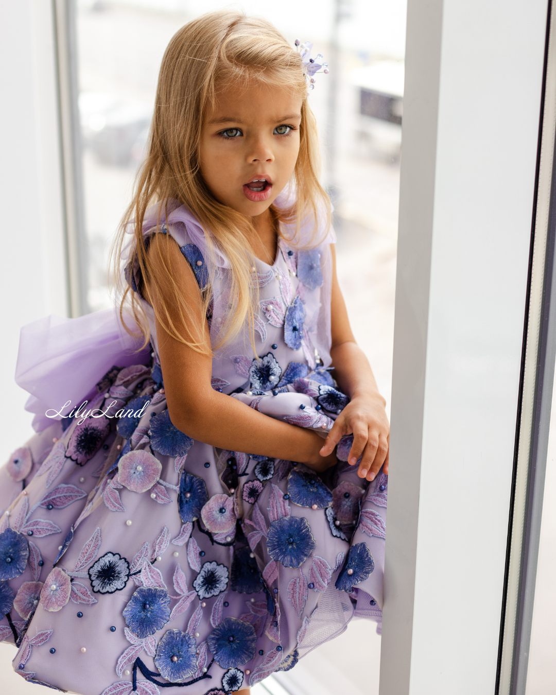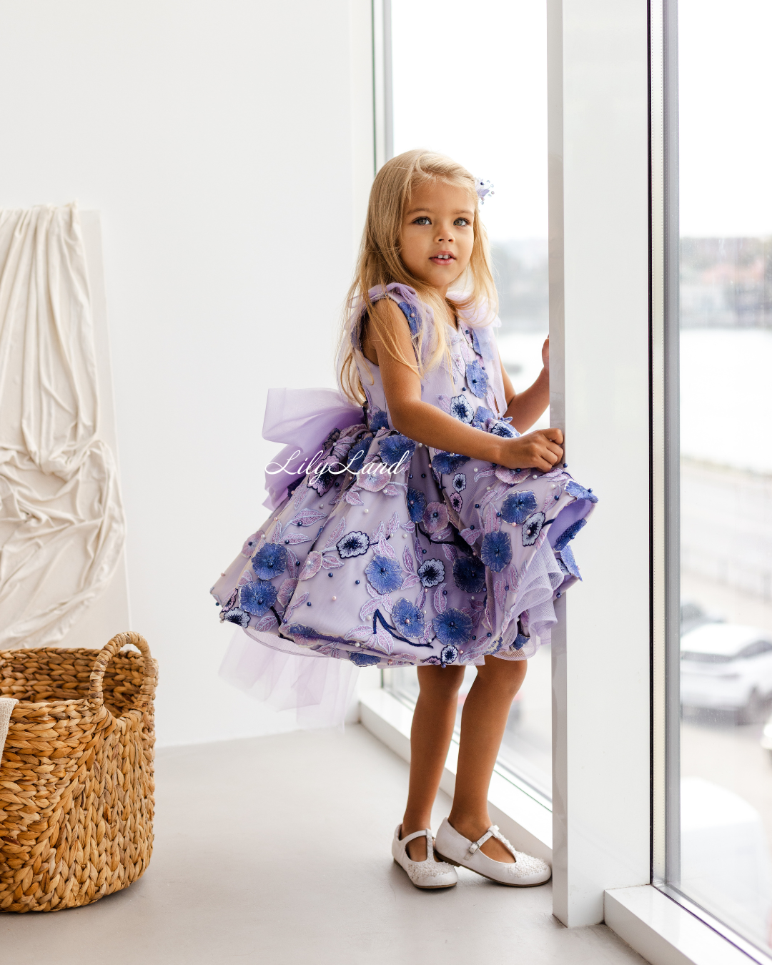 Malva Girl Dress with Floral embroidery and Pearls in Lavender