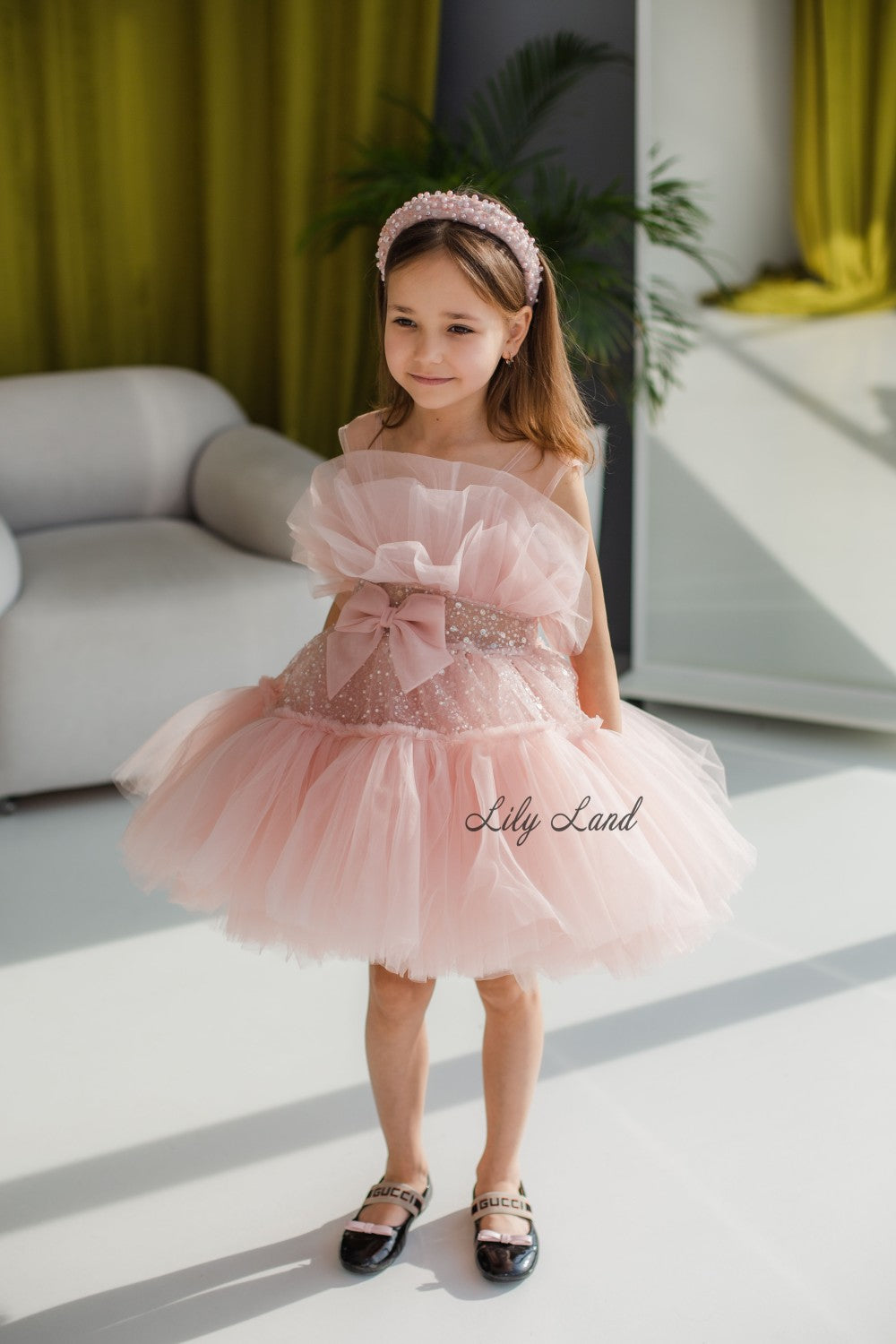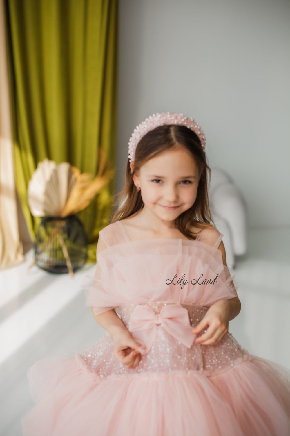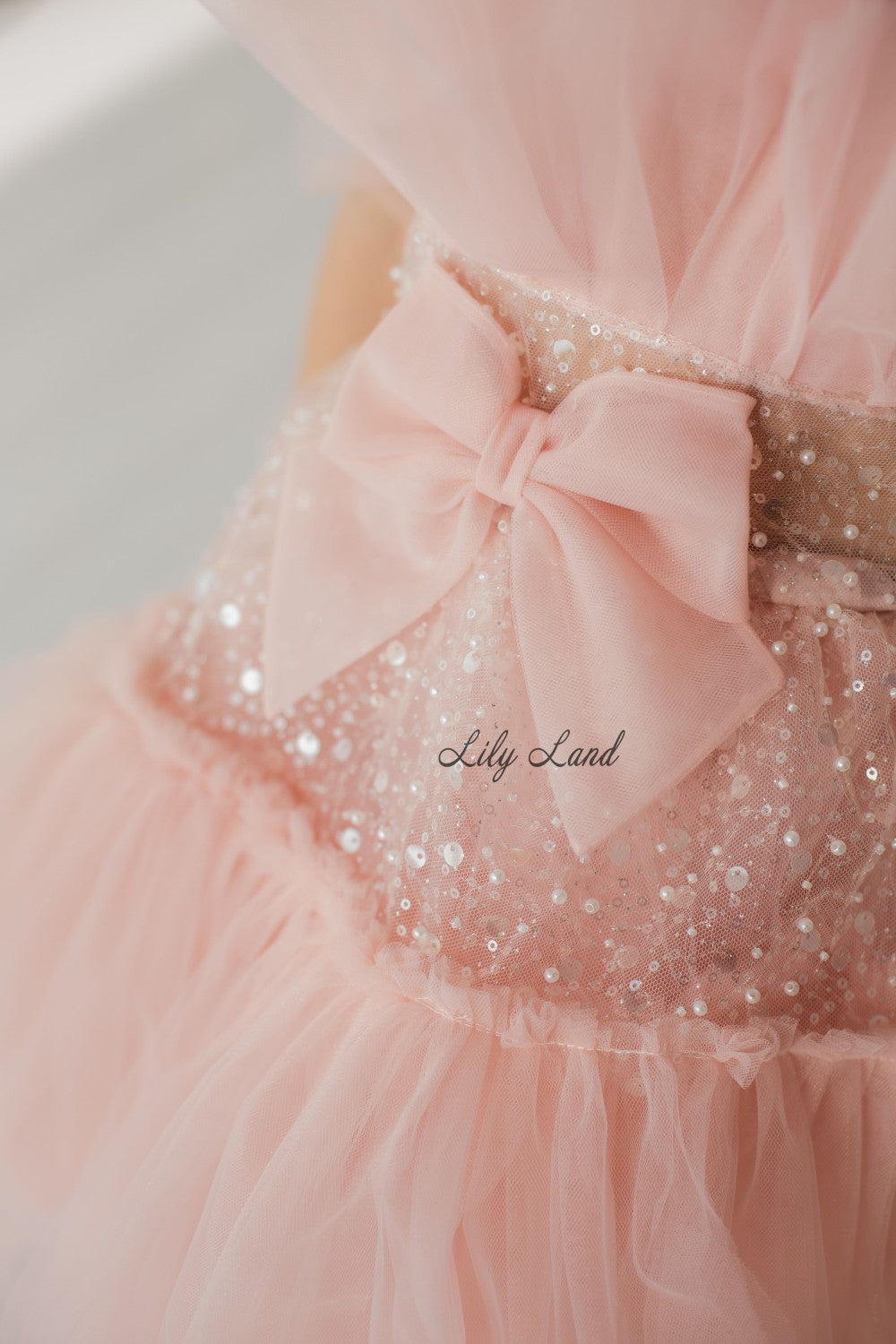 Margaret Girl Dress with Sequins in Blush Pink