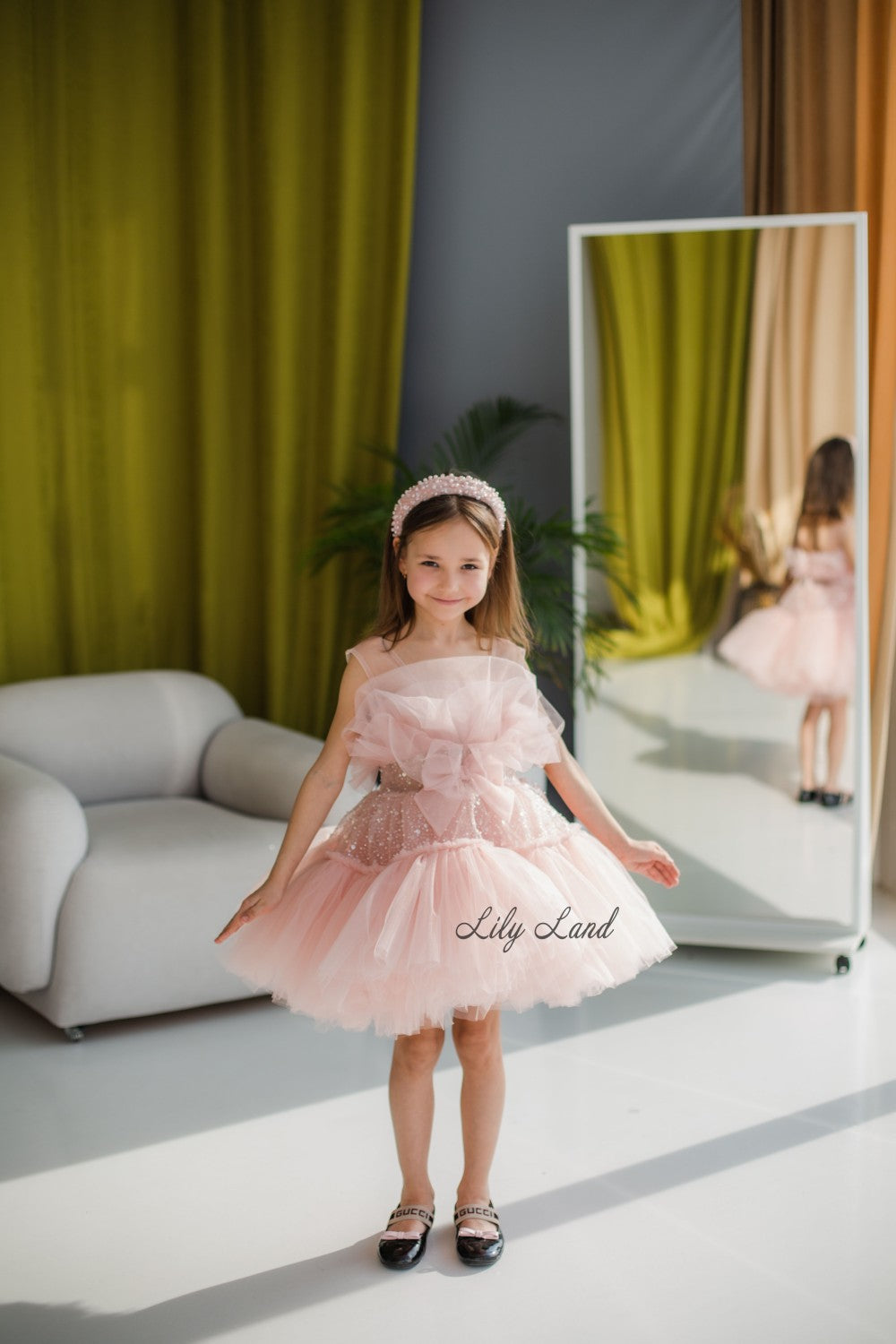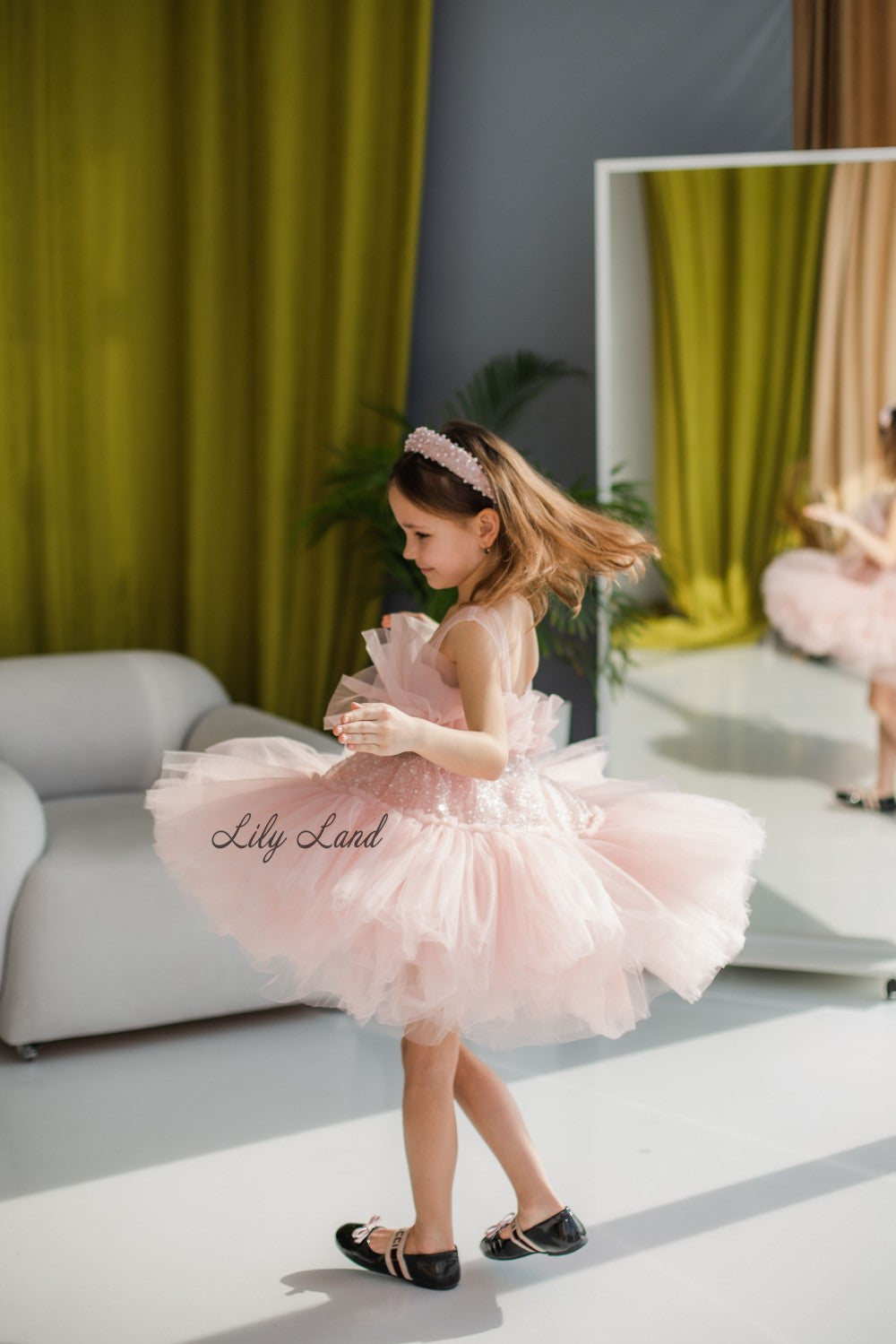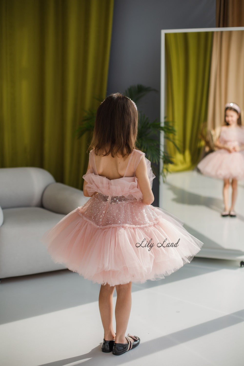 Margaret Girl Dress with Sequins in Blush Pink