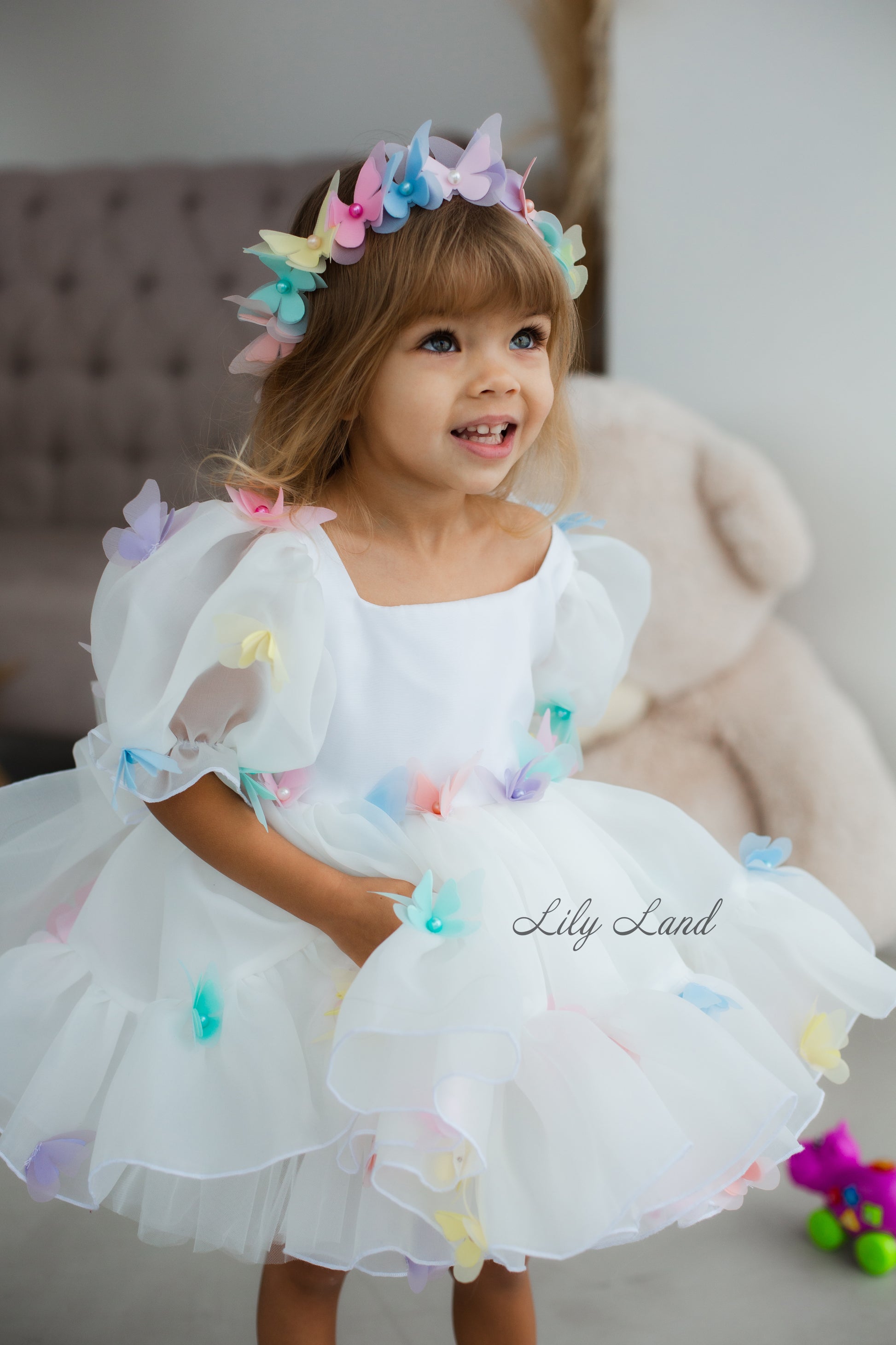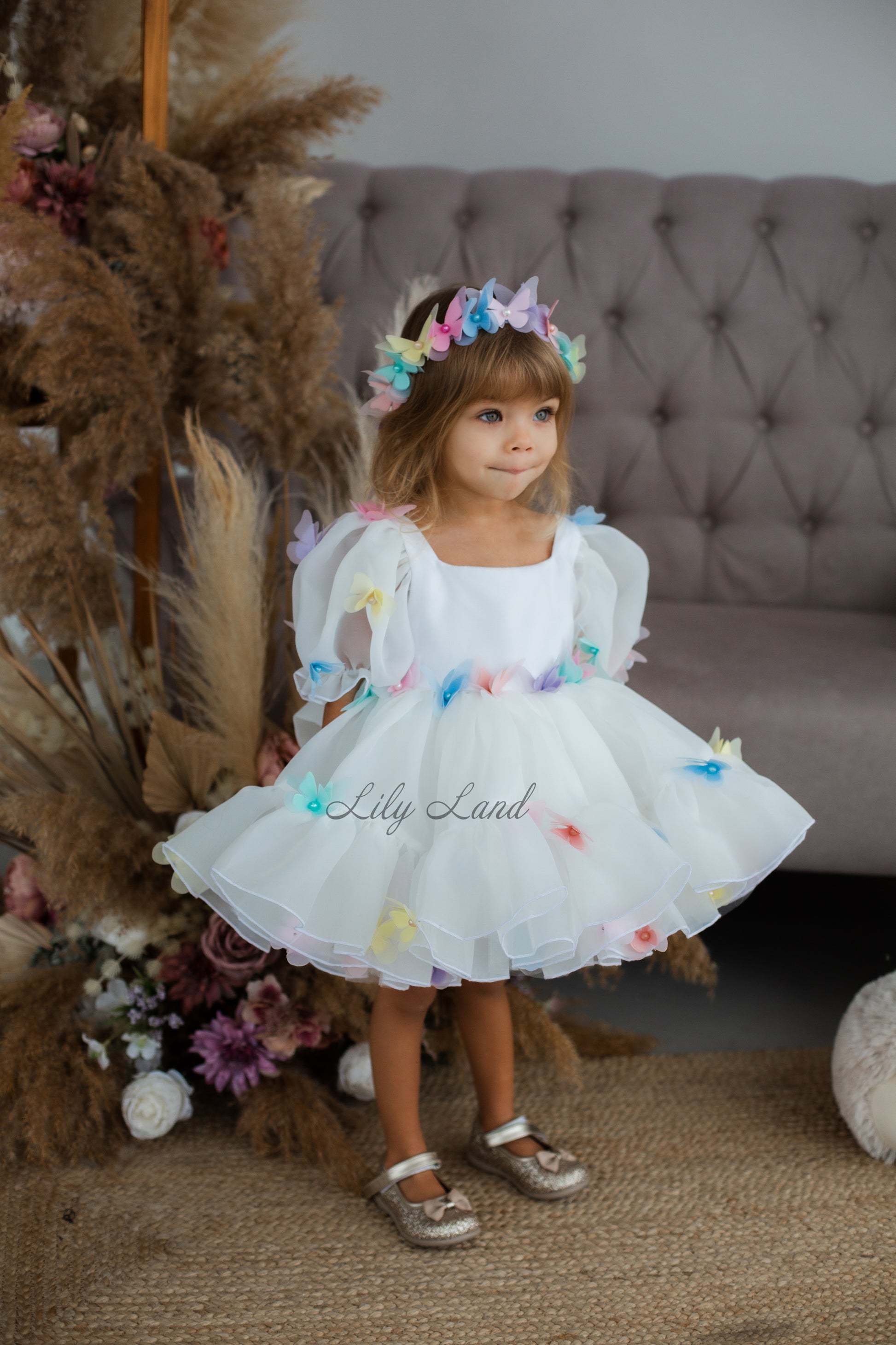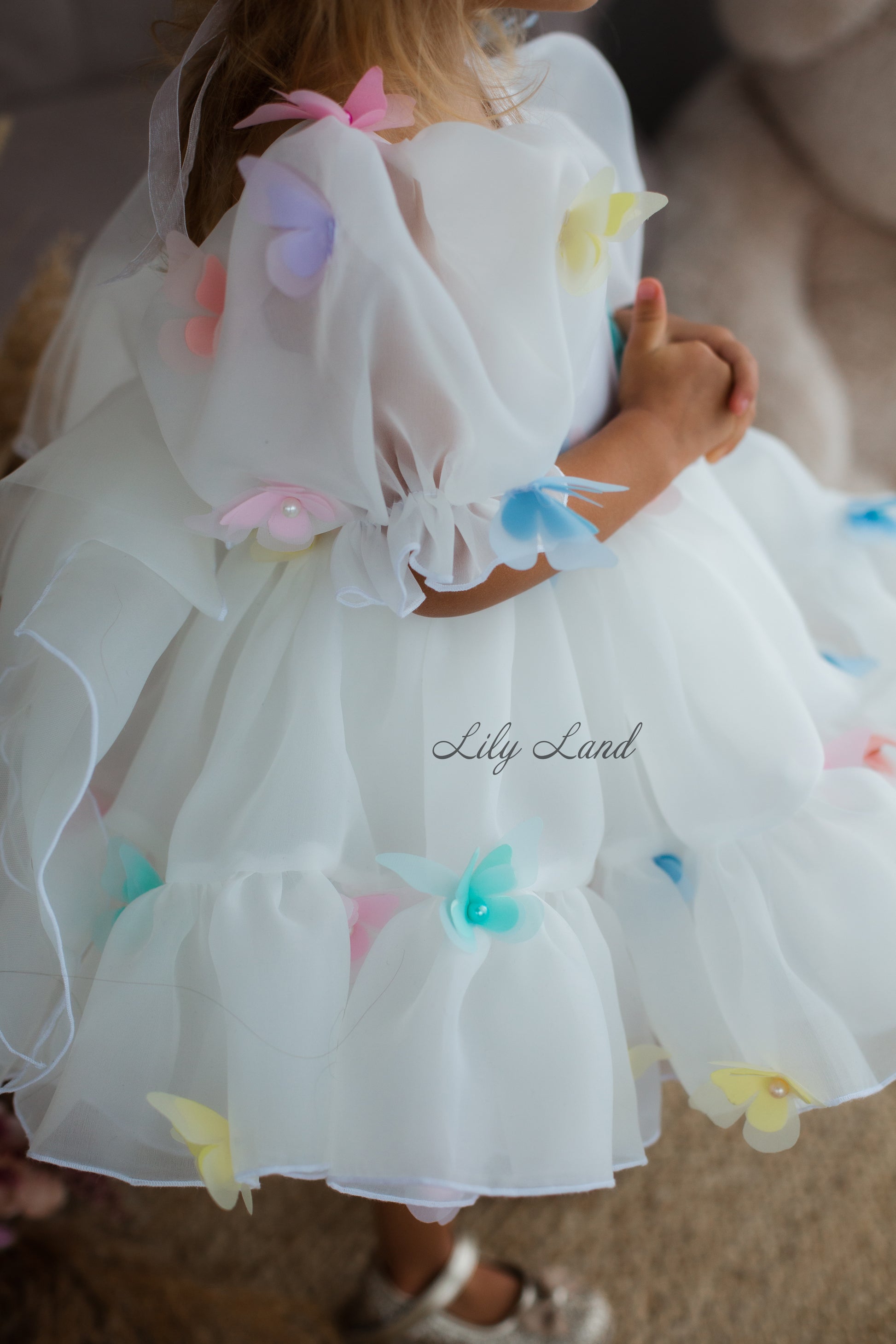 Marseille Puffy Dress in White with Multicolored Butterflies