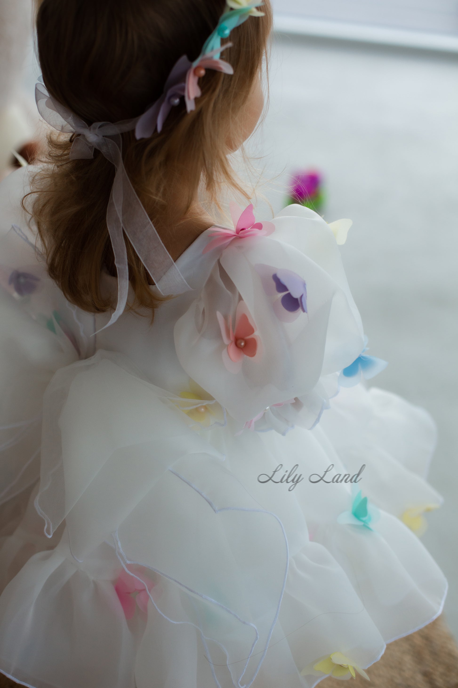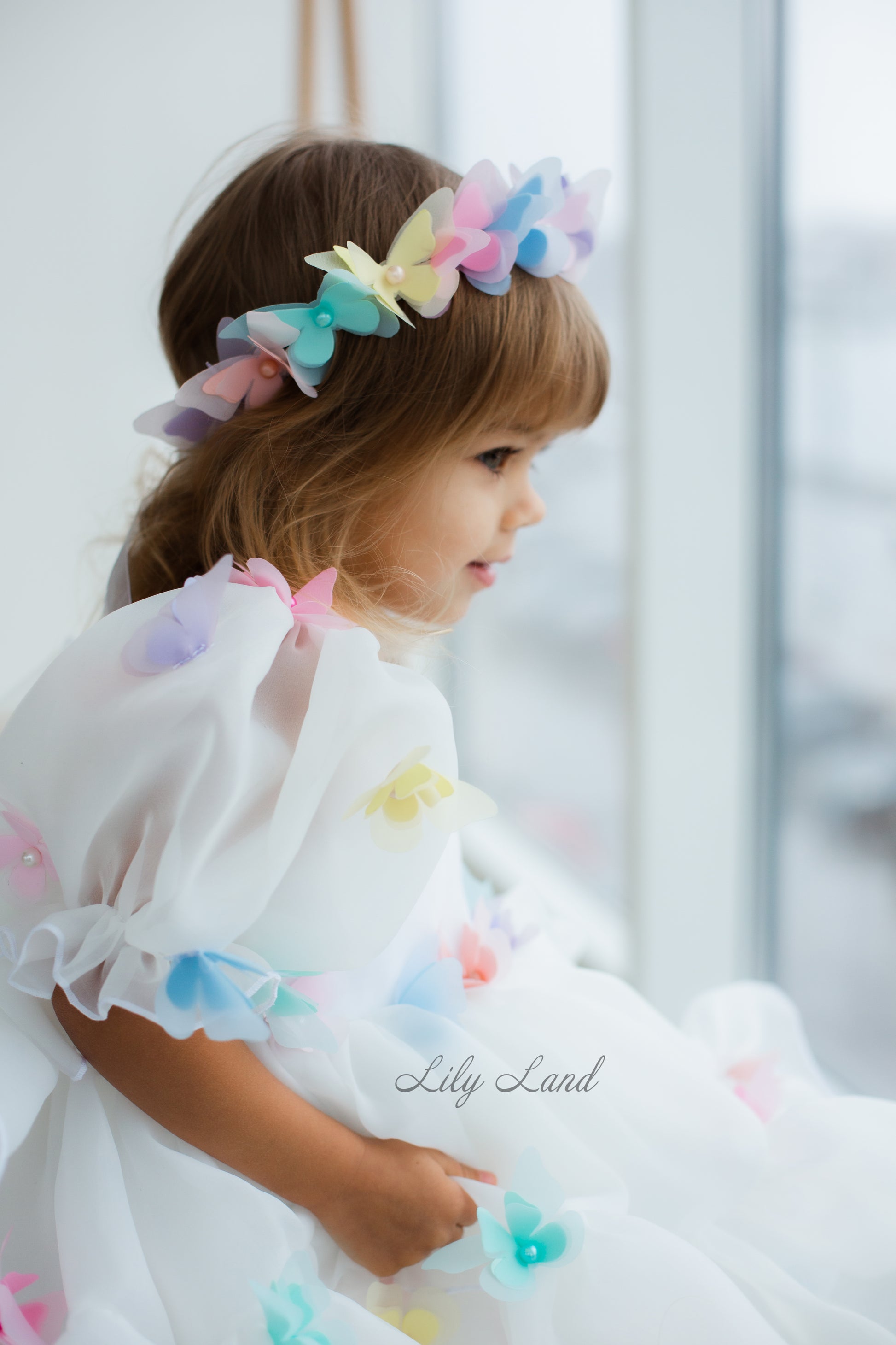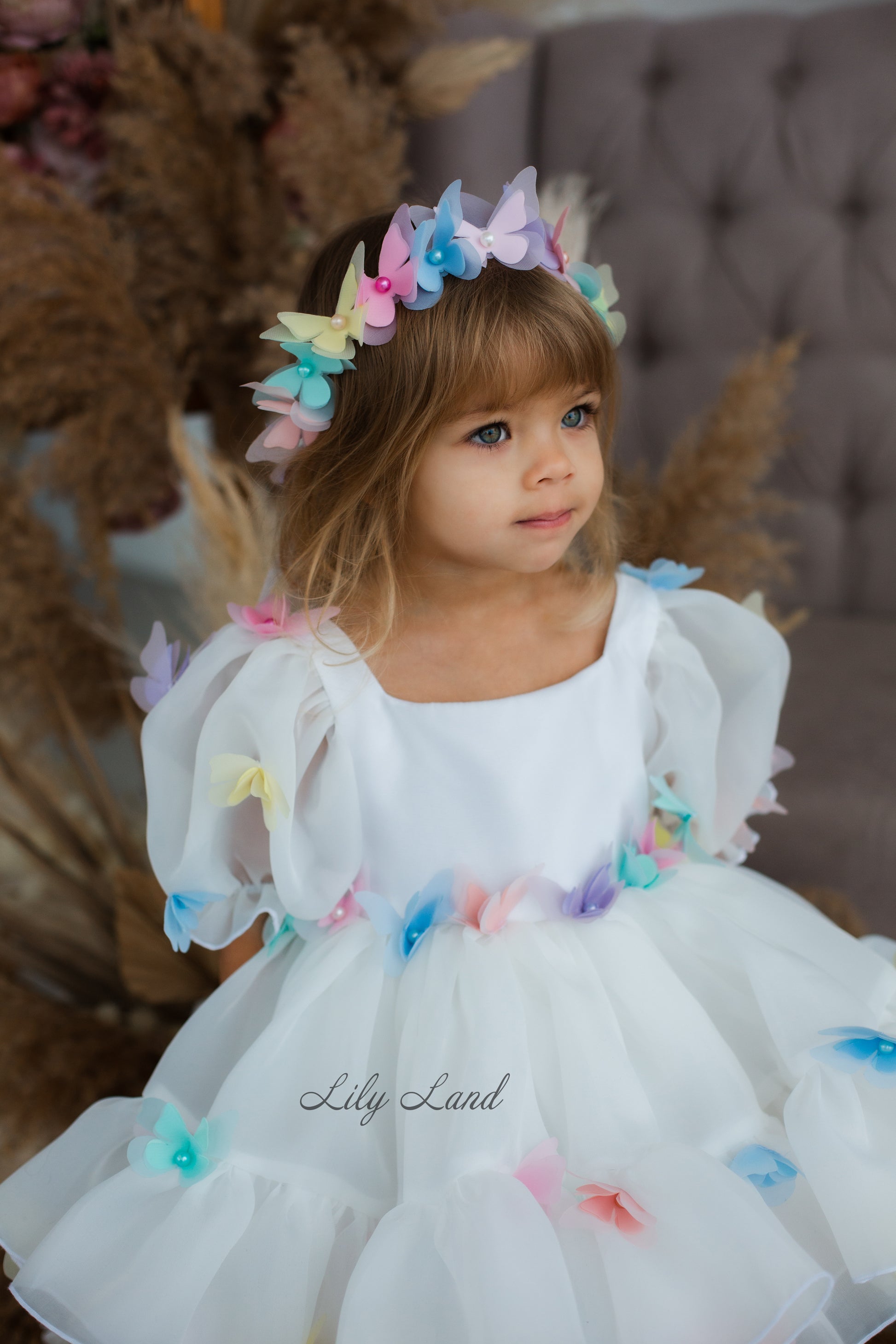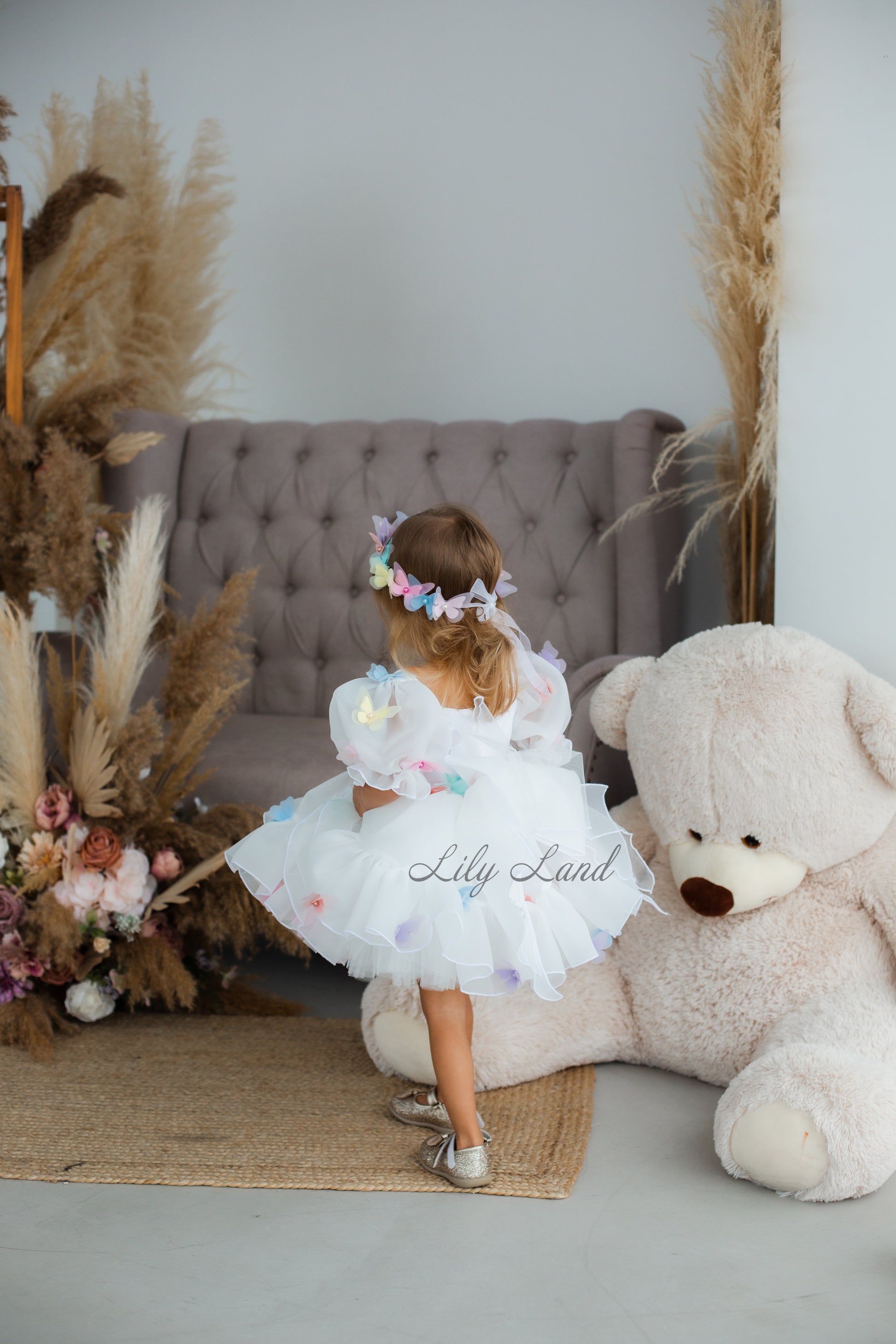 Marseille Puffy Dress in White with Multicolored Butterflies