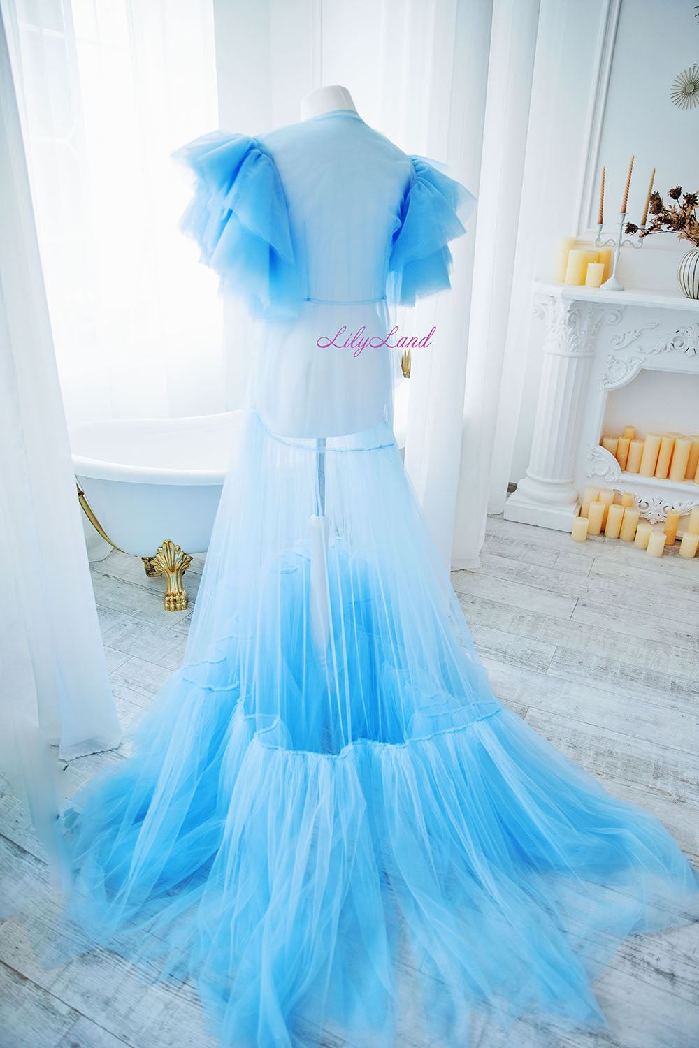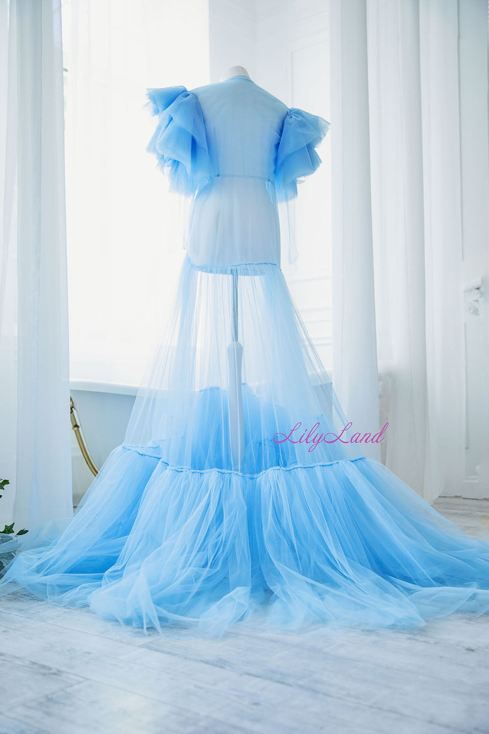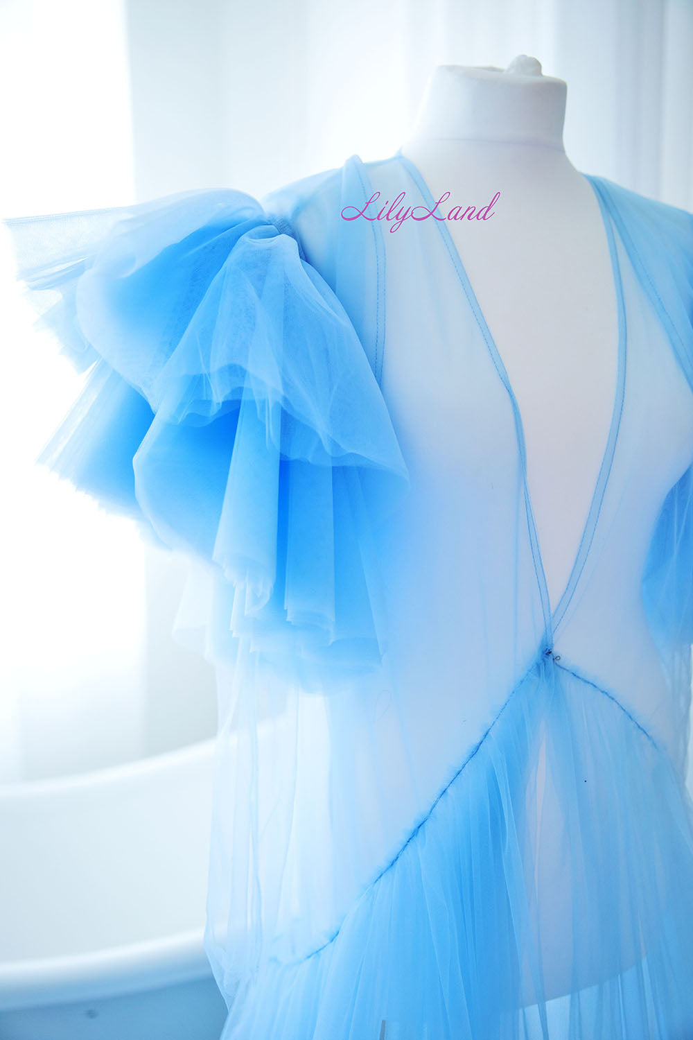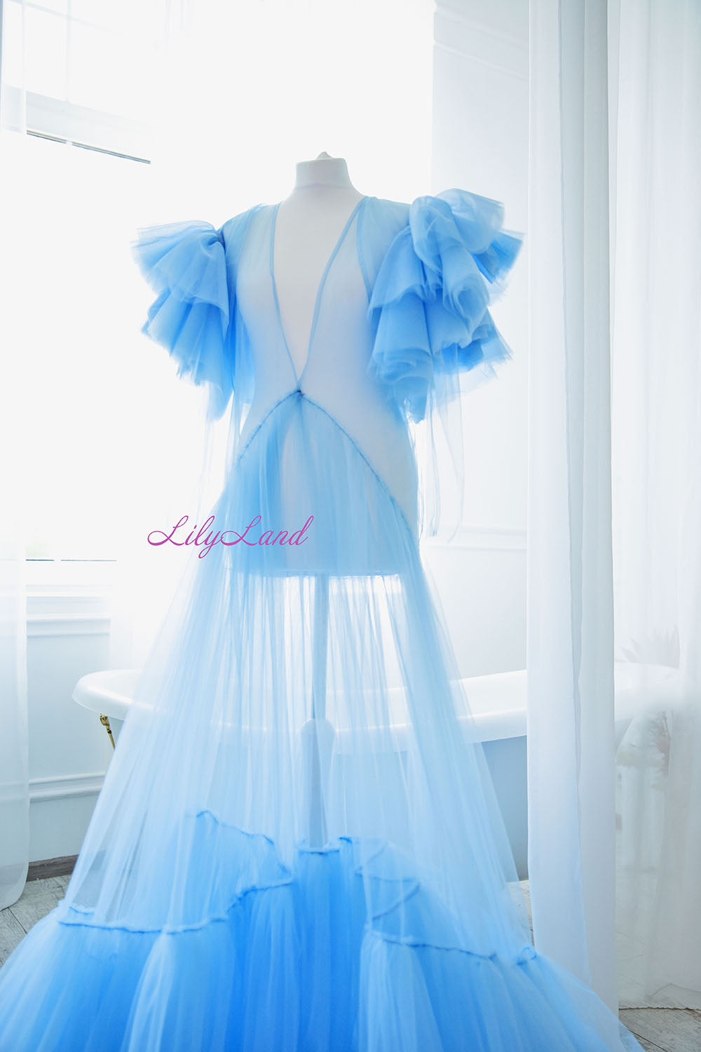Una idea interesante para plasmar hermosas fotografías de embarazo es la de una madre con una delicada bata. Nuestra bata azul definitivamente te ayudará a crear el look deseado. Esta bata de maternidad hecha a mano, con su diseño excepcionalmente original y moderno elaborado con tul de alta calidad, es la elección perfecta para sesiones de fotos, baby showers, sesiones de fotografía u otras ocasiones especiales. La bata se puede realizar en varios colores y tamaños, teniendo en cuenta todos los deseos del comprador.