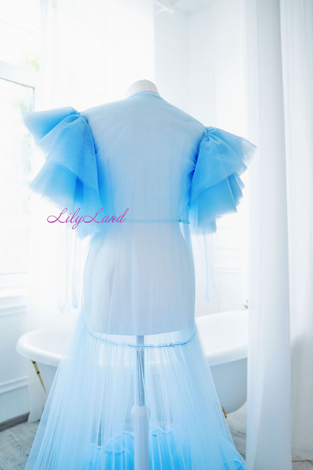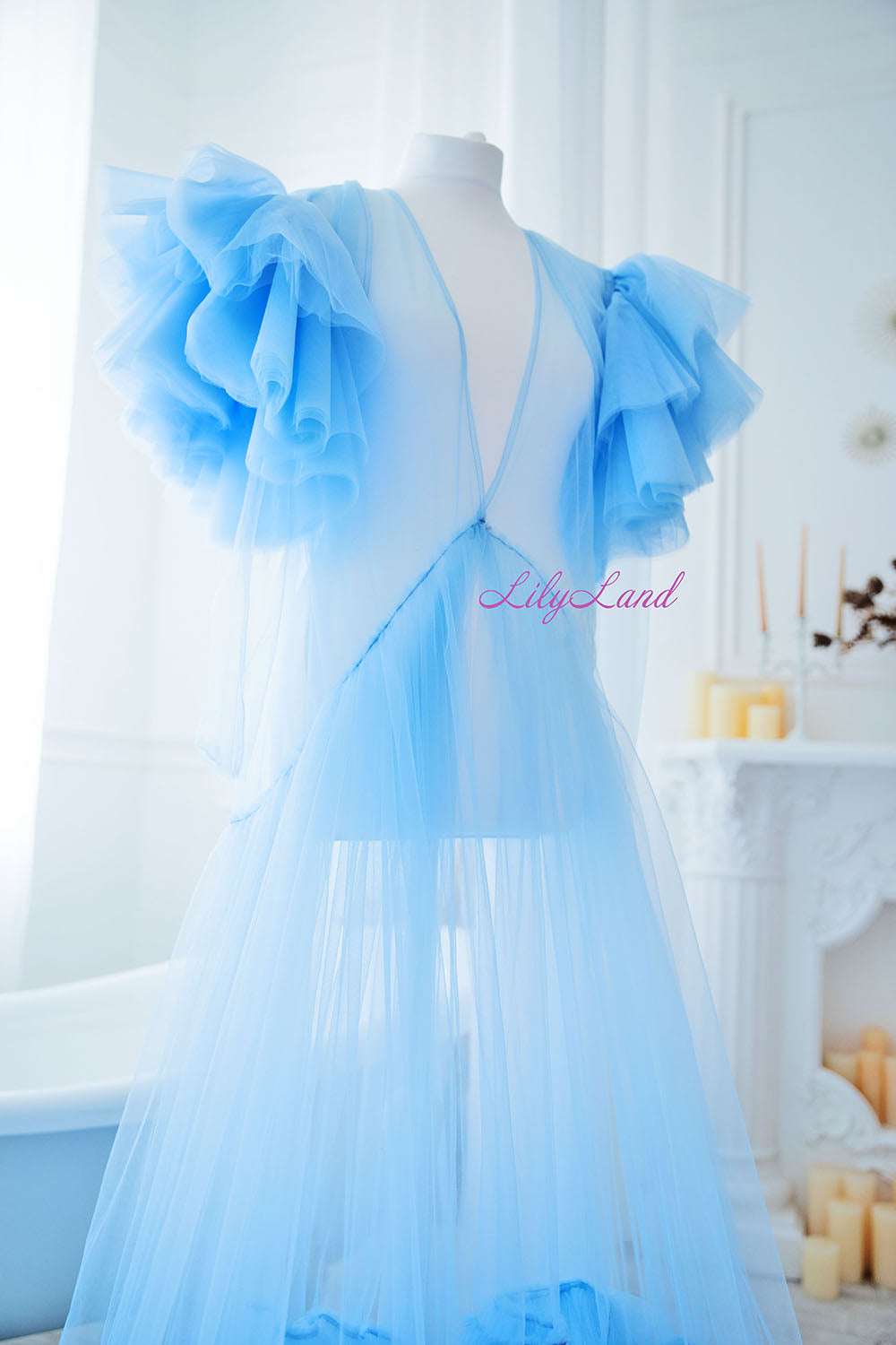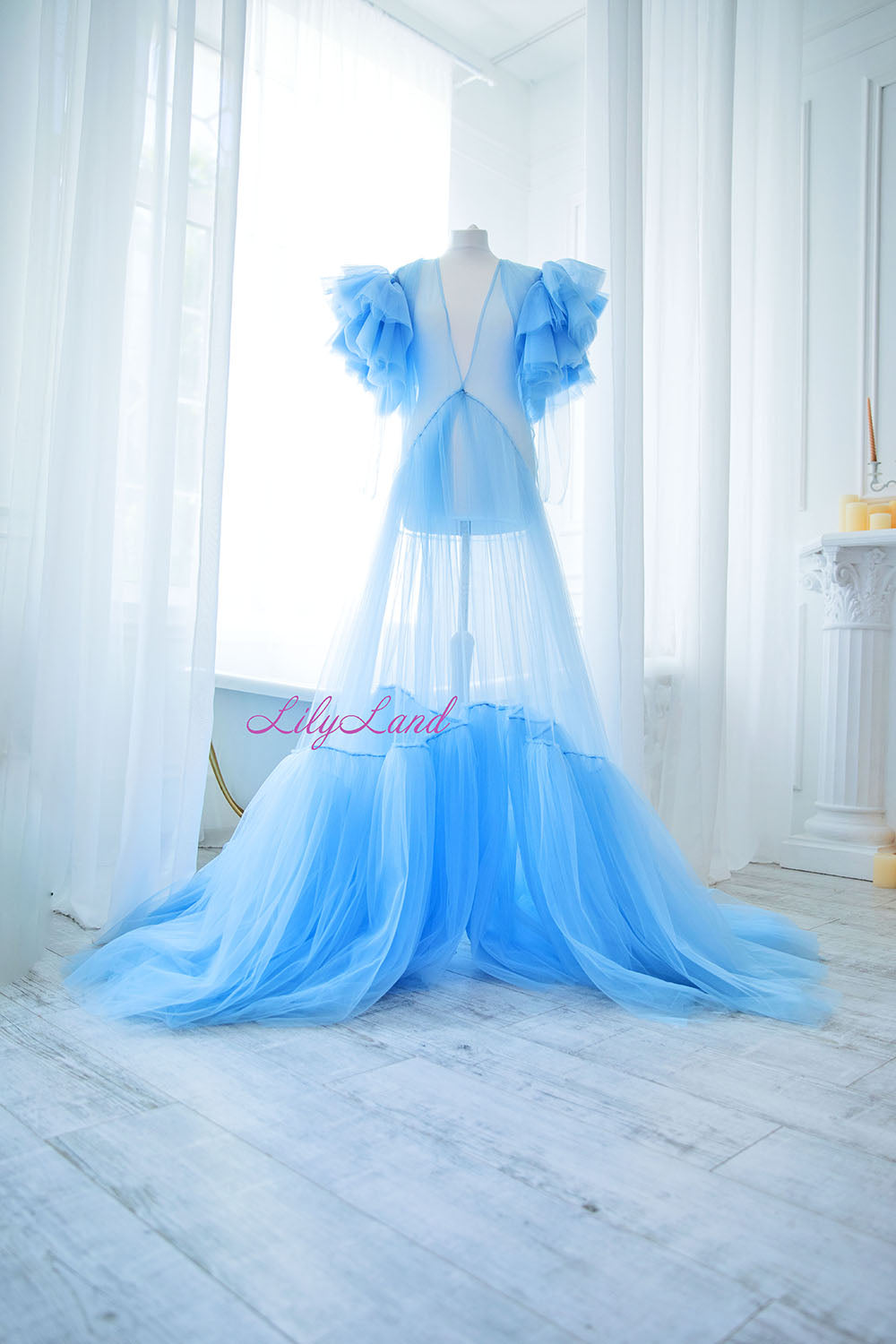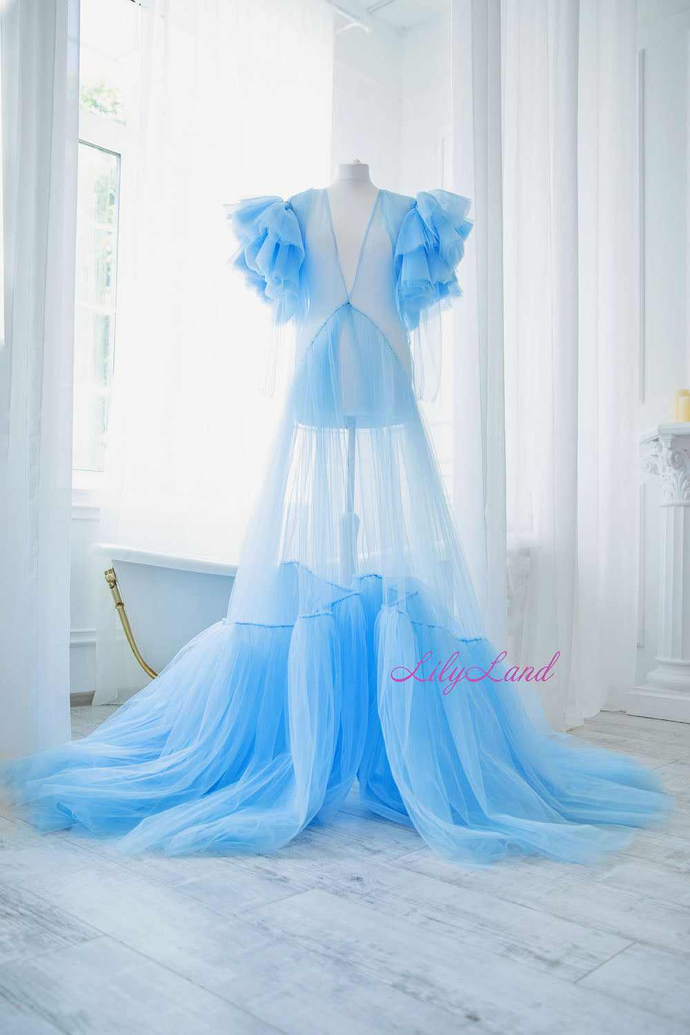 Una idea interesante para plasmar hermosas fotografías de embarazo es la de una madre con una delicada bata. Nuestra bata azul definitivamente te ayudará a crear el look deseado. Esta bata de maternidad hecha a mano, con su diseño excepcionalmente original y moderno elaborado con tul de alta calidad, es la elección perfecta para sesiones de fotos, baby showers, sesiones de fotografía u otras ocasiones especiales. La bata se puede realizar en varios colores y tamaños, teniendo en cuenta todos los deseos del comprador.
