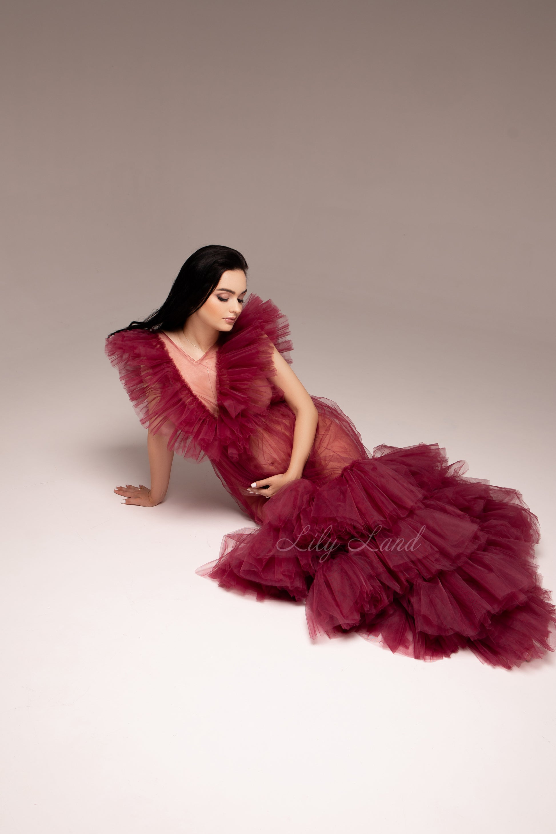 Vestido de sesión de fotos de embarazo, vestido de maternidad Claret para sesión de fotos
