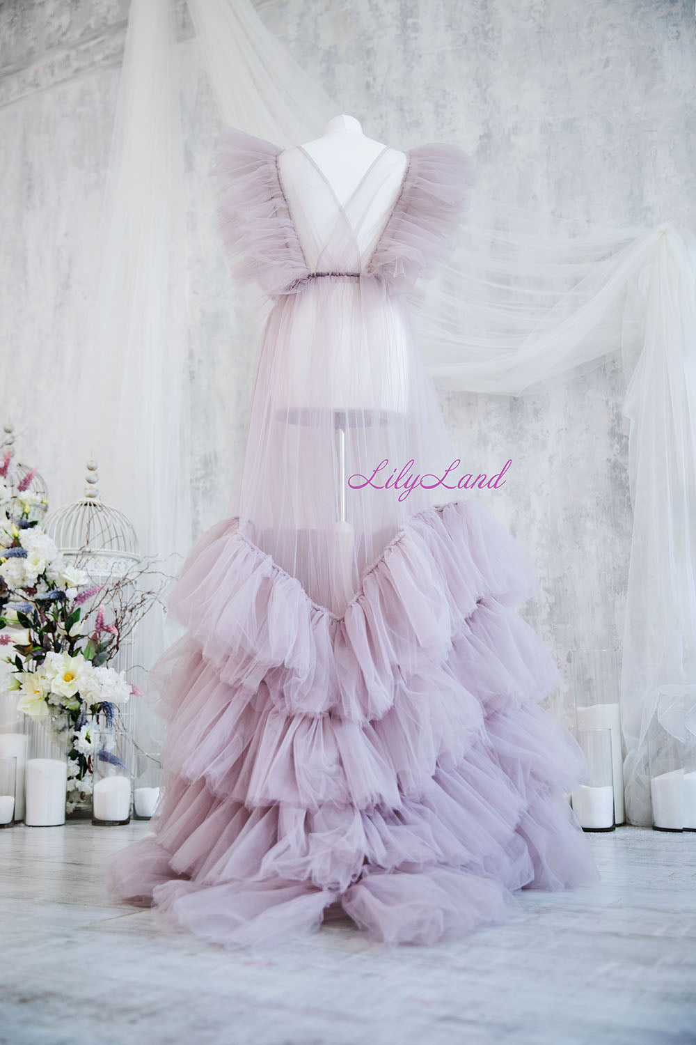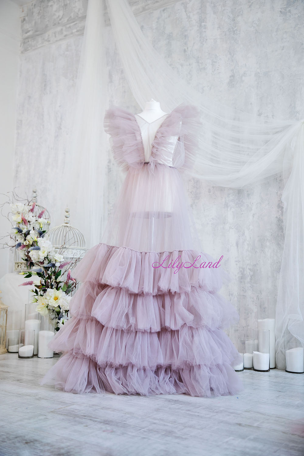Materiales: purpurina, tul, peplum satinado, algodón.