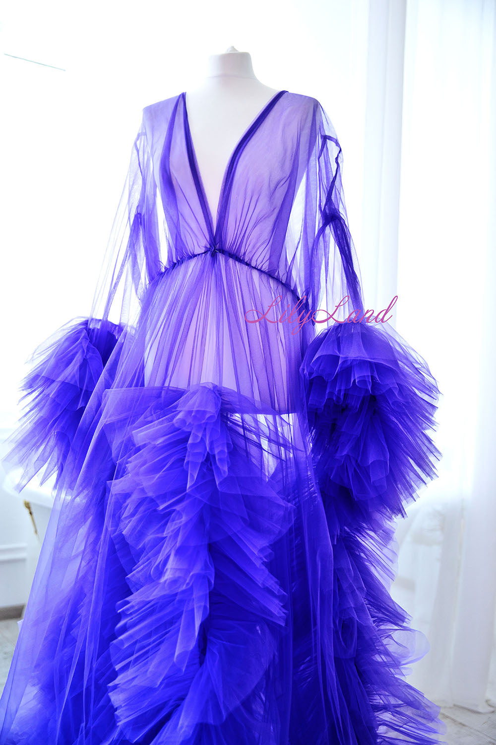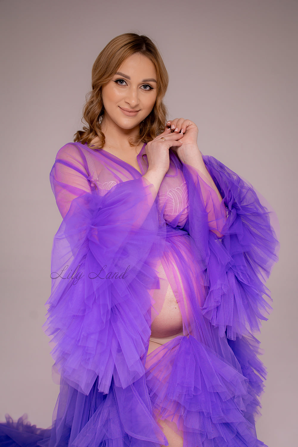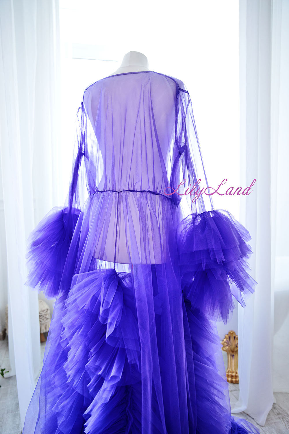 ¿Quieres lucir genial incluso durante el embarazo? Triunfarás al 100% con nuestra elegante bata premamá. Está elaborado en color violeta. Esta bata de maternidad hecha a mano, con su diseño excepcionalmente original y moderno elaborado con tul de alta calidad, es la elección perfecta para sesiones de fotos, baby showers, sesiones de fotografía u otras ocasiones especiales. La bata se puede realizar en varios colores y tamaños, teniendo en cuenta todos los deseos del comprador.