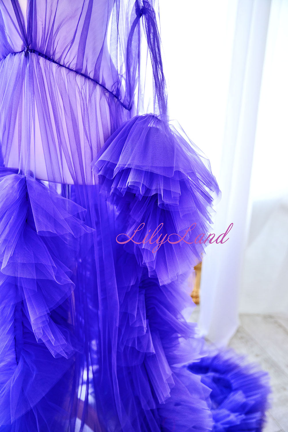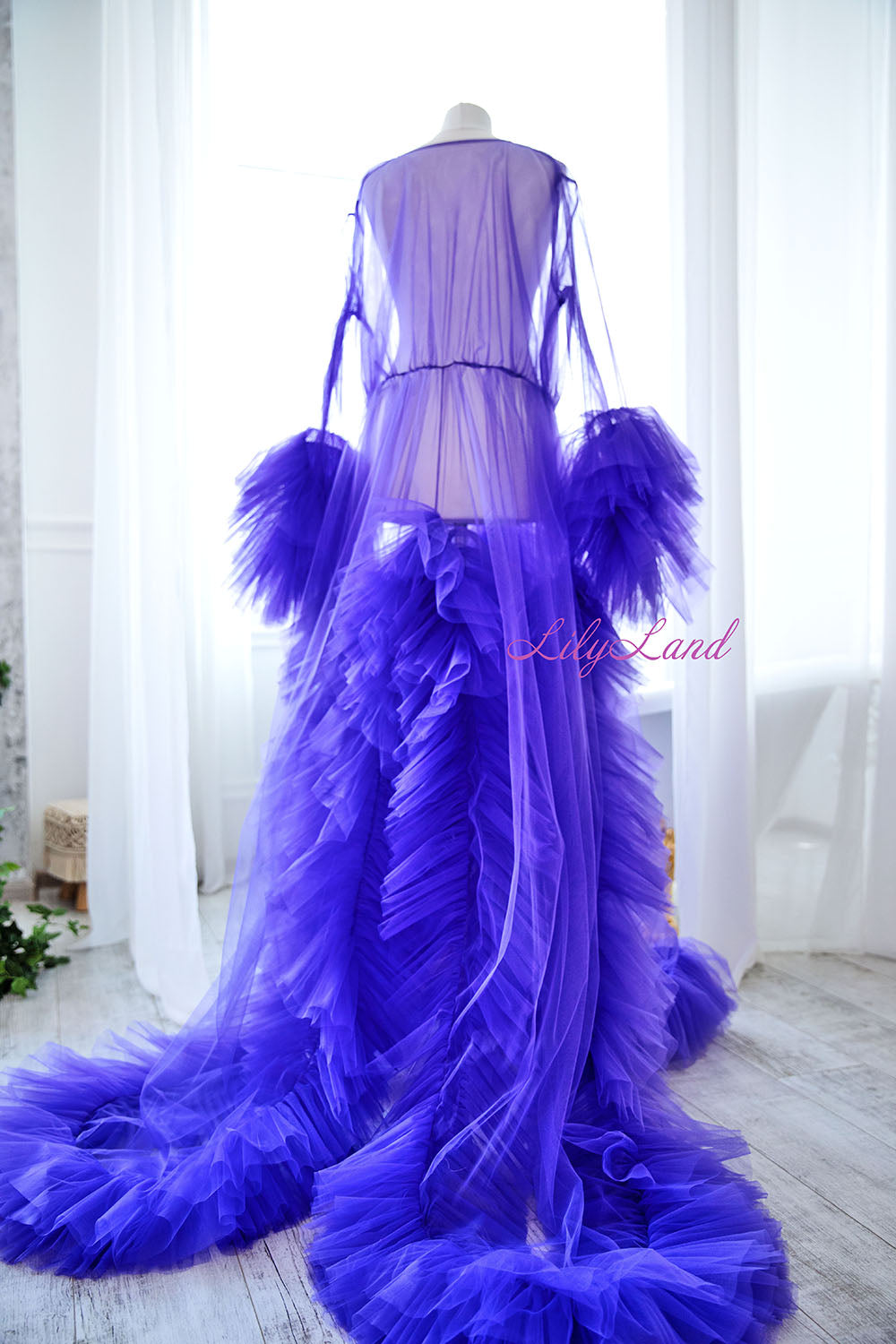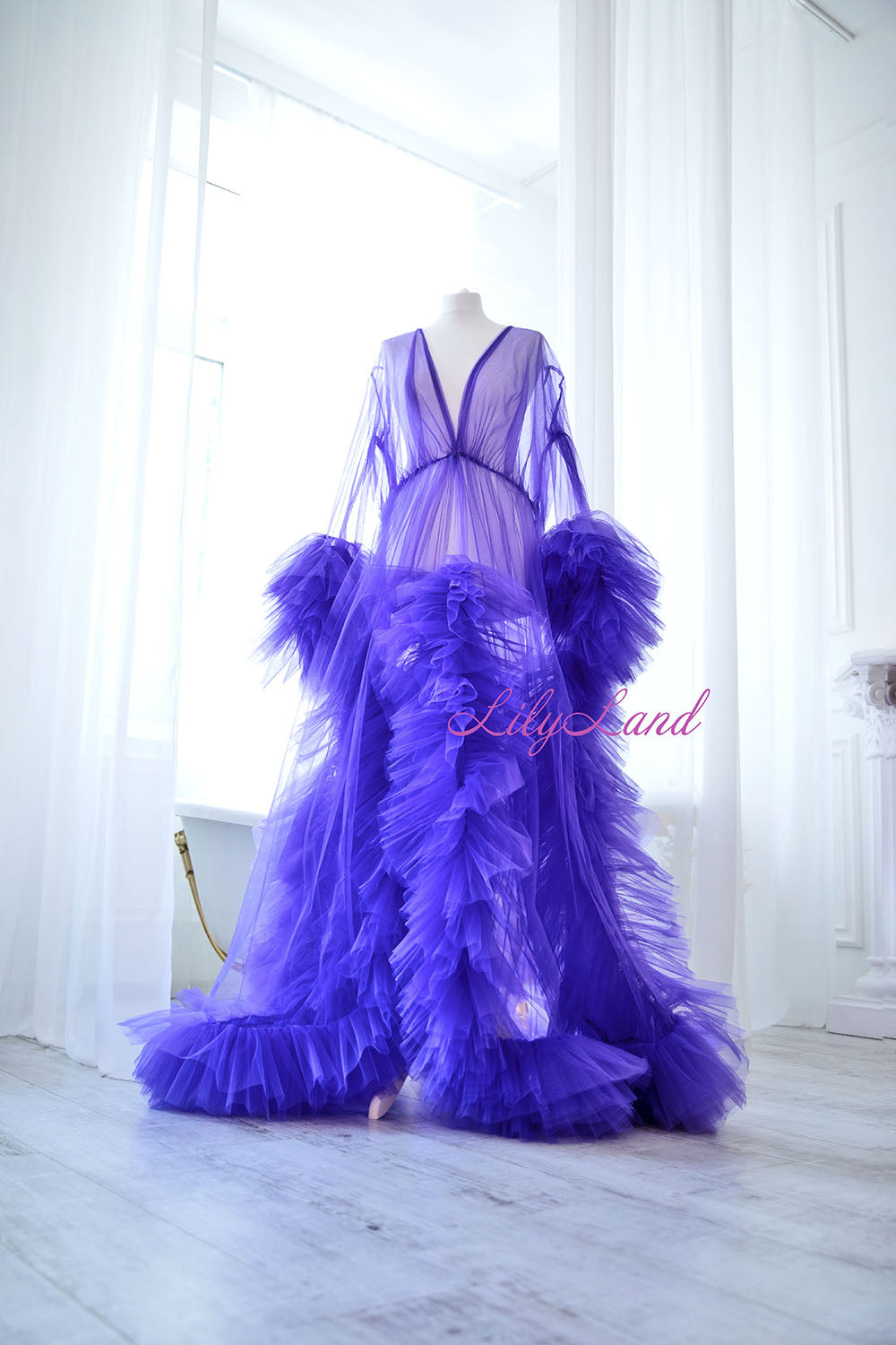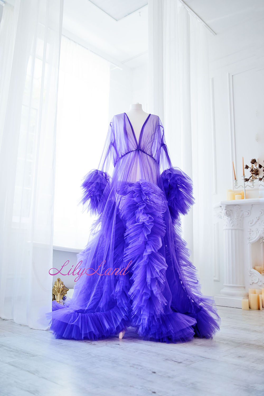 ¿Quieres lucir genial incluso durante el embarazo? Triunfarás al 100% con nuestra elegante bata premamá. Está elaborado en color violeta. Esta bata de maternidad hecha a mano, con su diseño excepcionalmente original y moderno elaborado con tul de alta calidad, es la elección perfecta para sesiones de fotos, baby showers, sesiones de fotografía u otras ocasiones especiales. La bata se puede realizar en varios colores y tamaños, teniendo en cuenta todos los deseos del comprador.