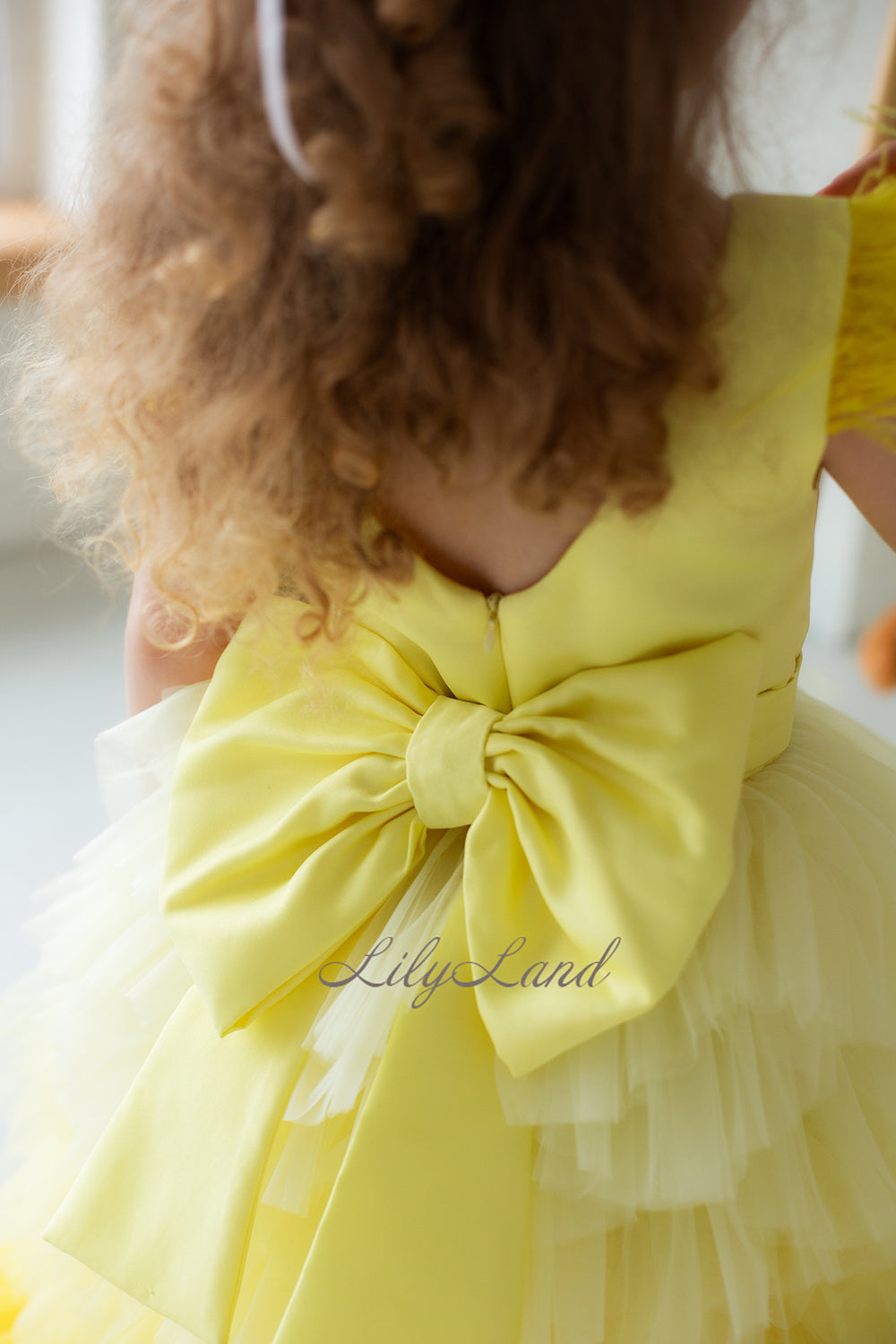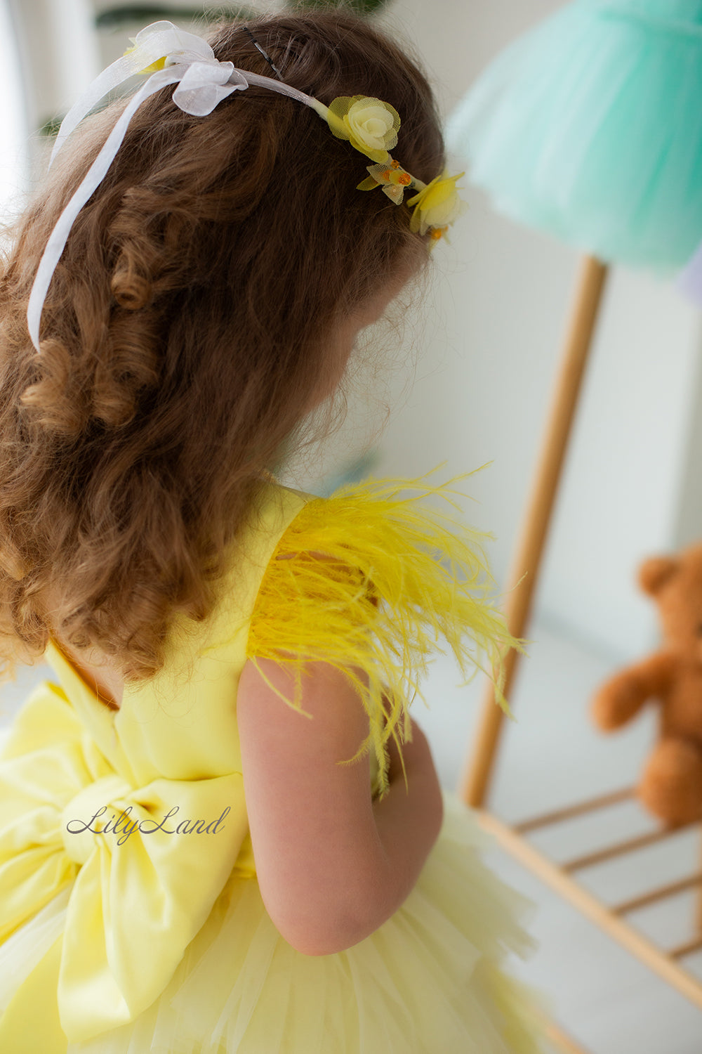 Ursula Girl Dress with Feather Sleeves In Yellow Ombre