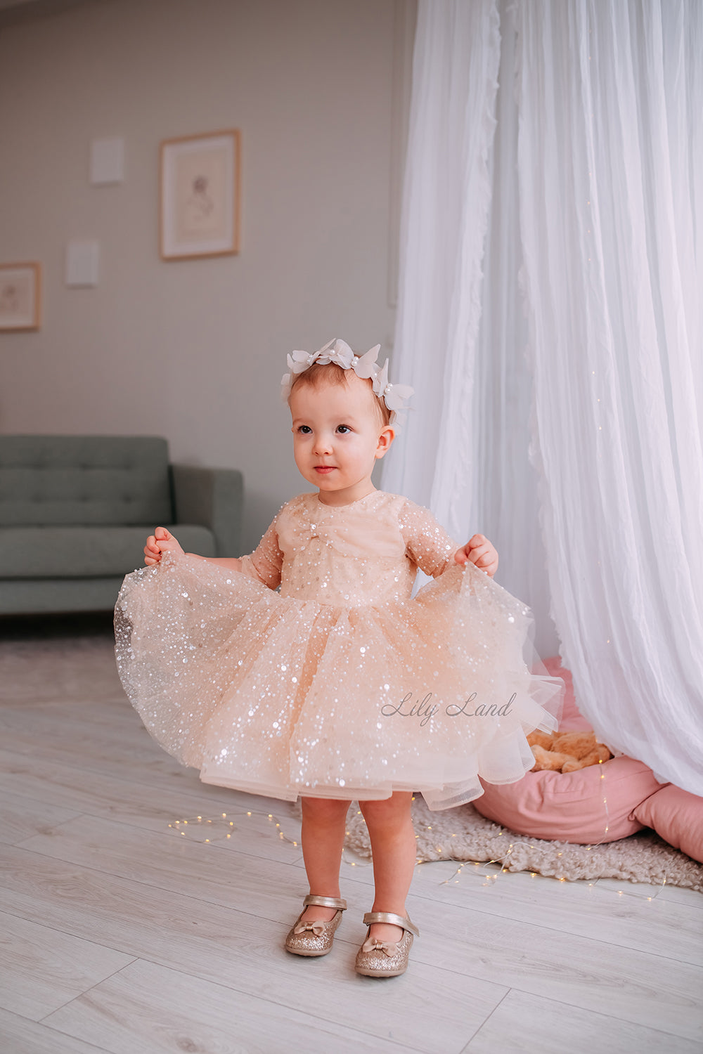 Absolutely dazzling, the Carolina dress in beige is a splendid choice for various celebrations – Christmas, birthdays, weddings, parties, photography sessions, Valentine's Day, dances, evenings, flower girl or junior bridesmaid appearances, prom gown events, festivals, dress-up adventures, and fairy princess-themed occasions or any other special event where you want your little one to radiate like a true princess. With its elegant design and whimsical details, this dress guarantees that your little one will feel like the belle of the ball. So, don't wait! Order your Carolina dress today and let your little one sparkle and shine on her special day!