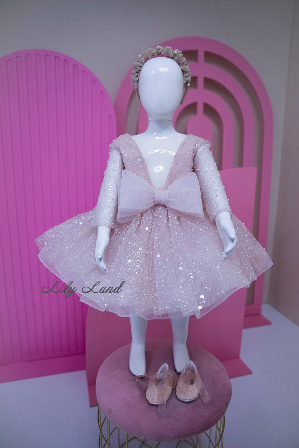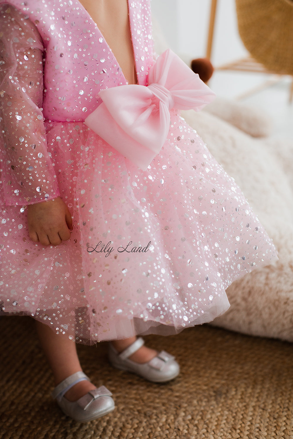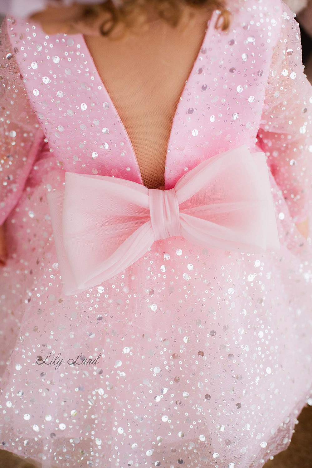 Celeste Girl Dress in Light Pink with a Mesh of Beads and Sequins