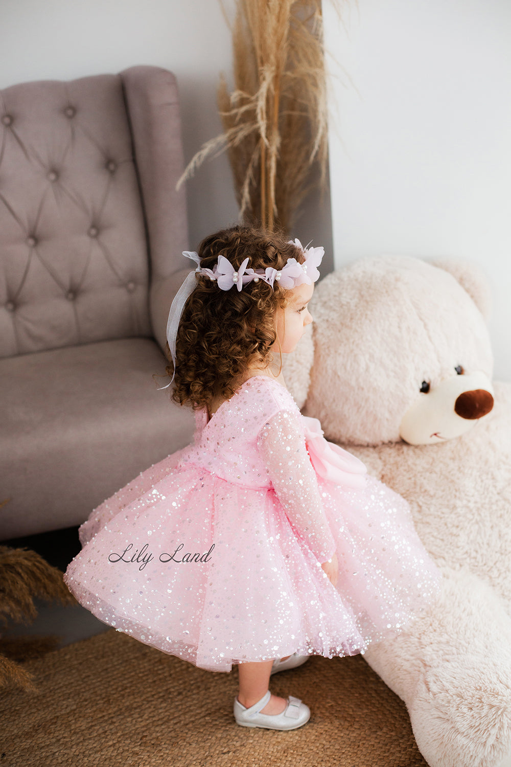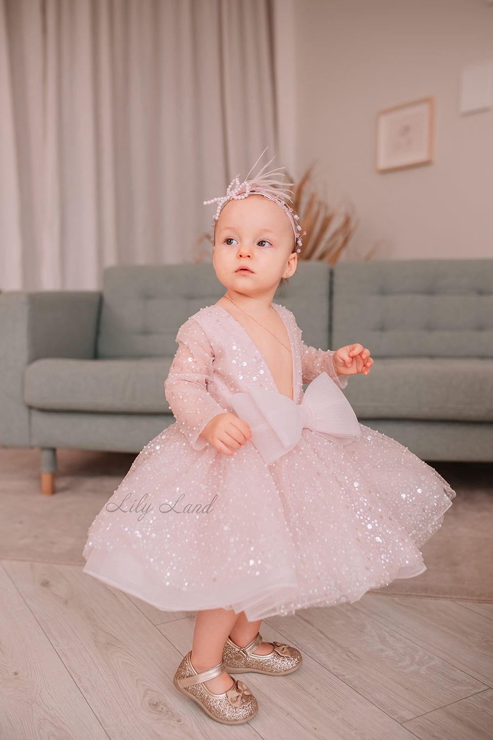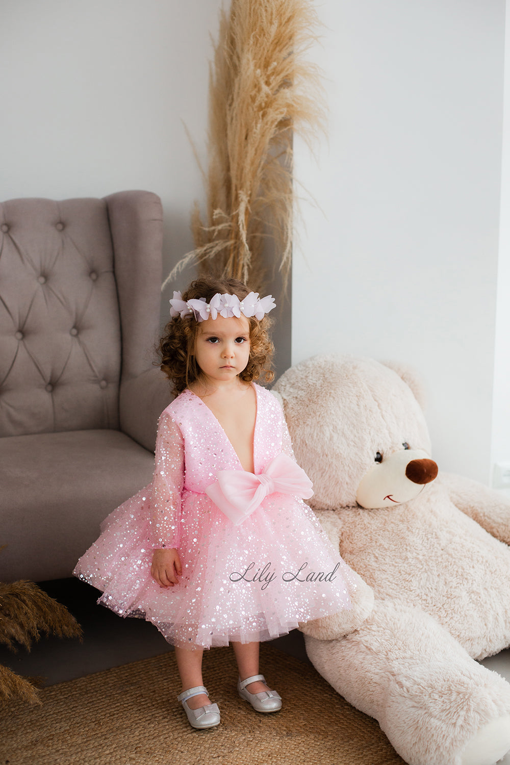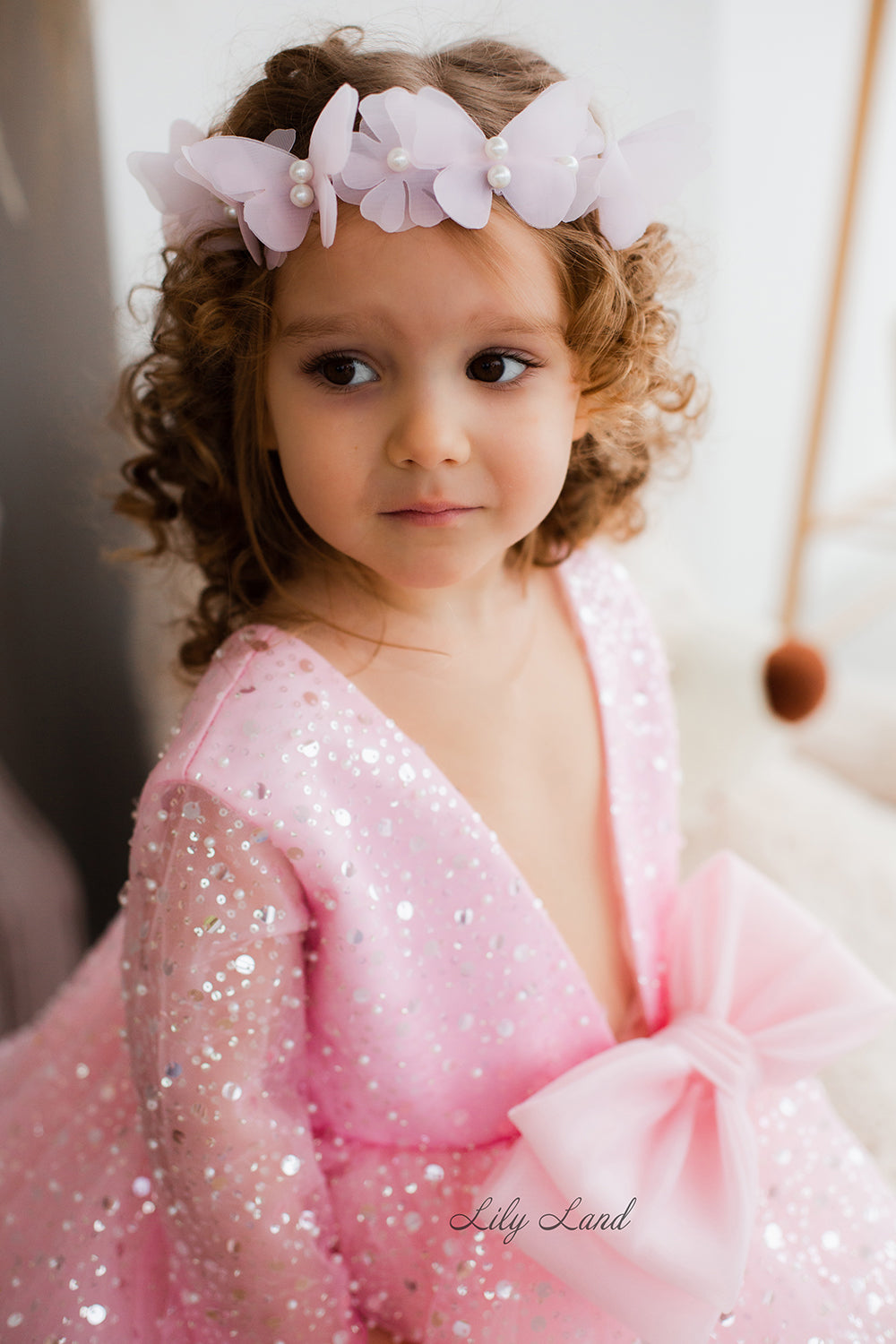 Celeste Girl Dress in Light Pink with a Mesh of Beads and Sequins