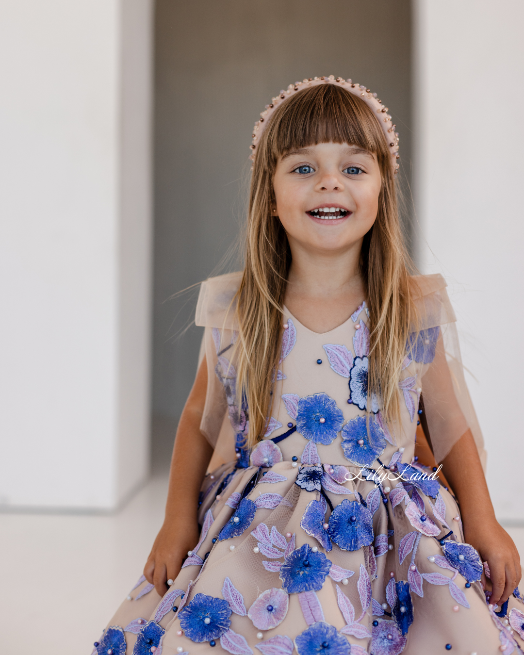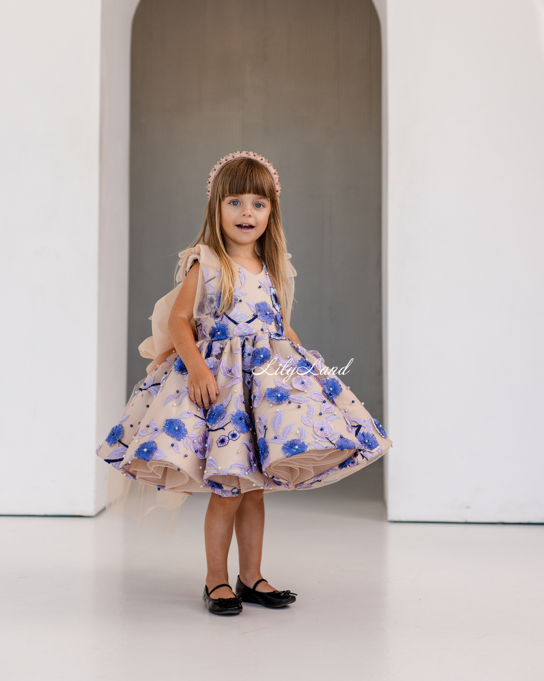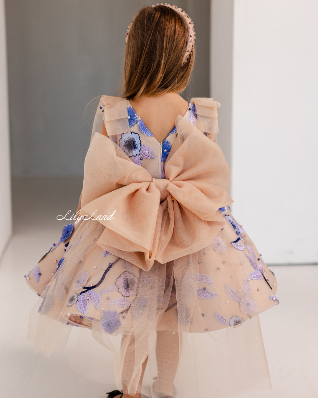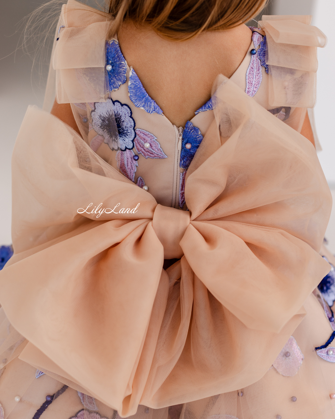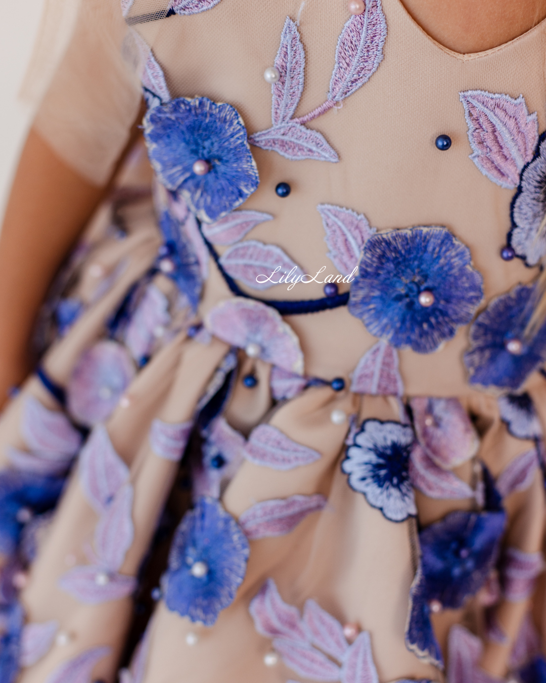 Our Malva dress in a beautiful beige hue – a stunning blend of elegance and charm, now adorned with delicate lace, floral embroidery, and pearls for an extra touch of sophistication. Perfect for a birthday celebration, a joyful gathering, a prom nights, a fairytale wedding, a photoshoot, a starring role as a flower girl, a festive Christmas soirée, Valentine's Day, or important milestones like first communion, junior bridesmaid duties, baptism, or christening, the Malva dress is the perfect choice to make her feel like royalty.