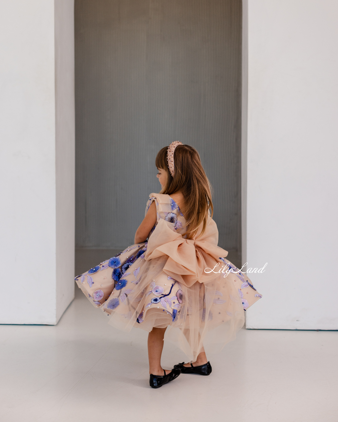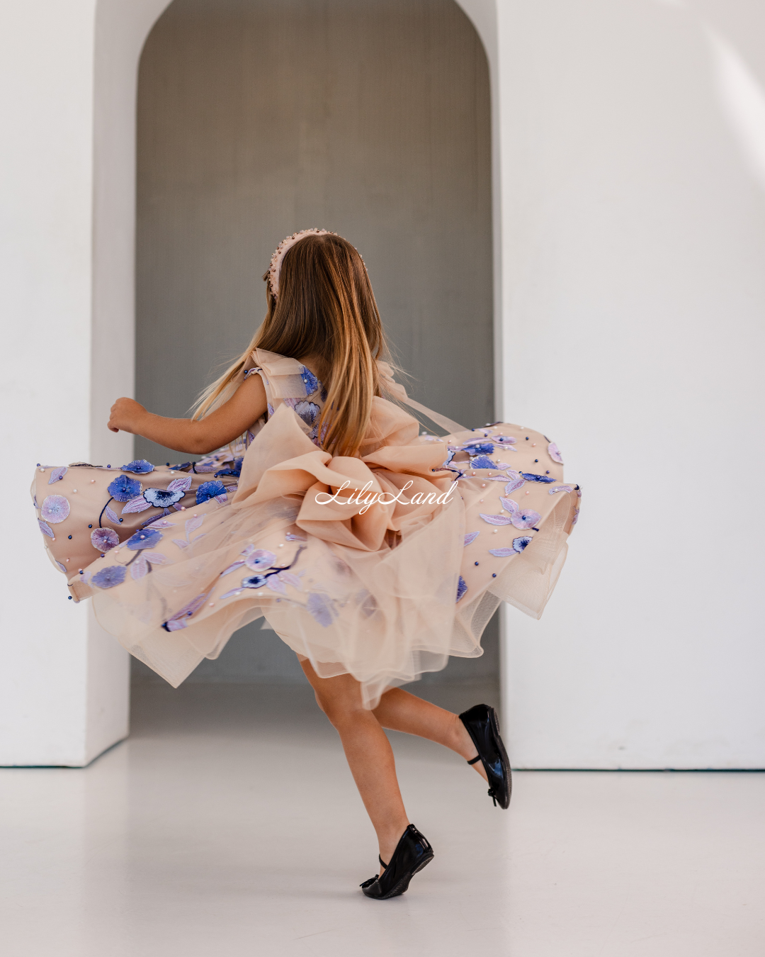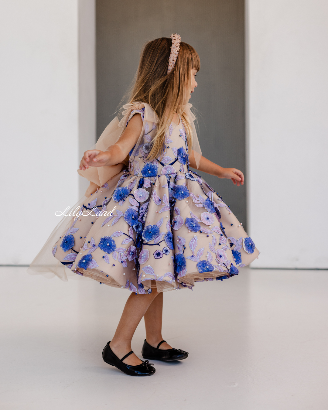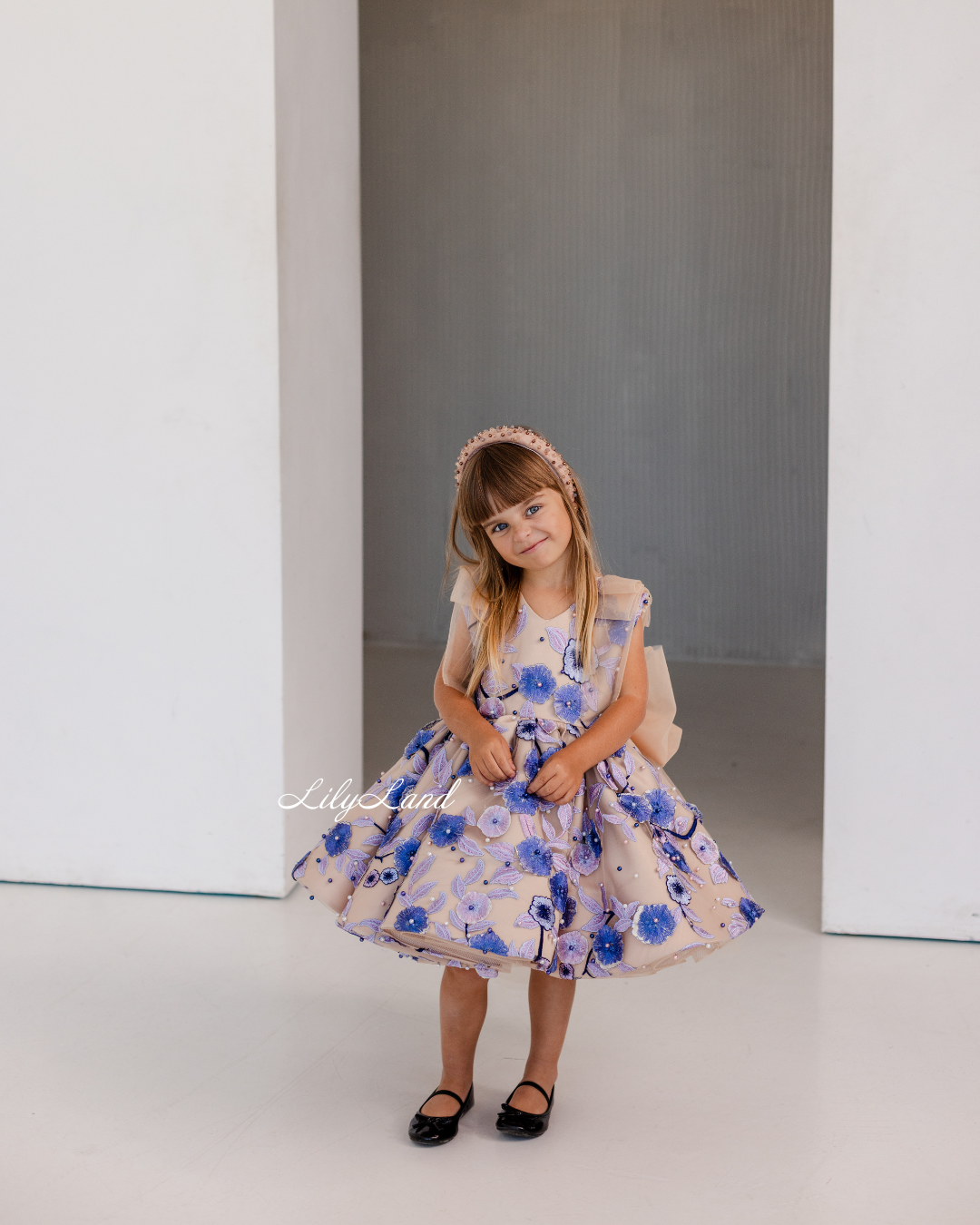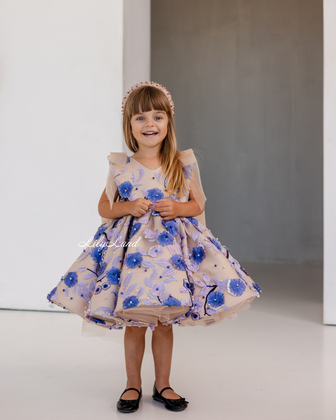 Our Malva dress in a beautiful beige hue – a stunning blend of elegance and charm, now adorned with delicate lace, floral embroidery, and pearls for an extra touch of sophistication. Perfect for a birthday celebration, a joyful gathering, a prom nights, a fairytale wedding, a photoshoot, a starring role as a flower girl, a festive Christmas soirée, Valentine's Day, or important milestones like first communion, junior bridesmaid duties, baptism, or christening, the Malva dress is the perfect choice to make her feel like royalty.