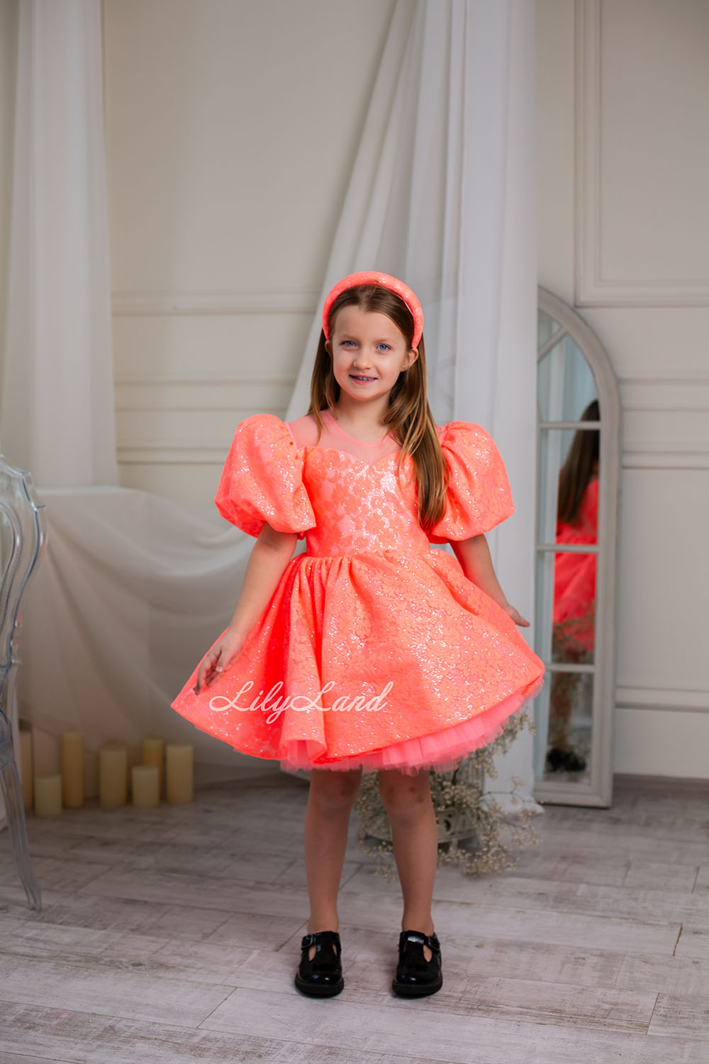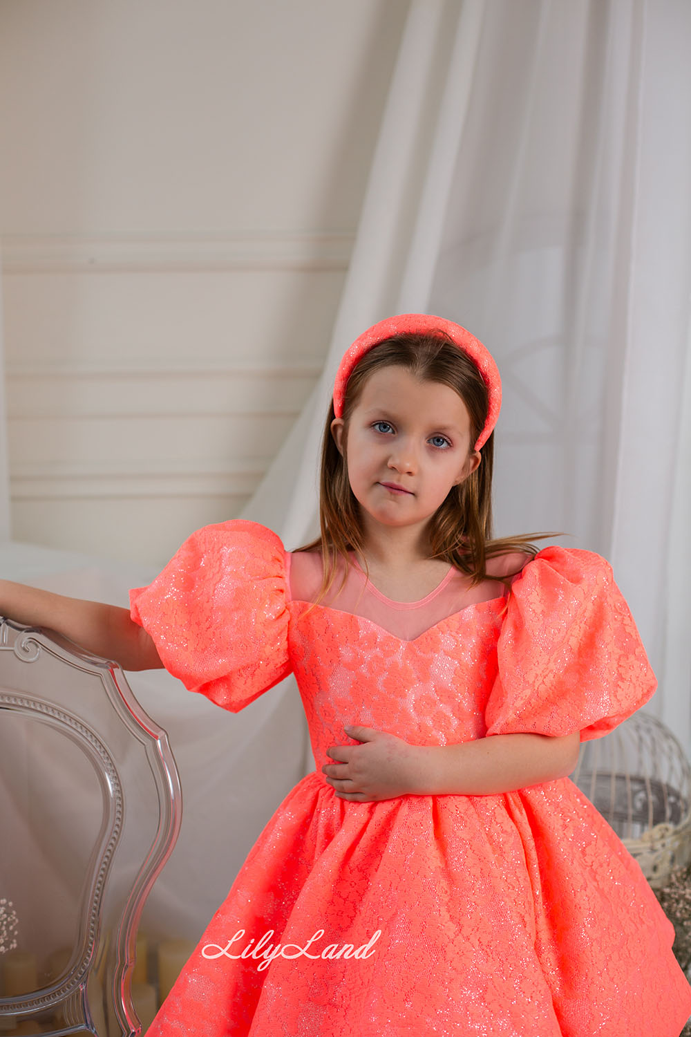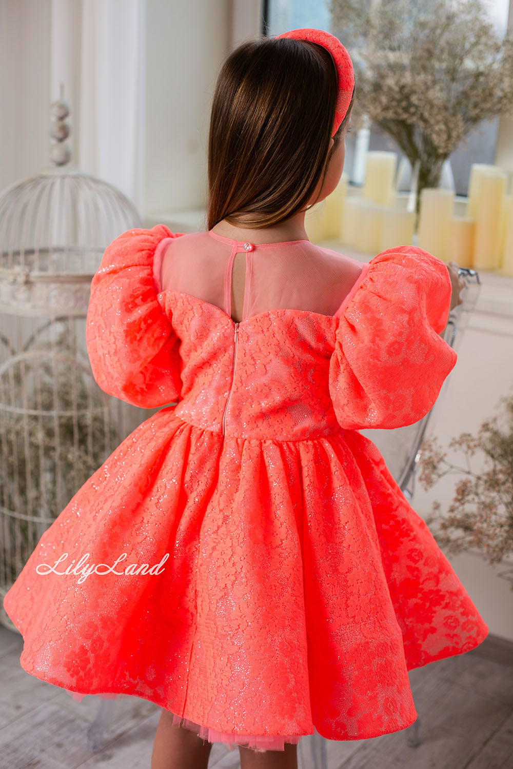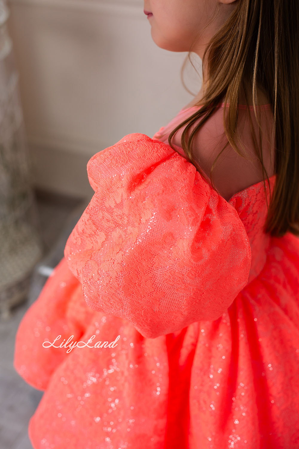 Nora Girl Dress with Glitter and Lace in Neon Orange