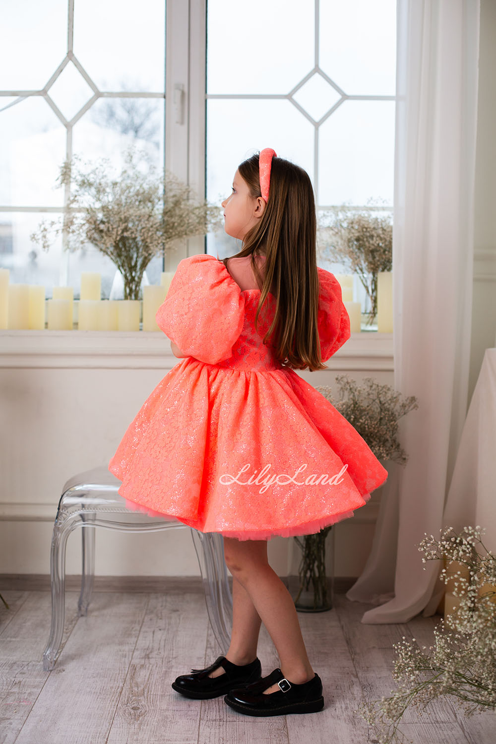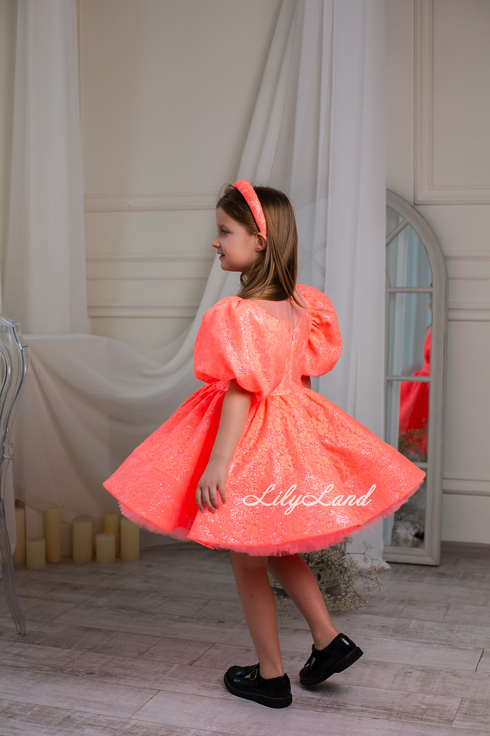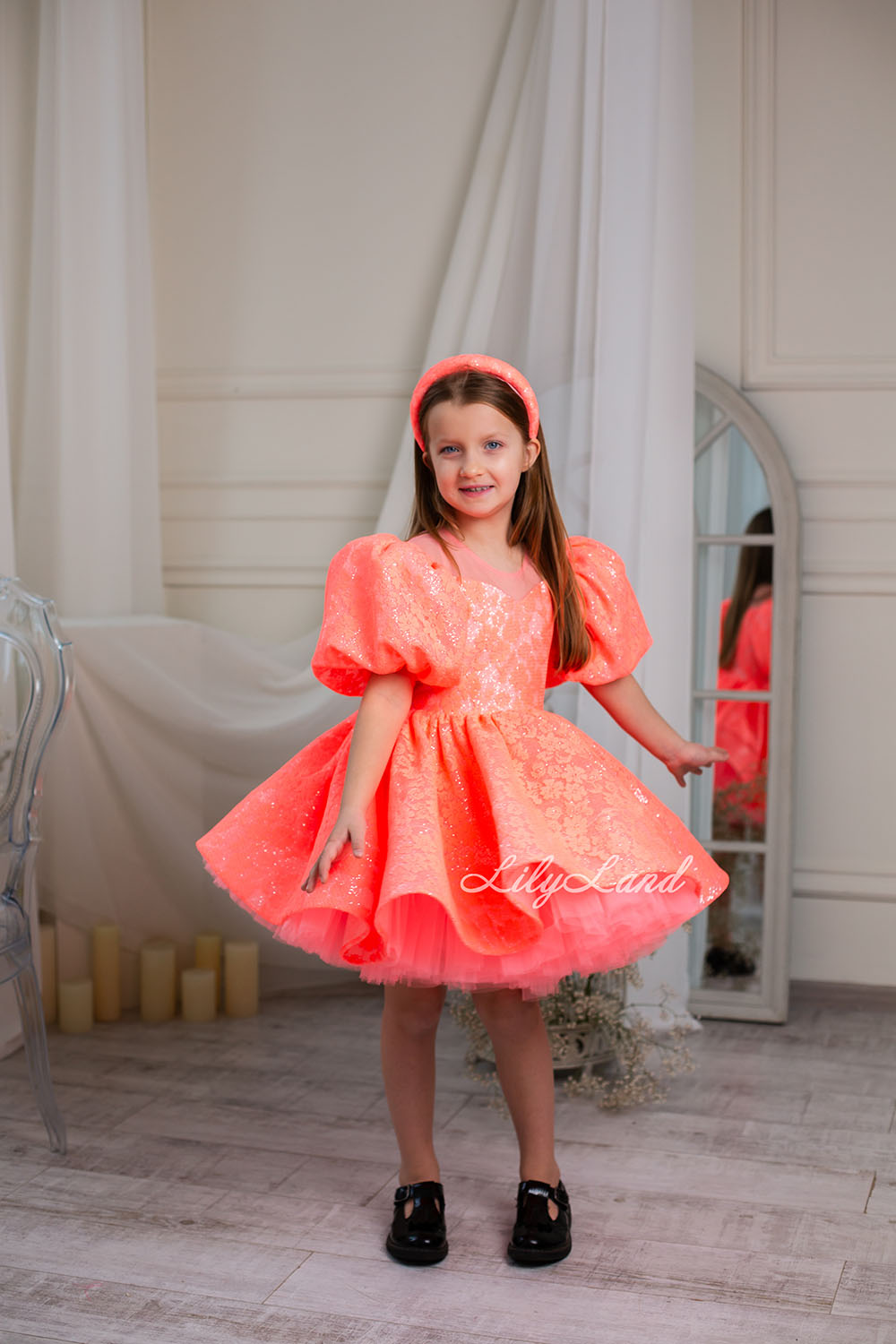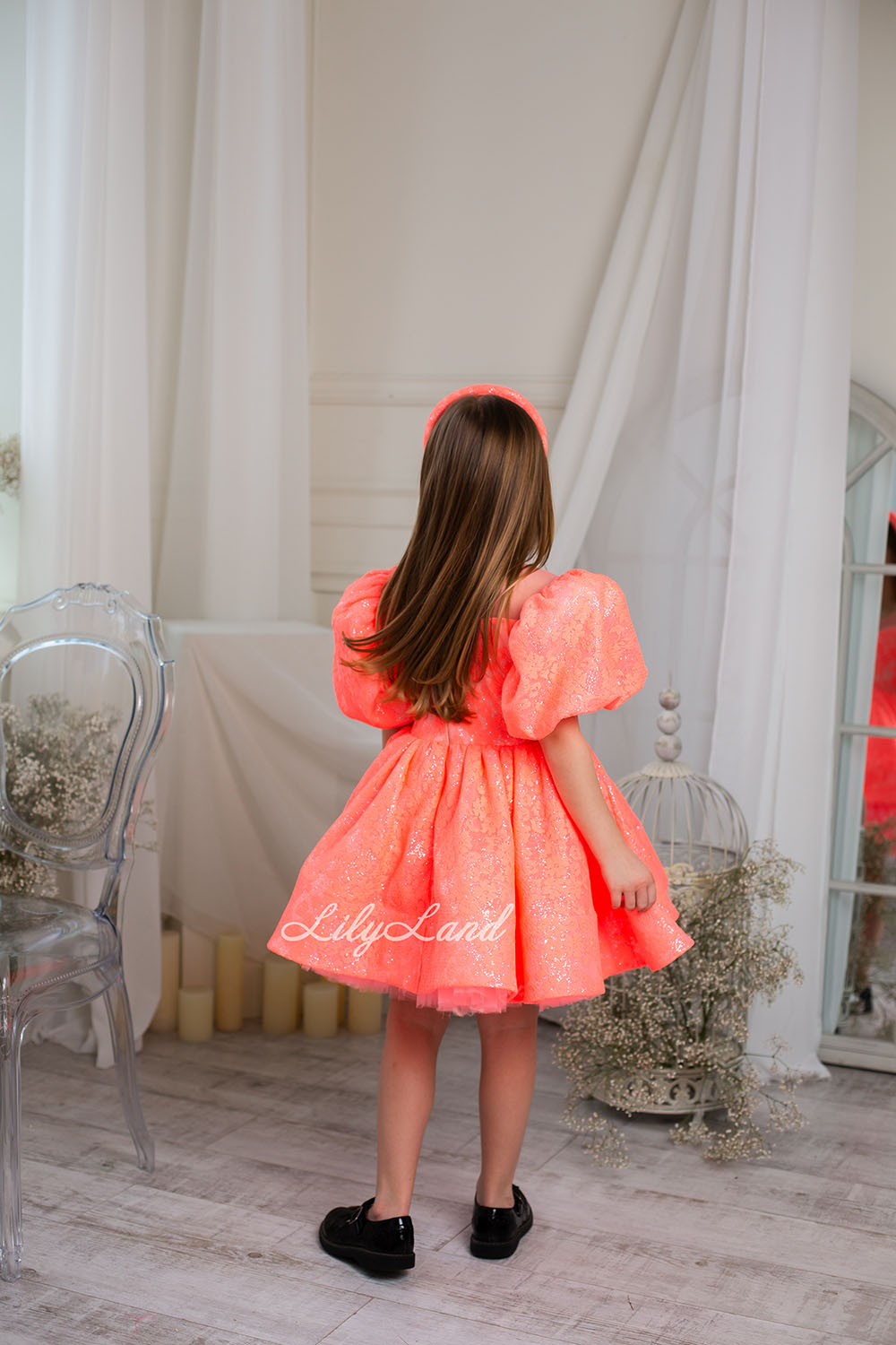 Nora Girl Dress with Glitter and Lace in Neon Orange