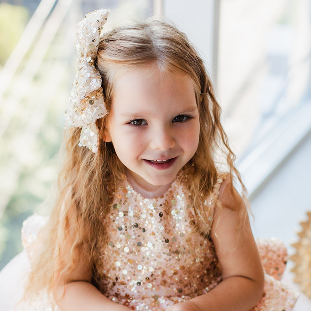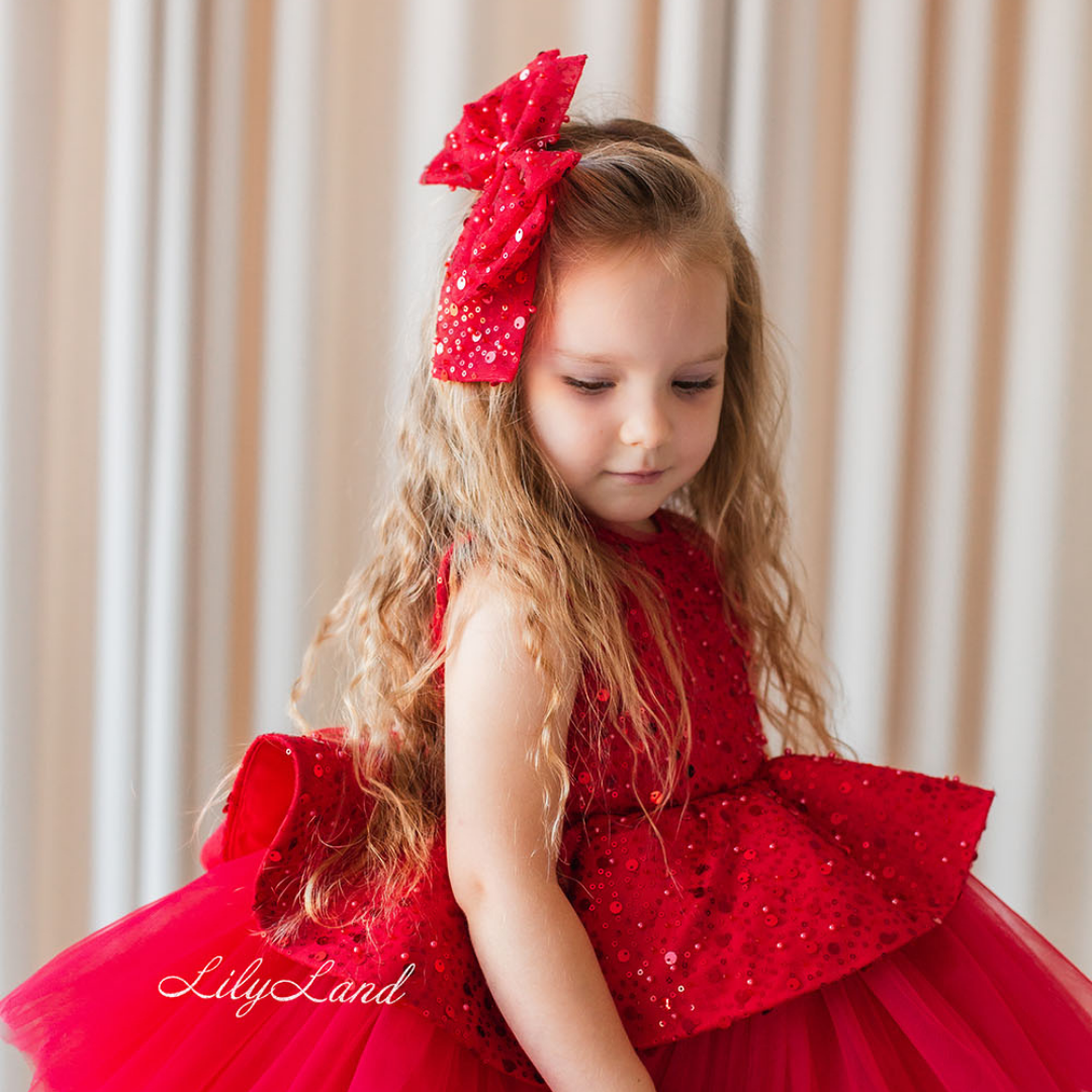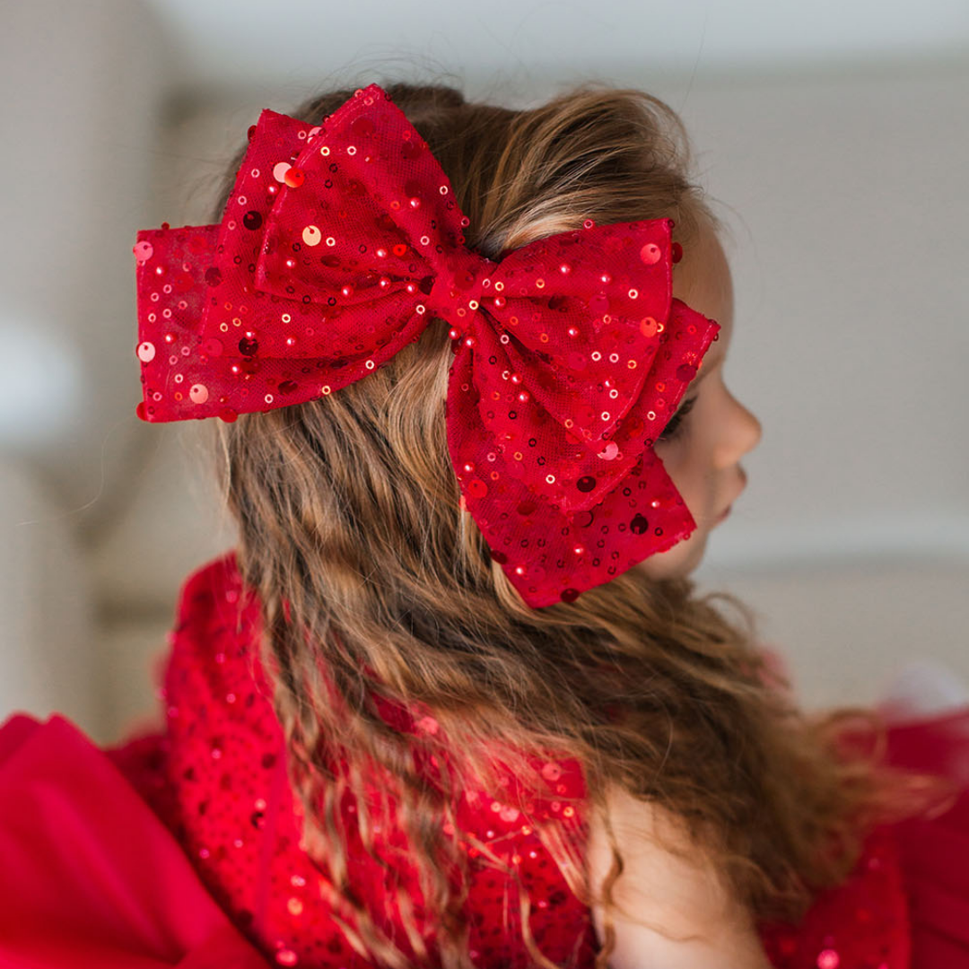 Czerwona cekinowa kokardka do włosów dla dziewczynki