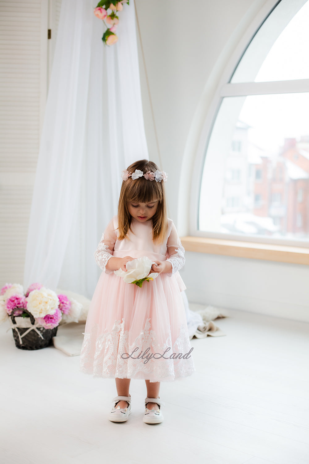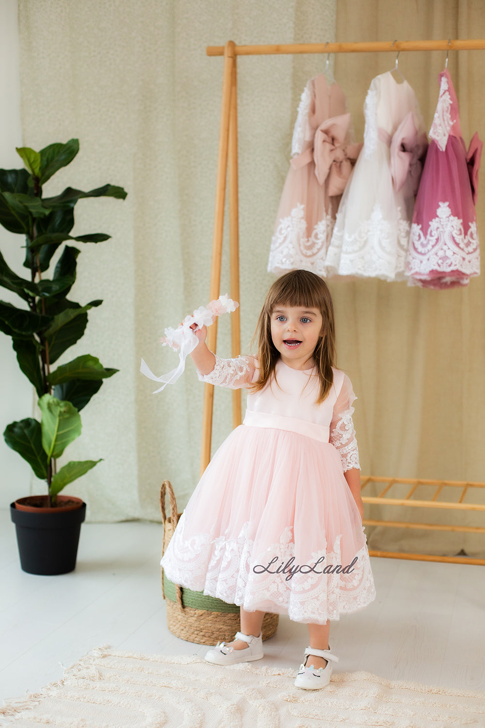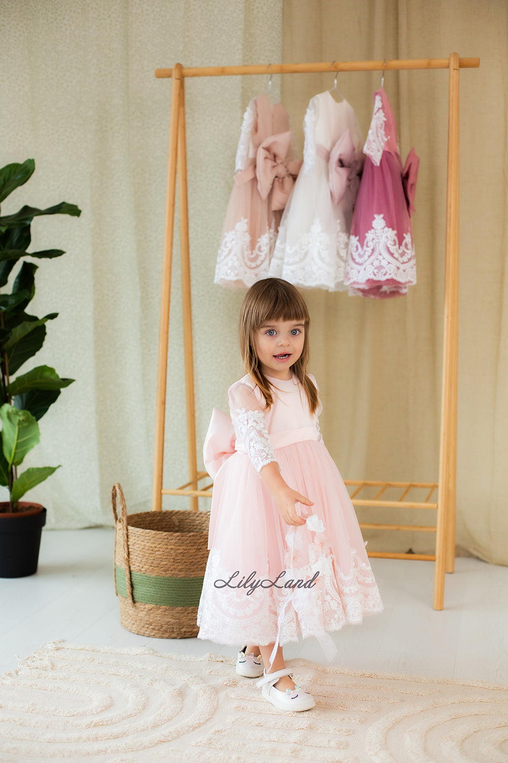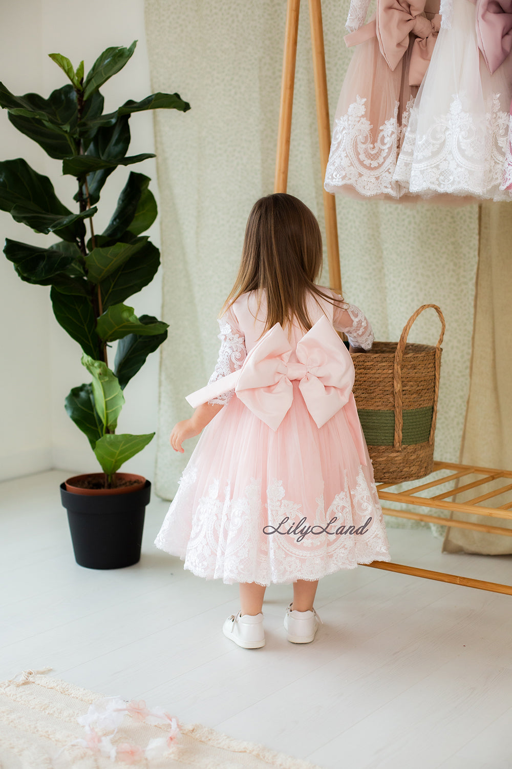 Amelie Girl Dress In Pink with Long Lace Sleeves