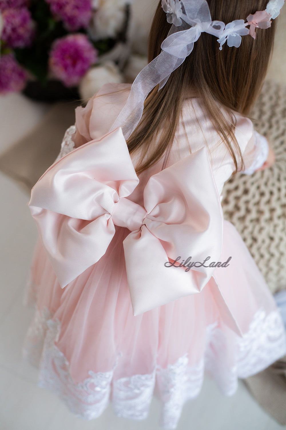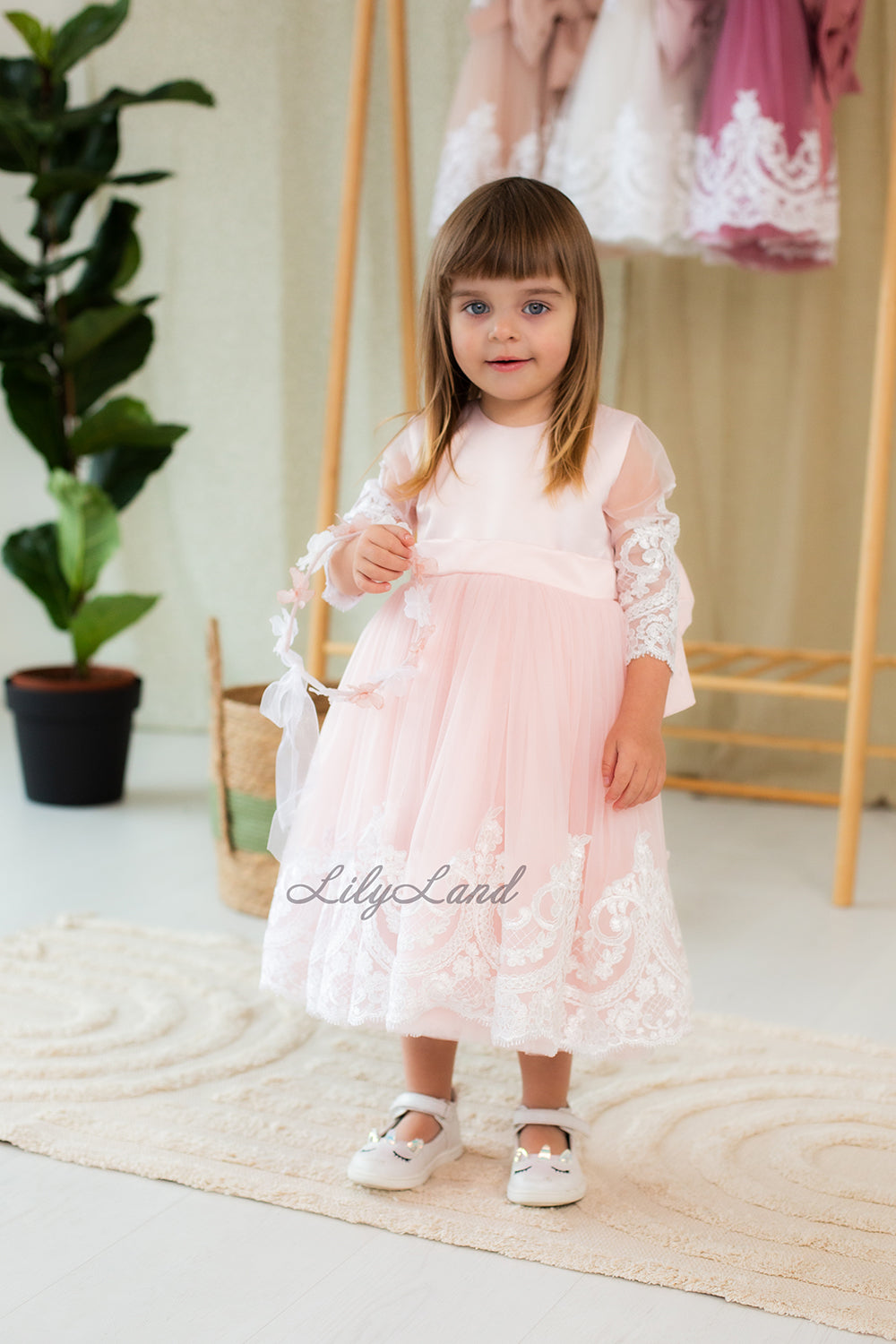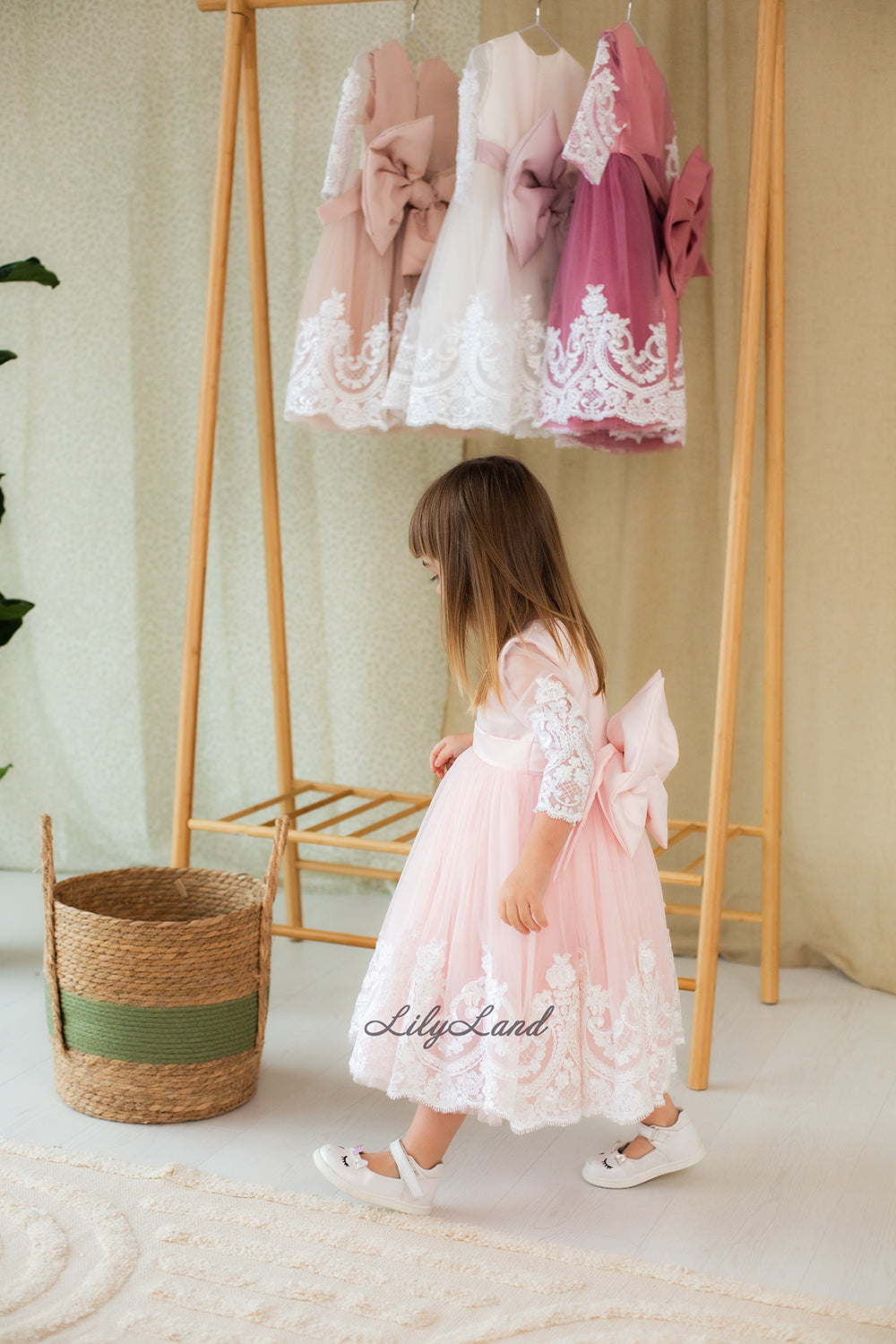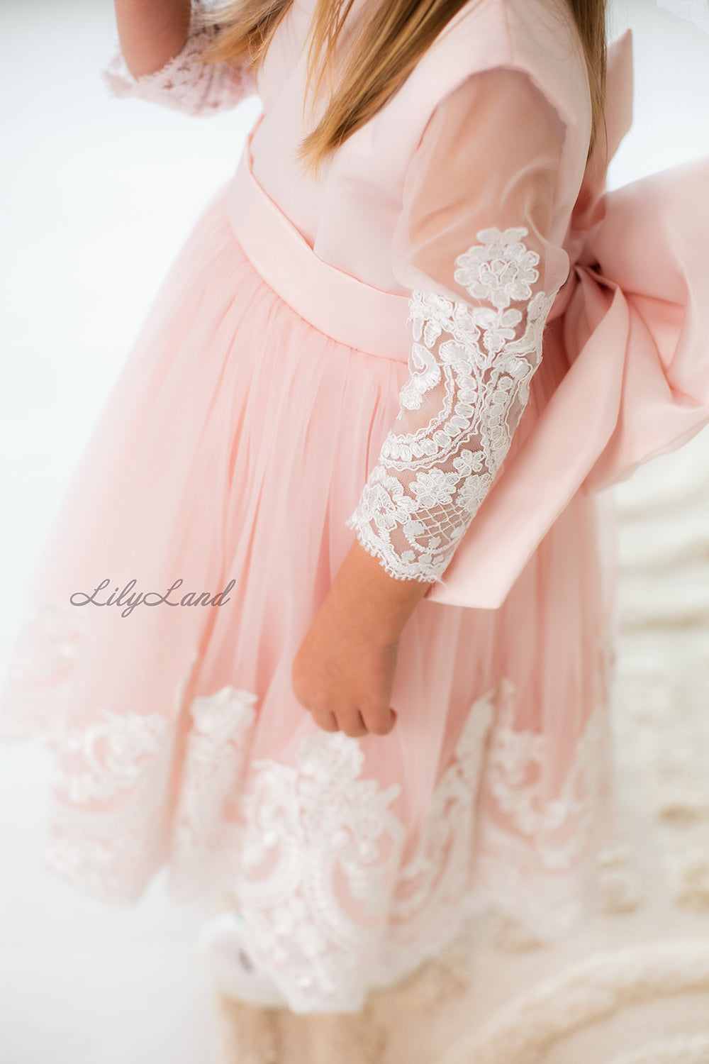 Amelie Girl Dress In Pink with Long Lace Sleeves