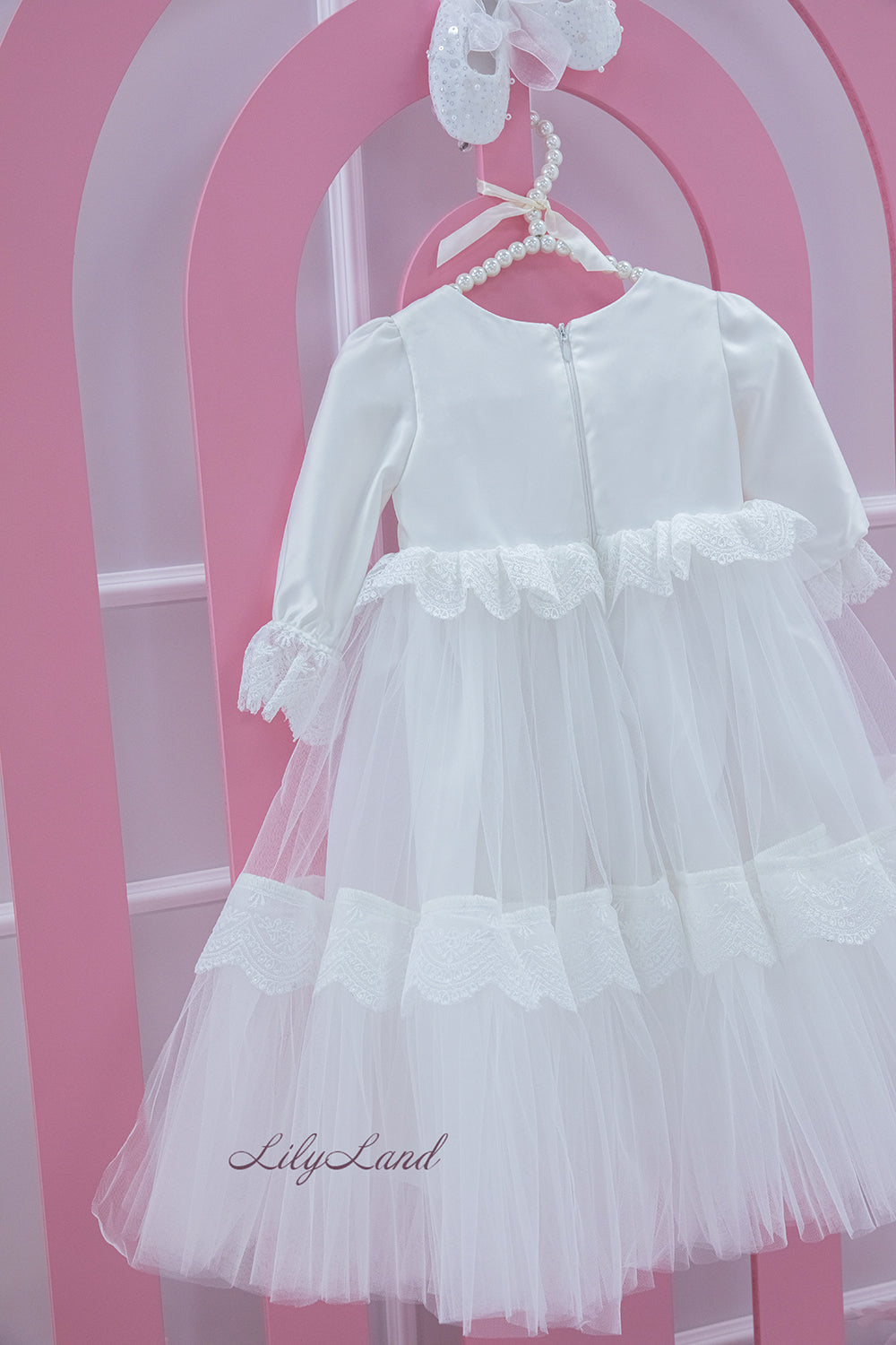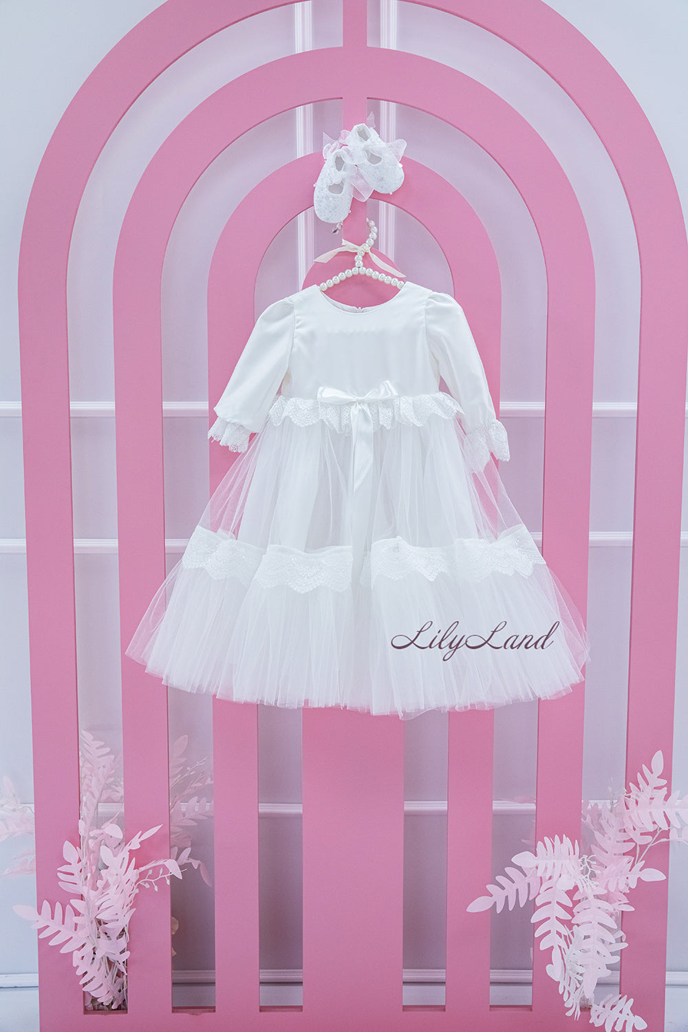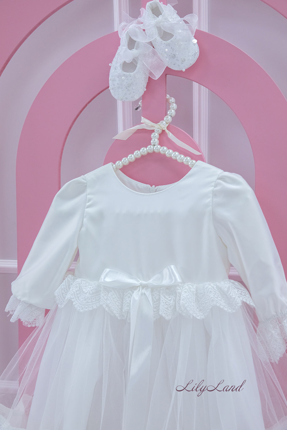 Baptism/Christening White Baby Girl Dress with Long Sleeves