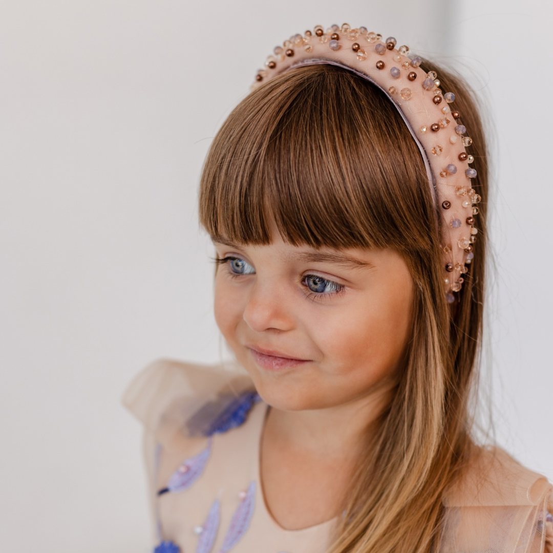 Are you looking for beautiful and trendy accessories to complete your outfit? A beige headband with beads and sequins is a great choice. The headband is handcrafted with love and attention to detail. The headband can be made in different colors, which are very well combined with any outfits of the girl, taking into account all the wishes of the buyer.