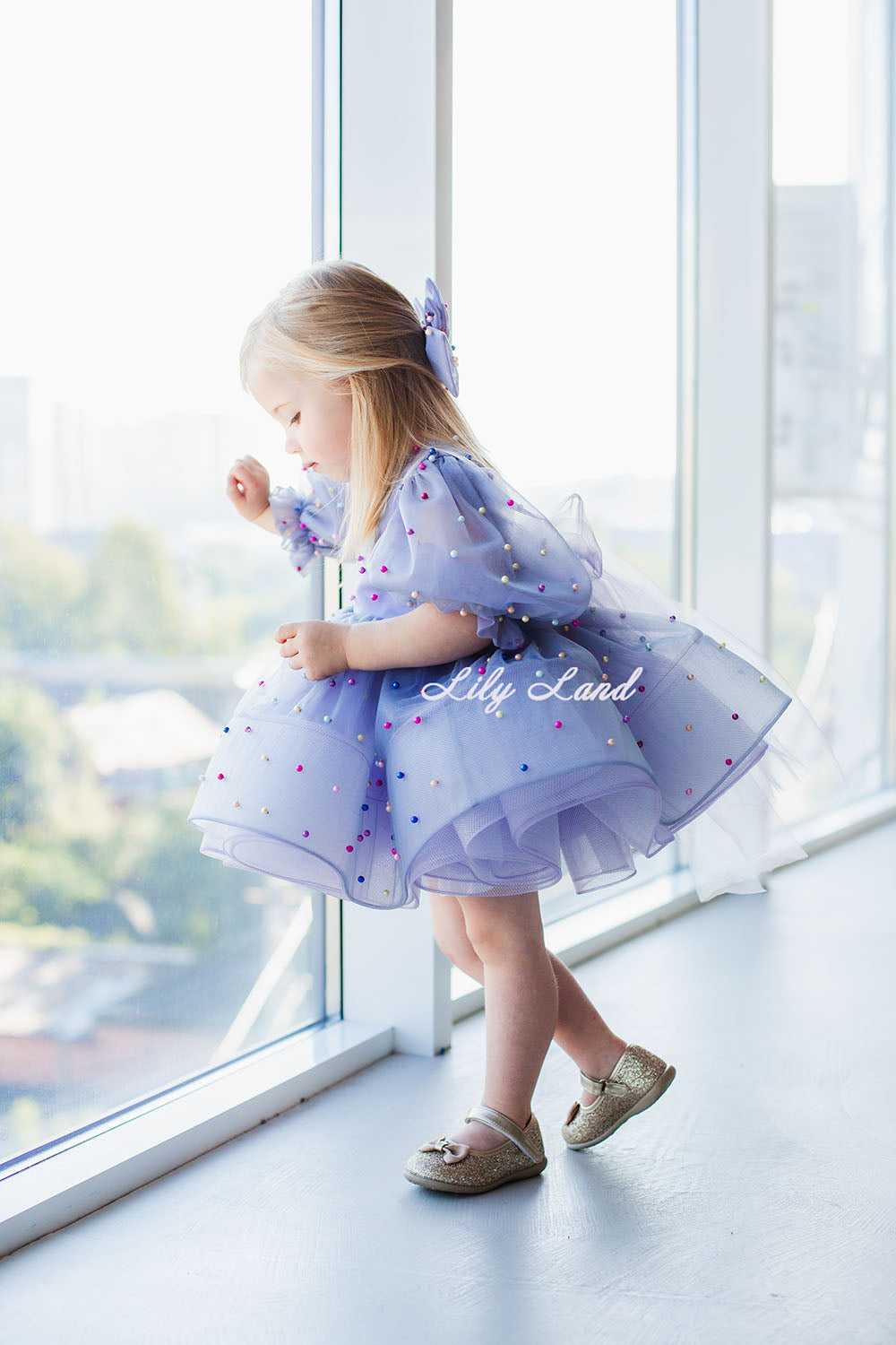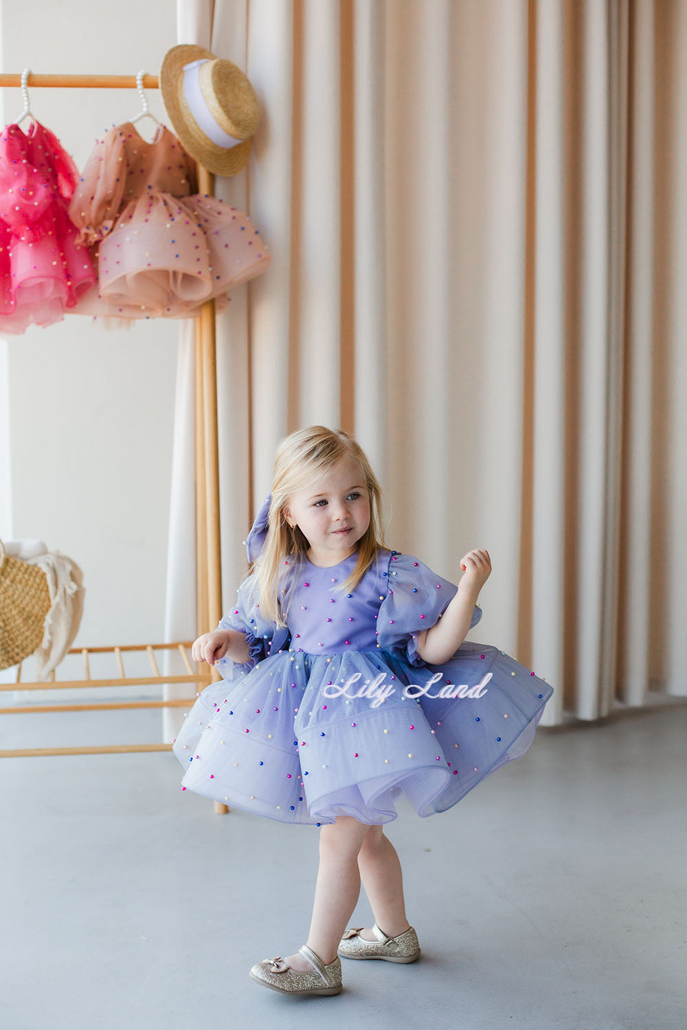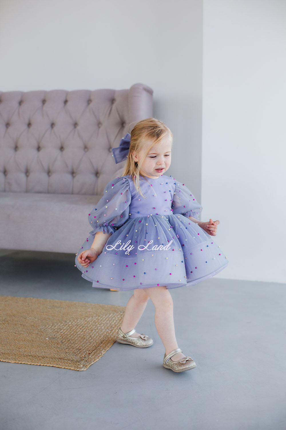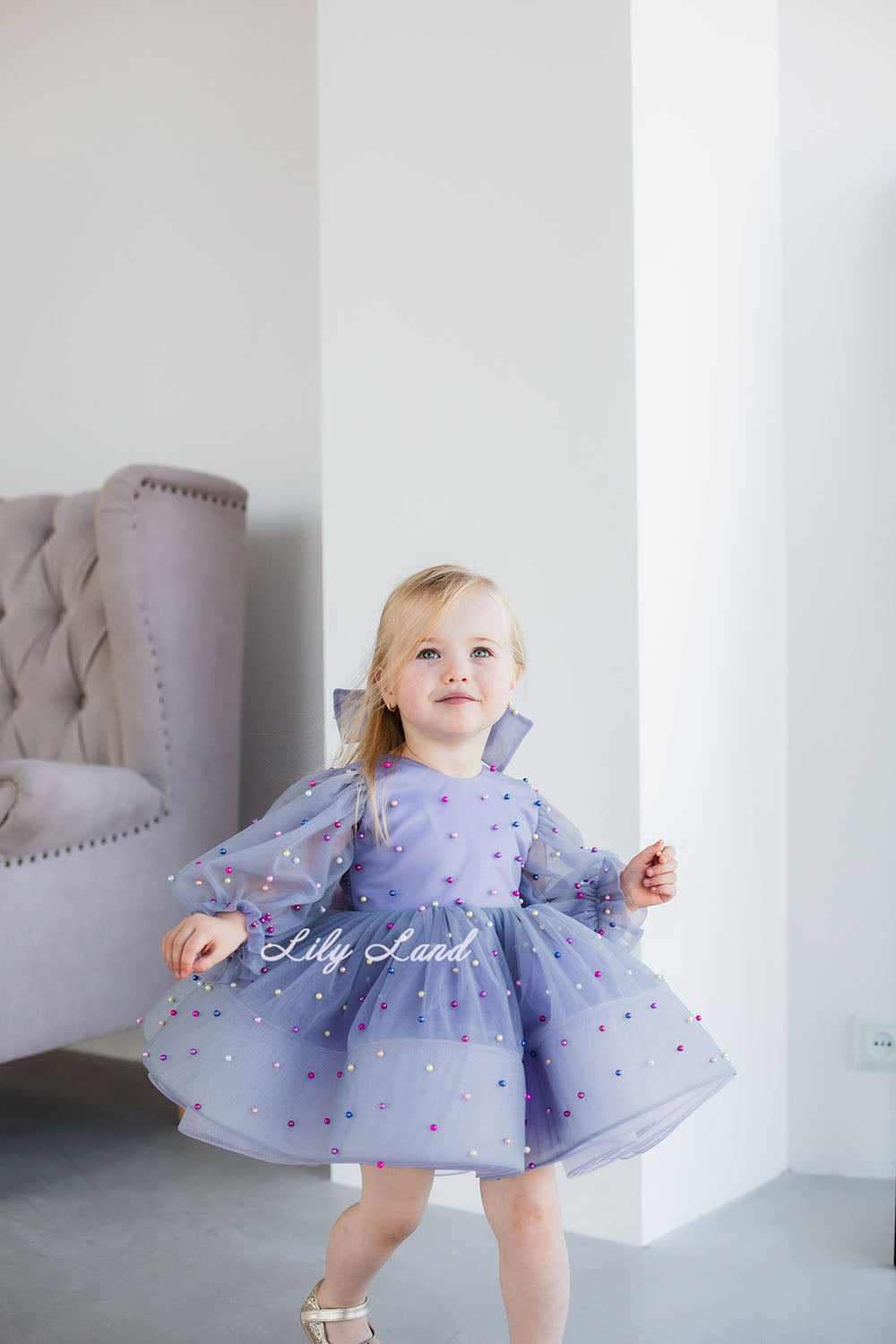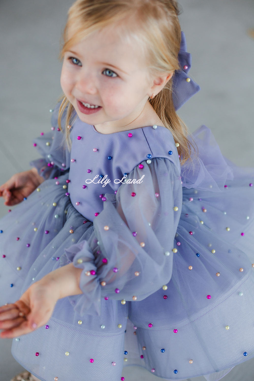 Busie Tutu Girl Dress in Lavender Grey Color with Beads