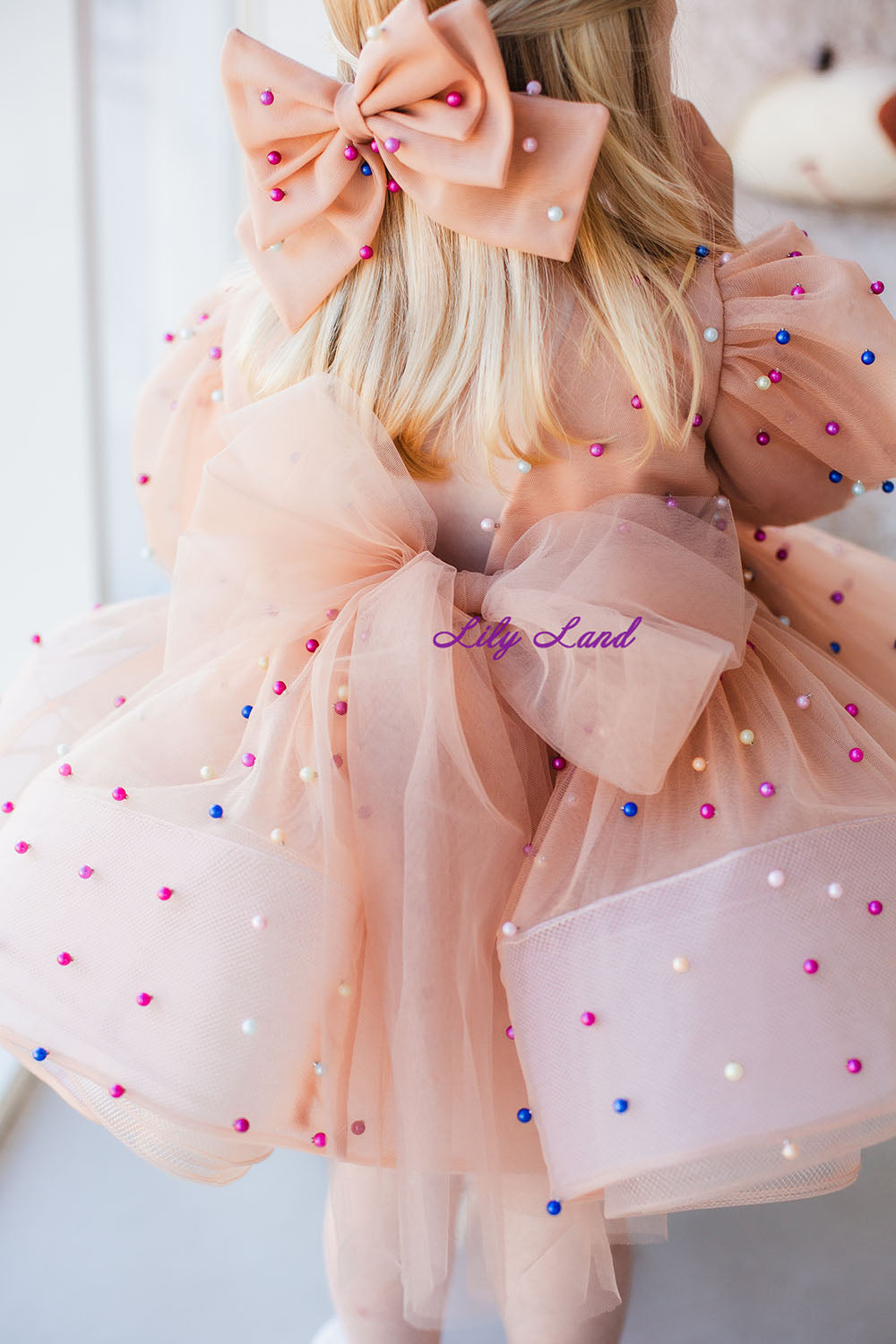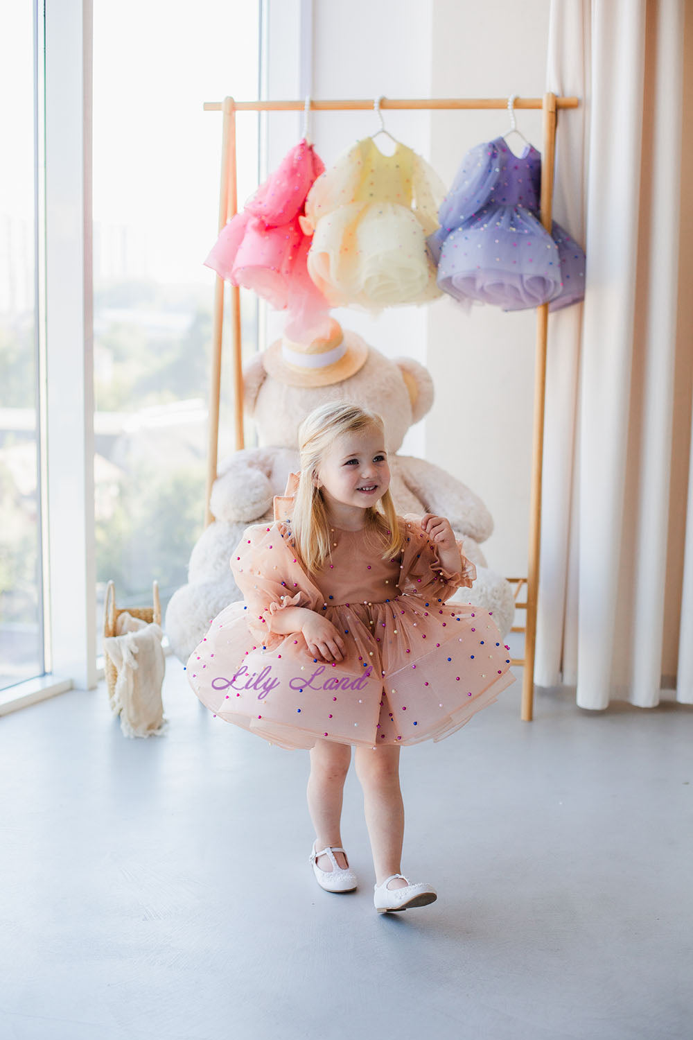 Introducing our cute Busie dress for girls, a masterpiece of unique and enchanting design that leaves you speechless. This stylish tutu dress with beads is the essential choice for any special occasion, whether it's a birthday party, a role as a wedding flower girl or junior bridesmaid, a festive Christmas gathering, an elegant prom night, a Valentine's Day celebration, photoshoot, a captivating dance performance, a graceful evening event, or a playful dress-up festival. Your little one is sure to shine in dress Busie!
