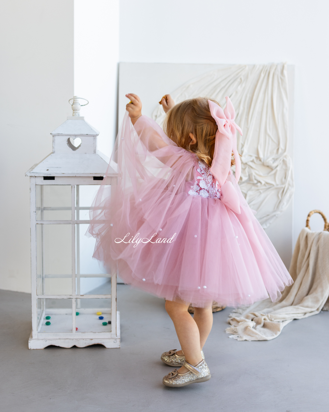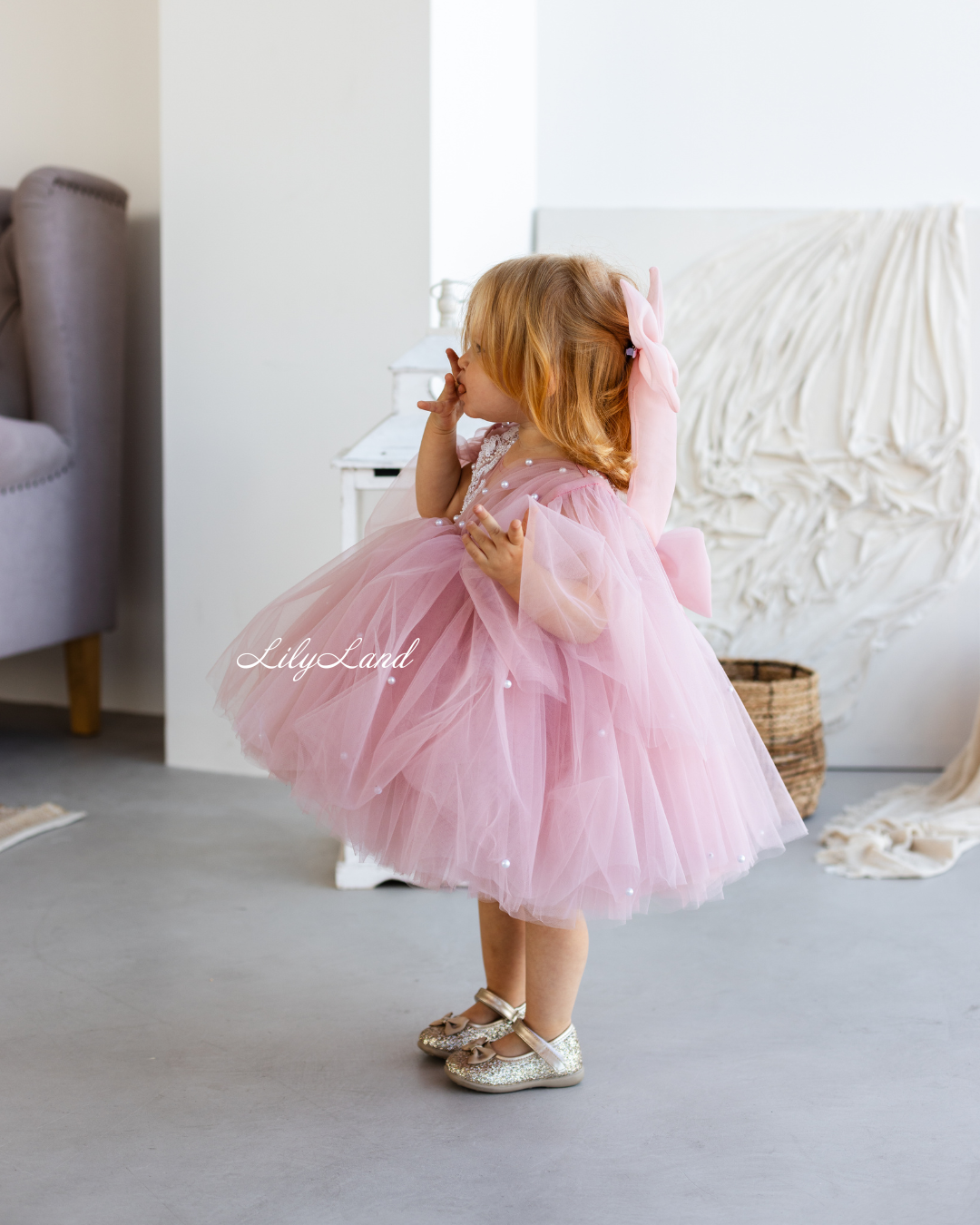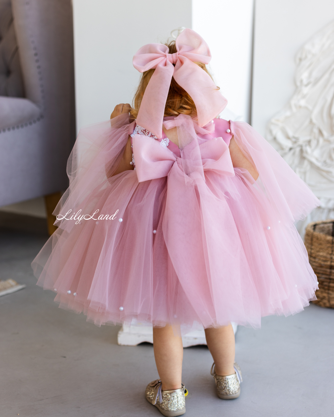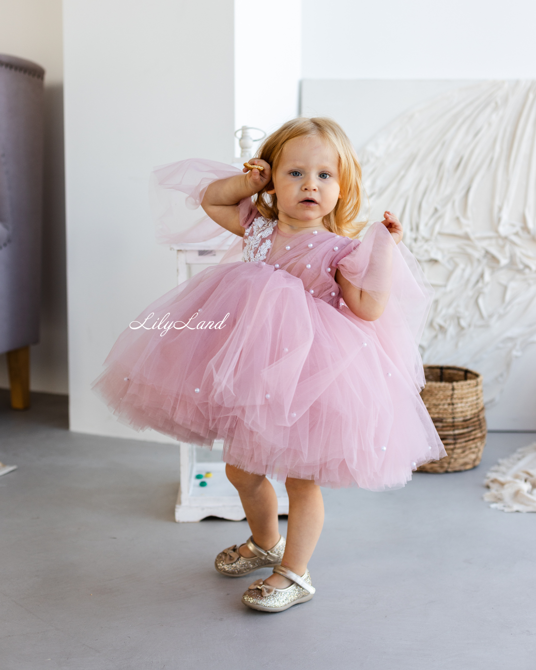 Introducing our Chantal dress from the NEW 2024 collection, now available in a beautiful pastel dusty rose color! This enchanting dress features a top adorned with delicate flowers, pearls, beads, and sequins, adding a touch of glamour and elegance. Made with tulle, this versatile dress is perfect for a variety of celebrations, including Christmas, birthday parties, weddings, flower girl or junior bridesmaid roles, proms, photoshoots, Valentine's Day, dances, elegant evenings, and more. Customize it in different colors and sizes to suit your preferences, and let your little one shine in this exquisite attire.