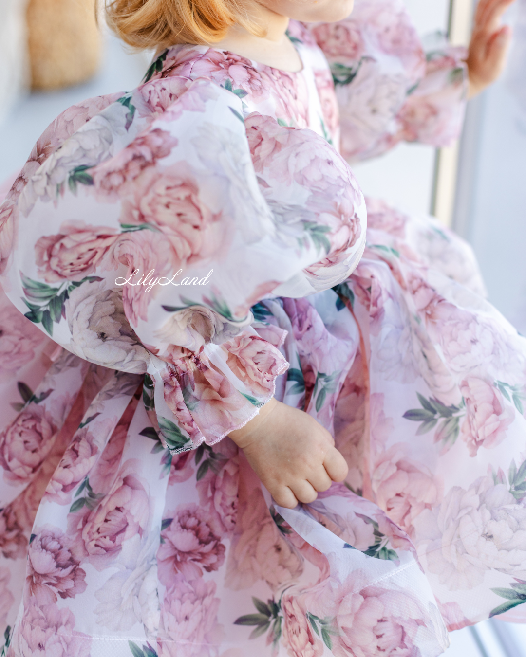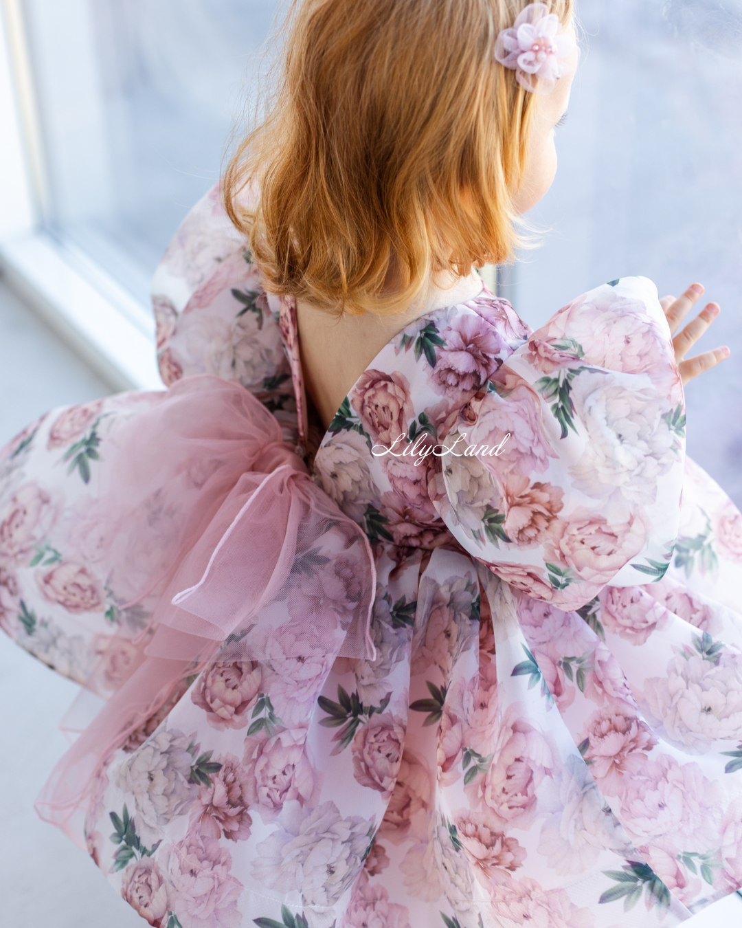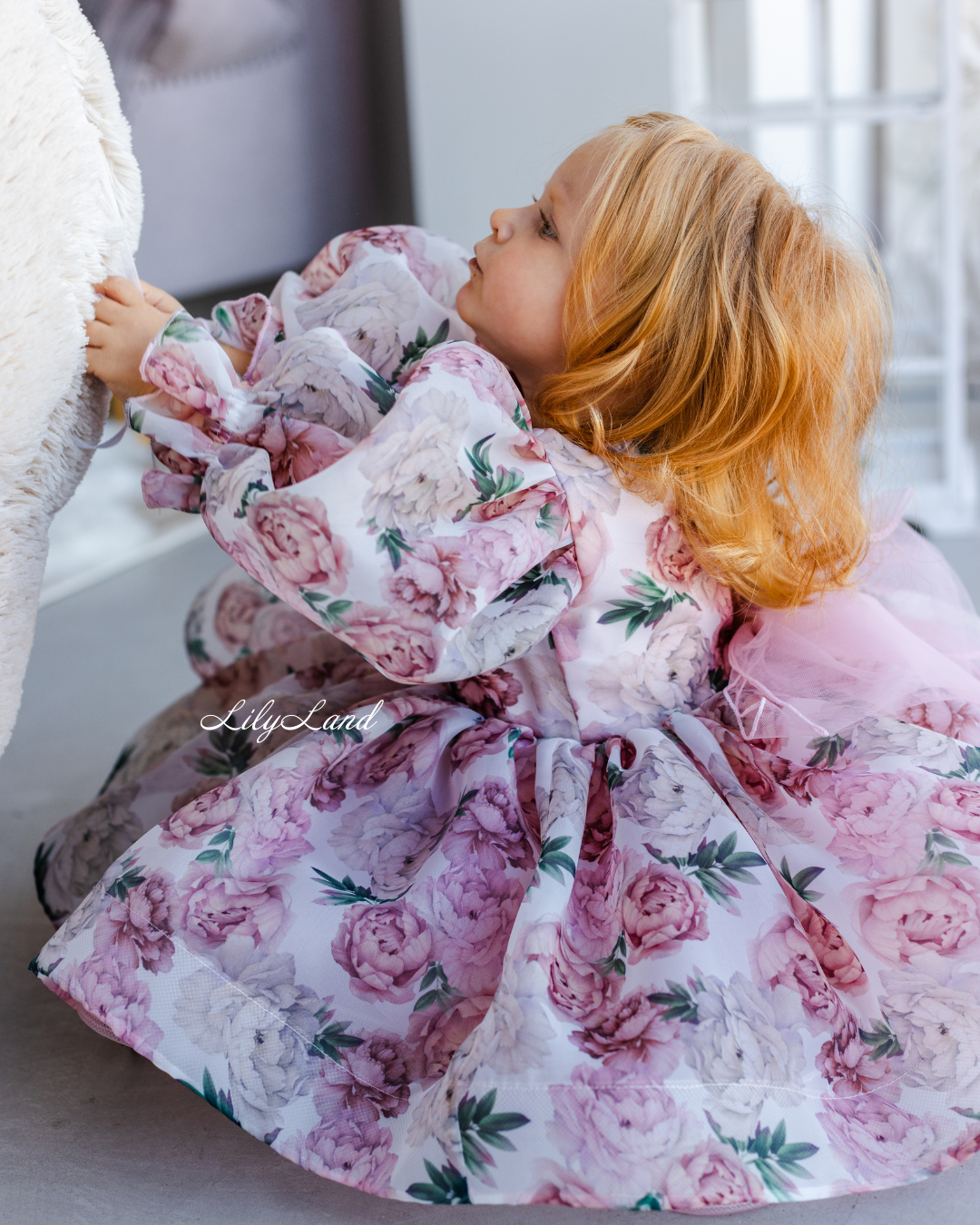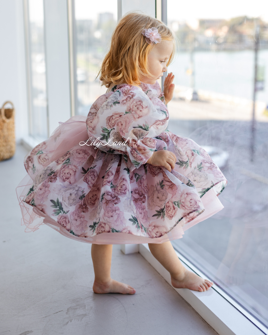 Cheryl Puffy Girl Dress in Floral Pattern with Long Sleeves