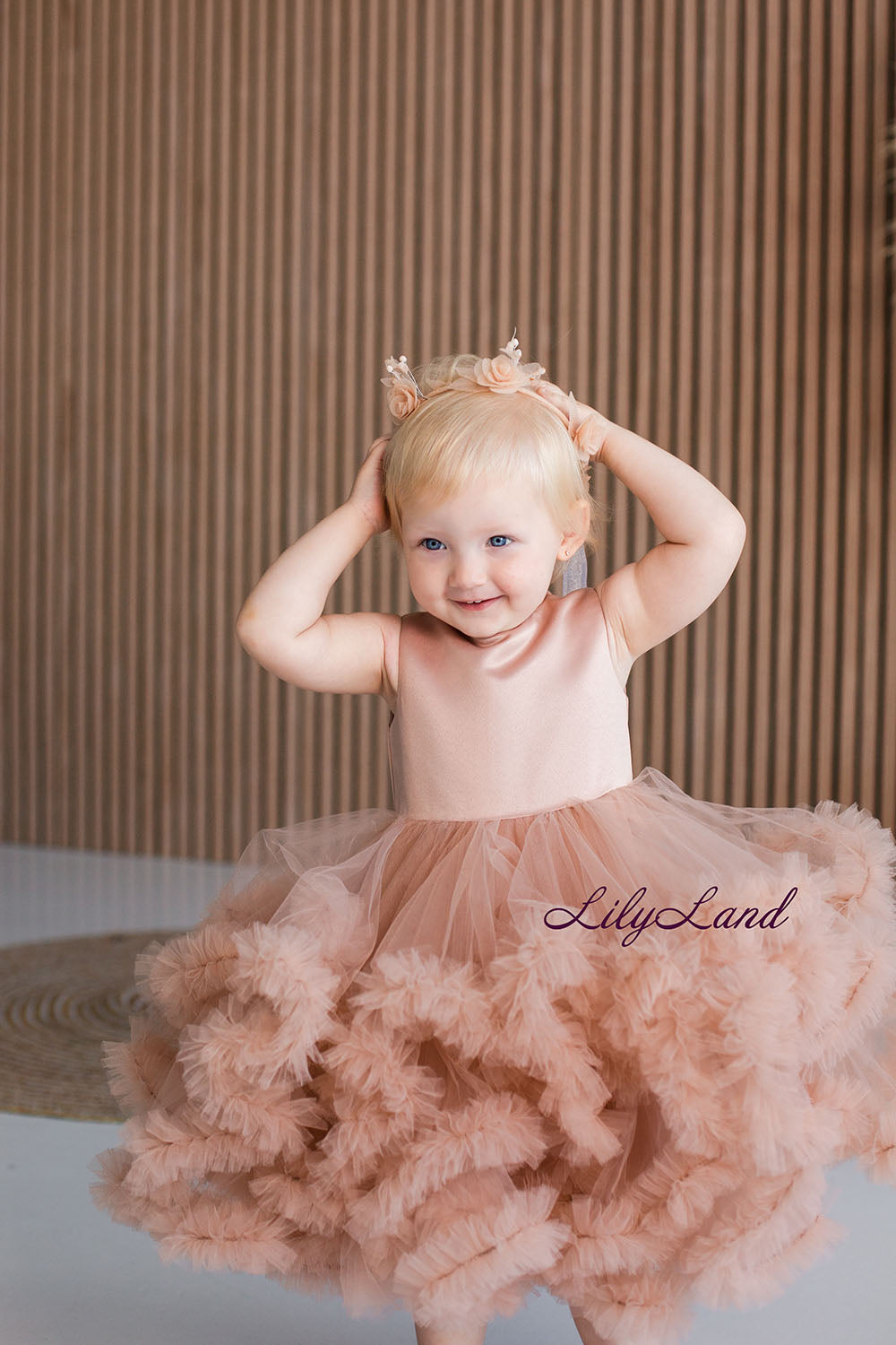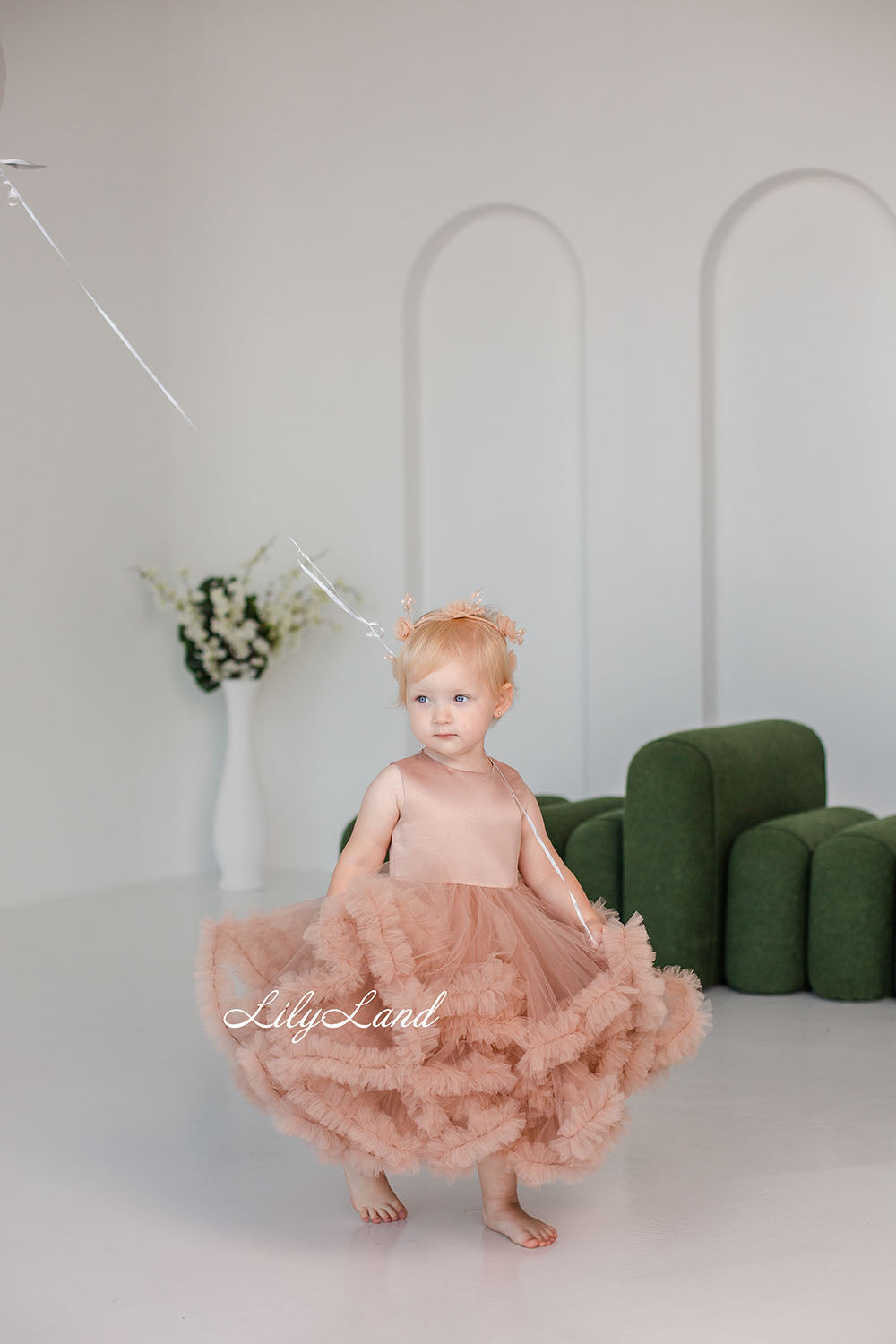 This unreal Cloud dress in cappuccino color will suit at any occasion and persuade to buy this one. It's the ideal choice for a wide array of celebrations, whether you're celebrating Christmas, a birthday, a wedding, a lively party, a professional photoshoot, the romance of Valentine's Day, the elegance of an evening soiree, the charm of a flower girl role, the grace of a ball gown, the spirit of festive occasions, the magic of dance performances, the whimsy of dress-up adventures, or even the allure of fairy and princess costumes. Make every special occasion unforgettable with this exquisite dress.